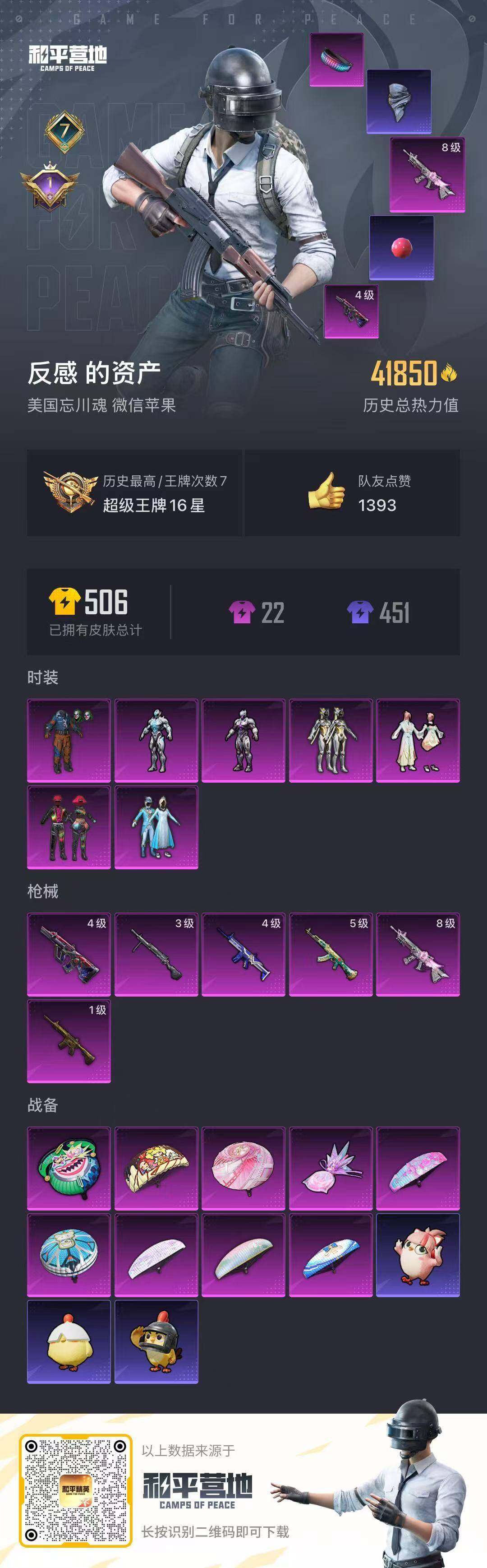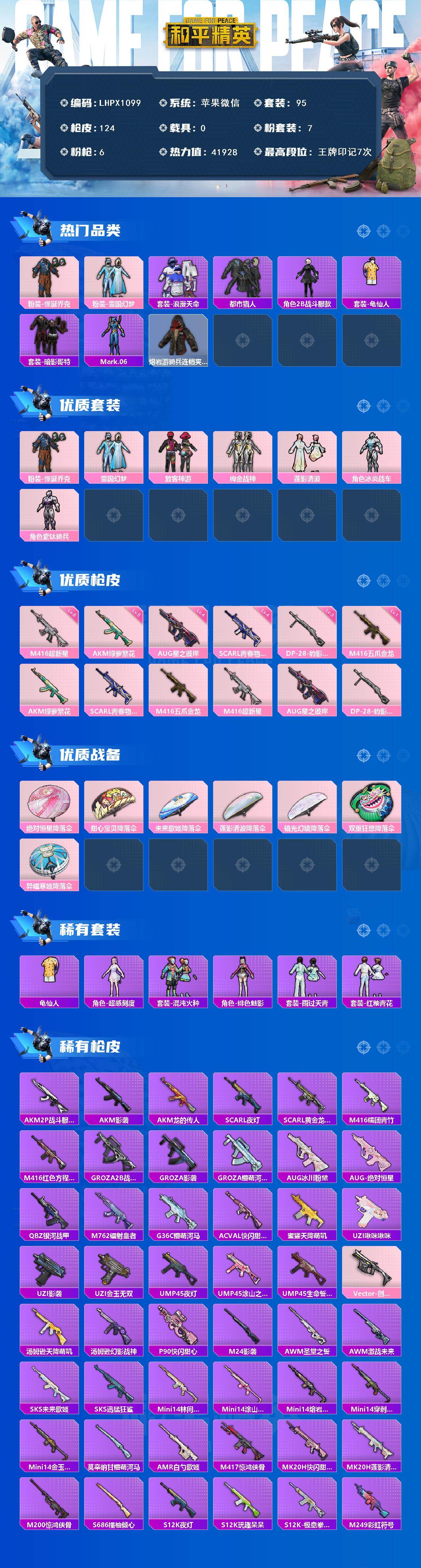 【特价出售/店主推荐】苹果 微信-7粉装-6特效枪-0载具-1粉色飞行器-41928热力值-7王牌印记-95套装-124枪皮