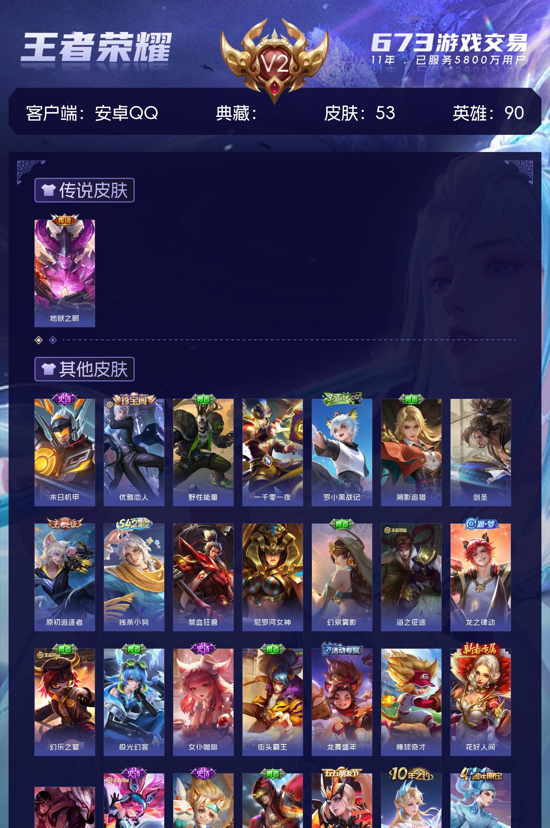 V2 皮肤53 英雄90 最强王者 星传说2 传说1 其他皮肤57