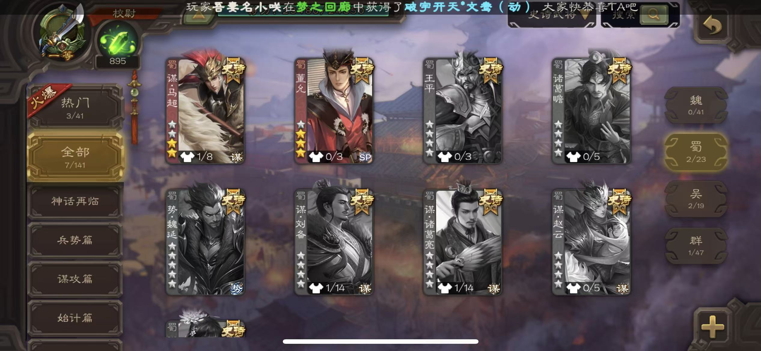 校尉7史诗大宝谋马神刘备神赵云三卡