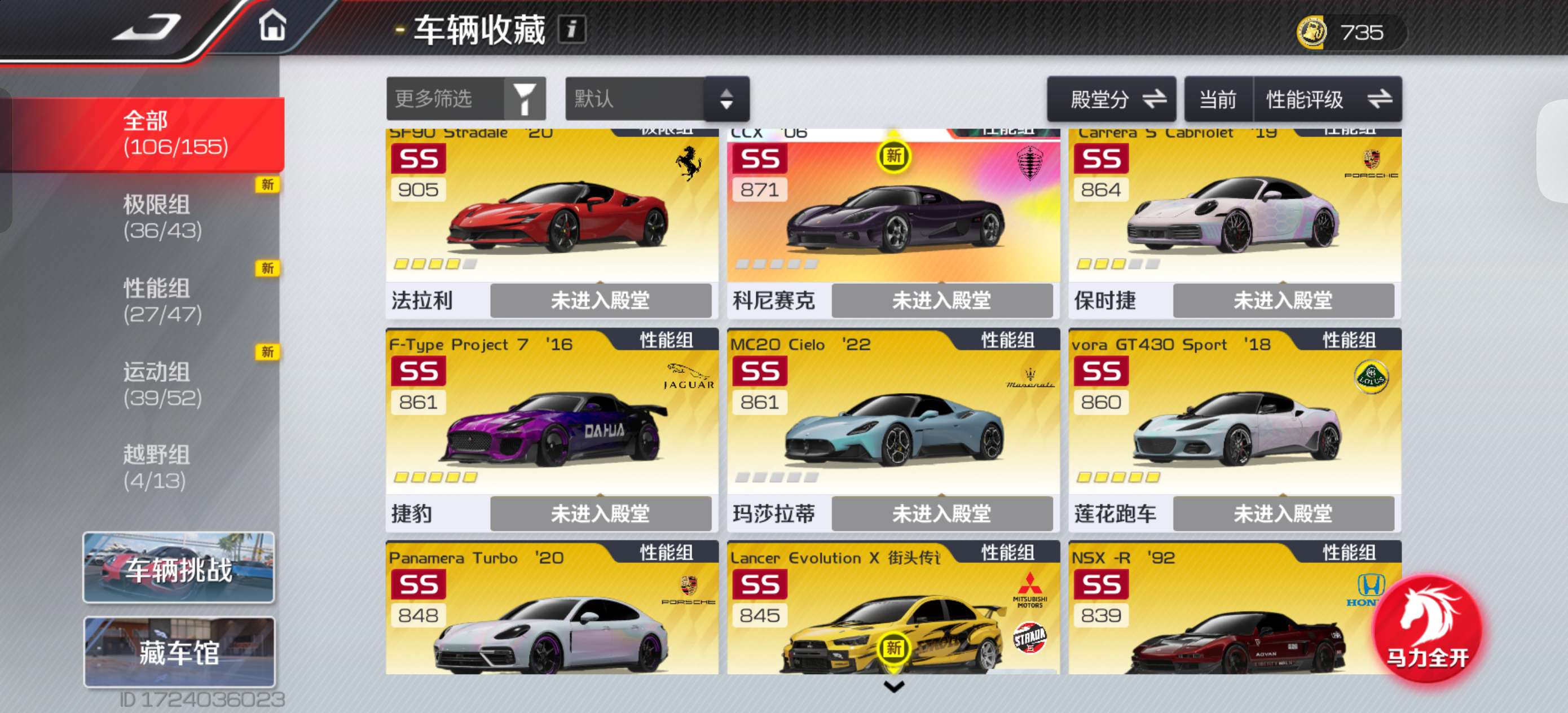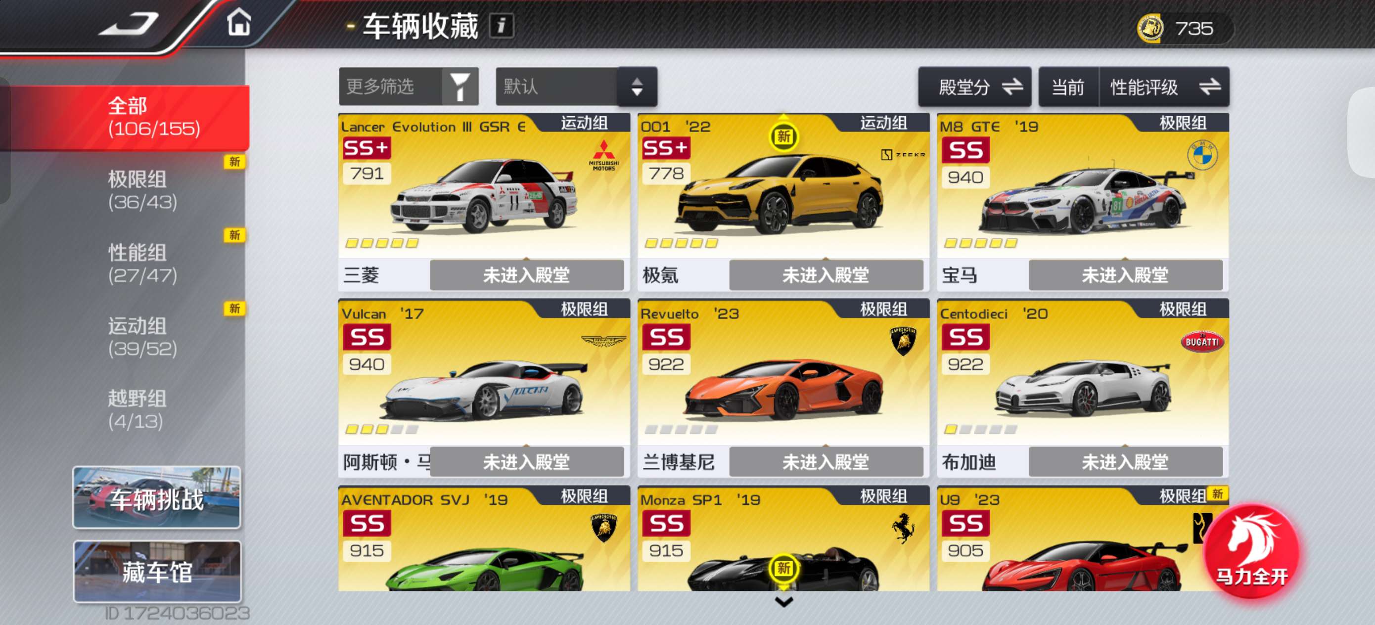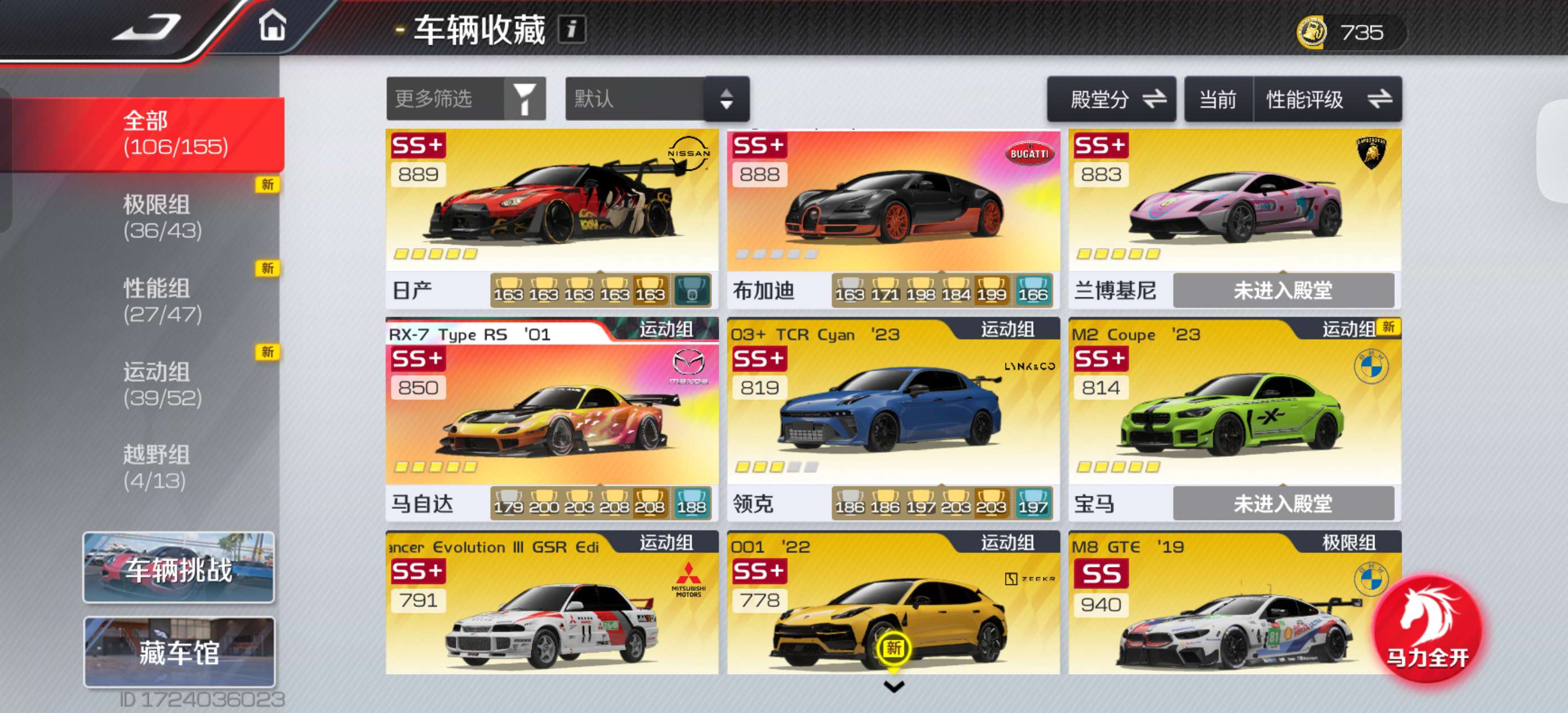 该有的车都有,一些珍藏典藏高阶,拉法4阶,rx7满阶外加满阶双子星和4阶电莲,可上无双