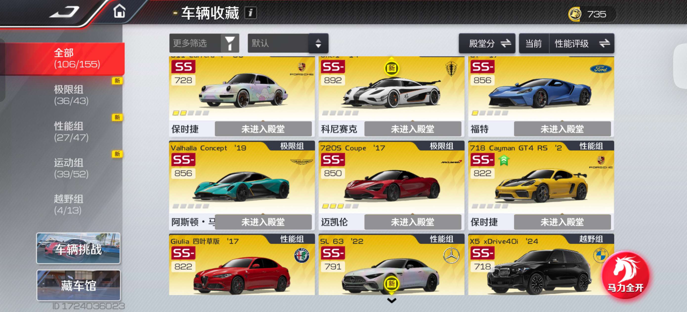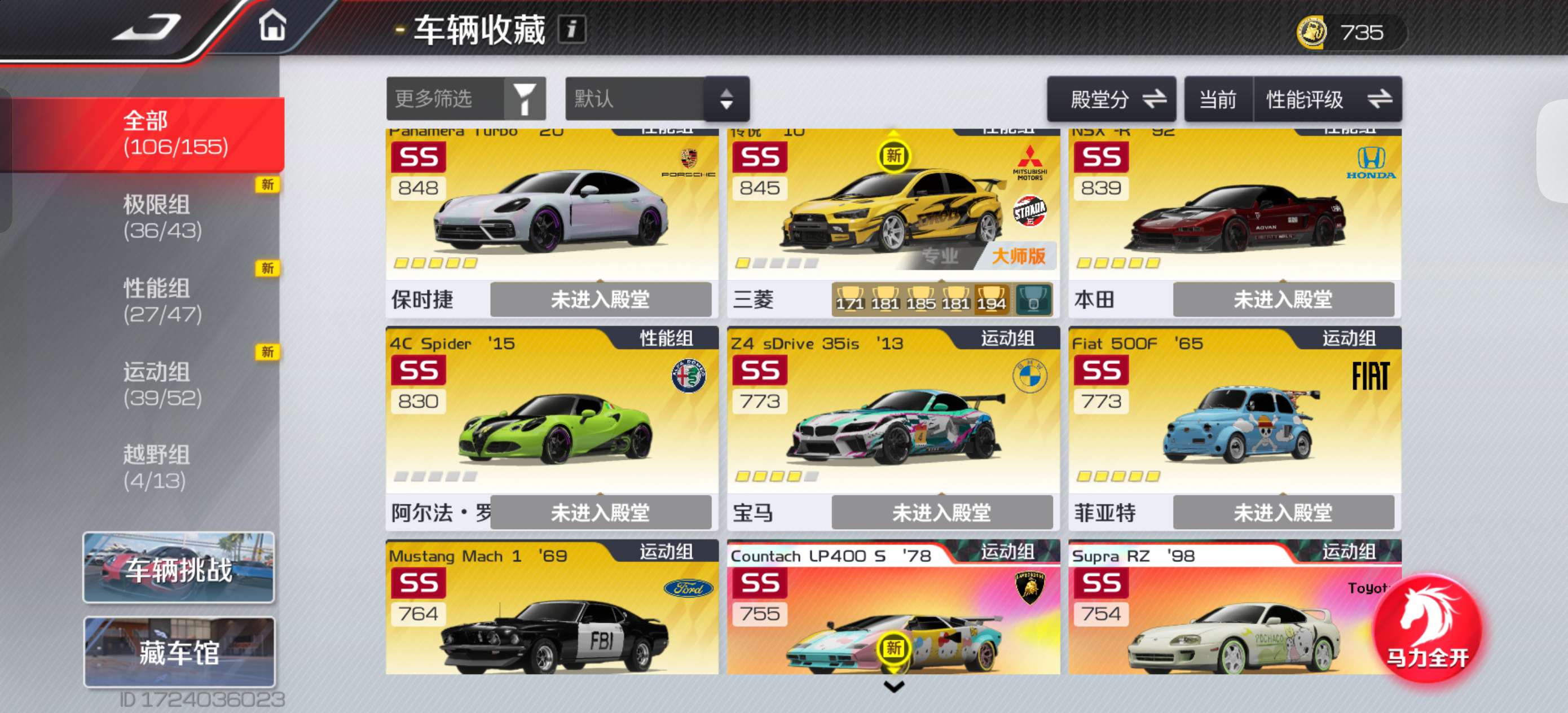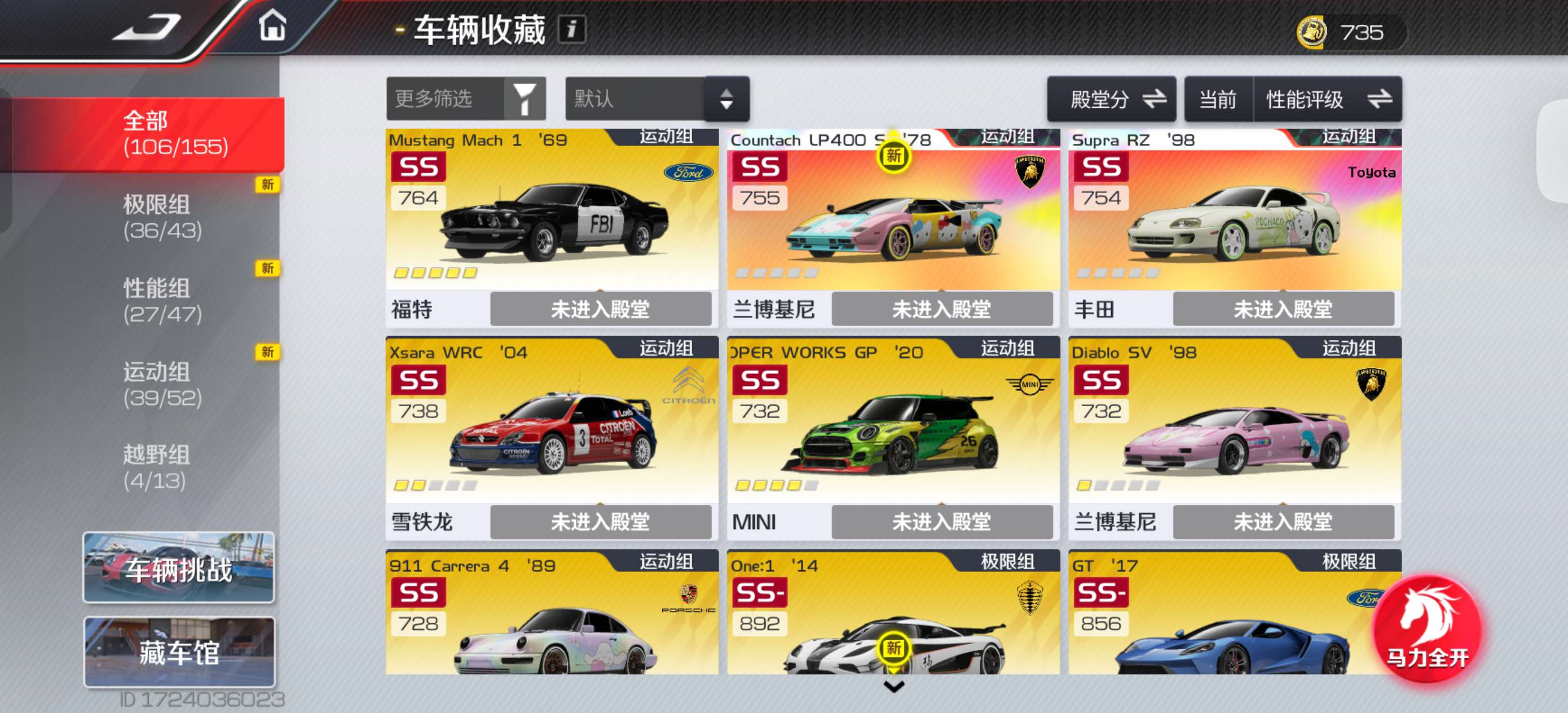 该有的车都有,一些珍藏典藏高阶,拉法4阶,rx7满阶外加满阶双子星和4阶电莲,可上无双