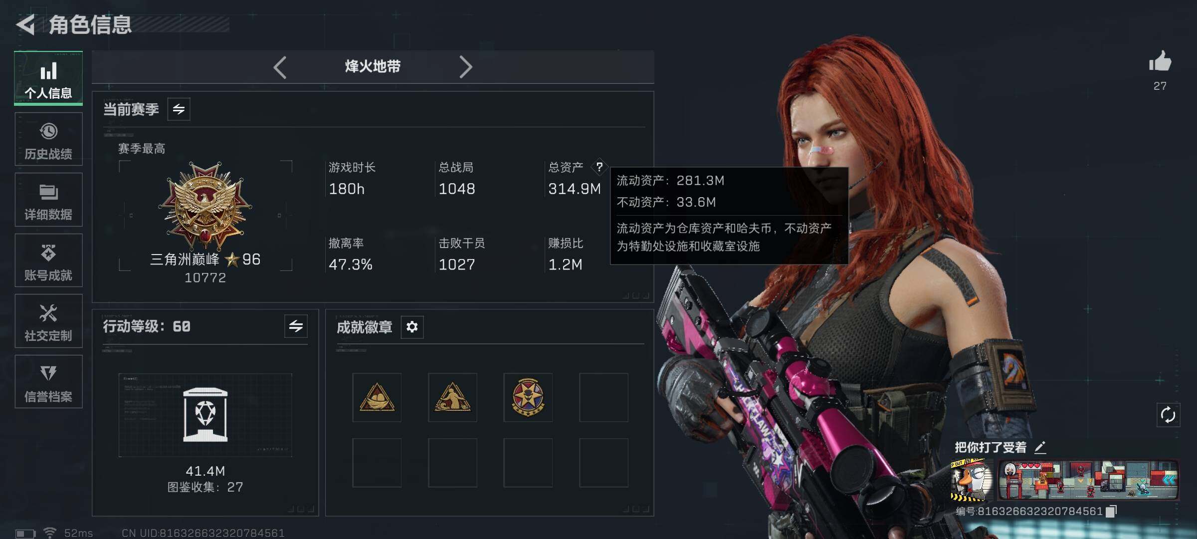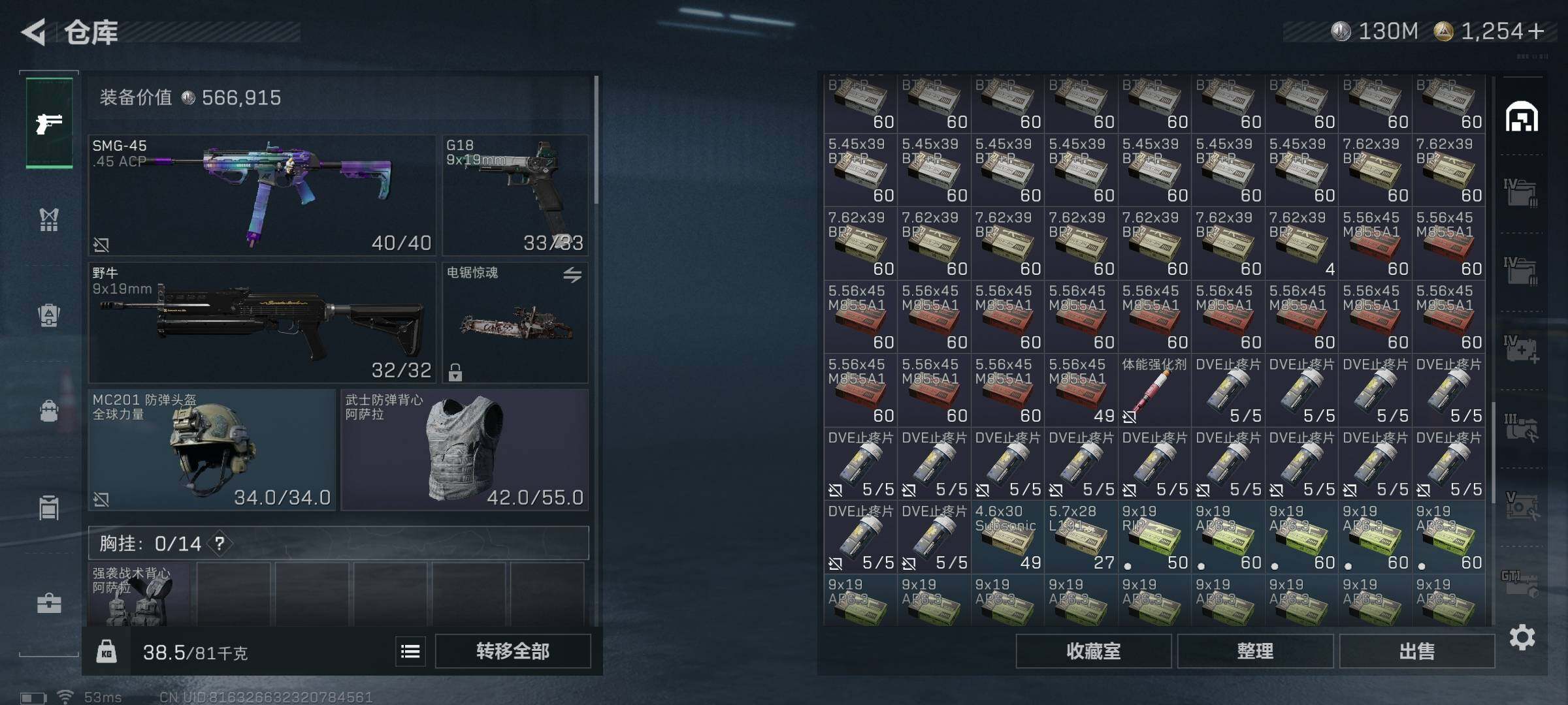 314m,130m现金,1254三角券,电锯,红狼电锯惊魂,深蓝,8仓6体5负,2s黑夜猎手,36发aw子弹