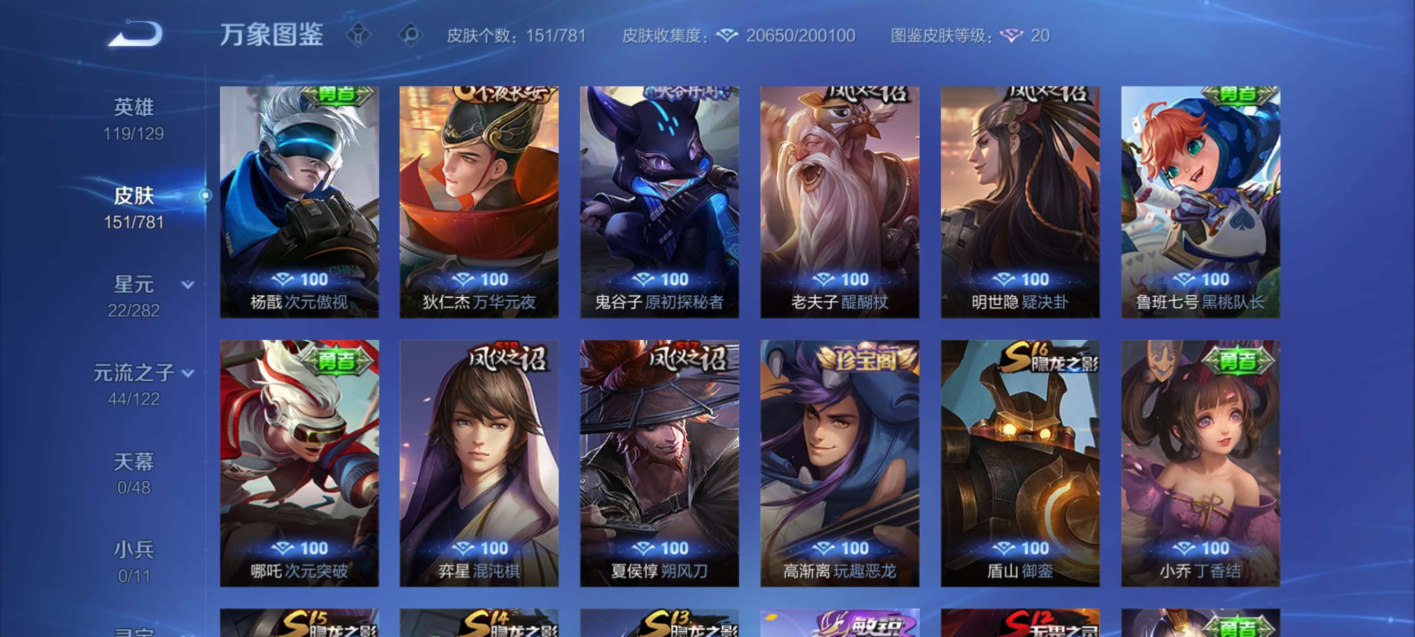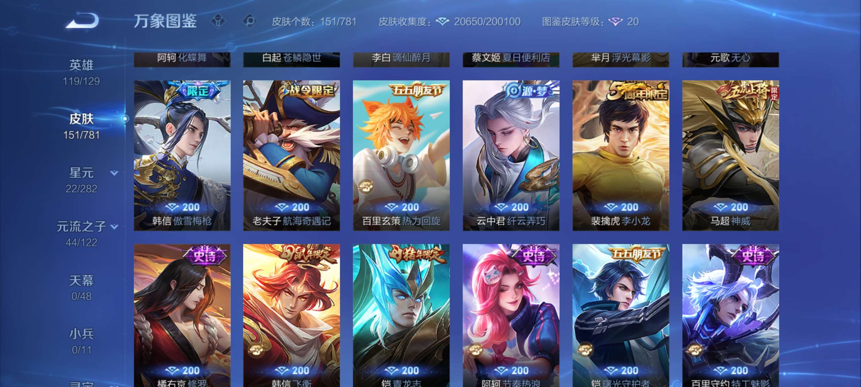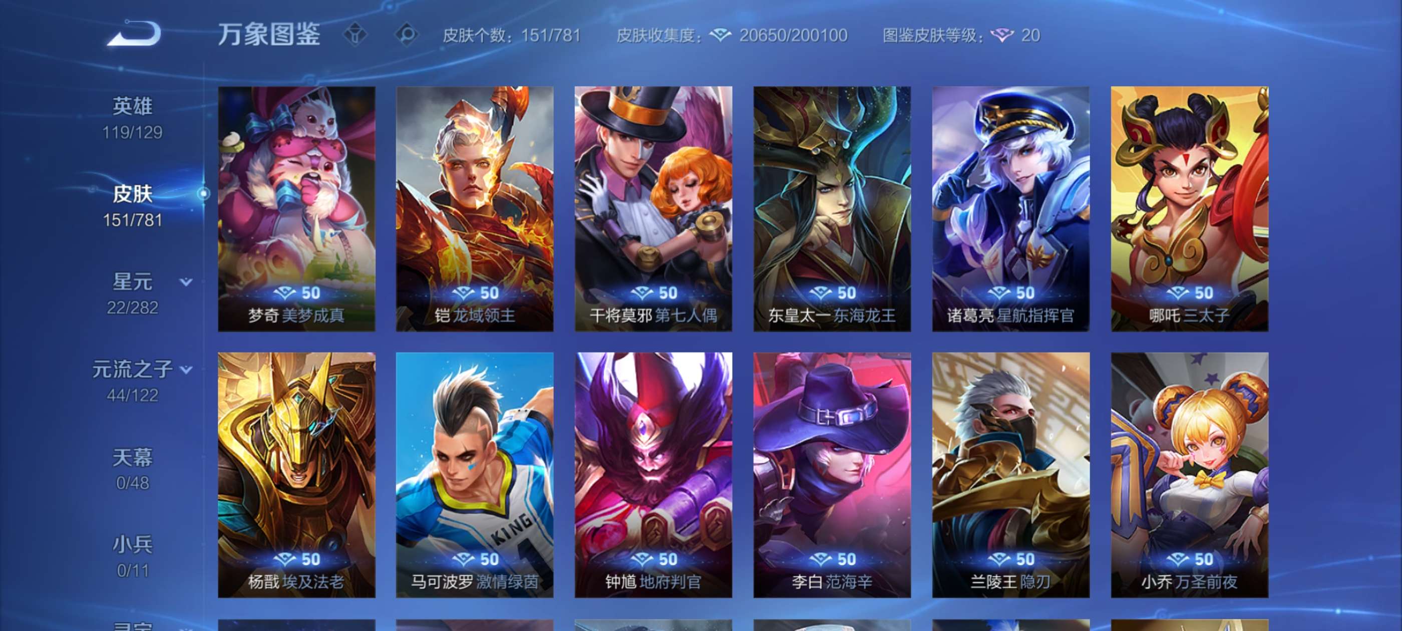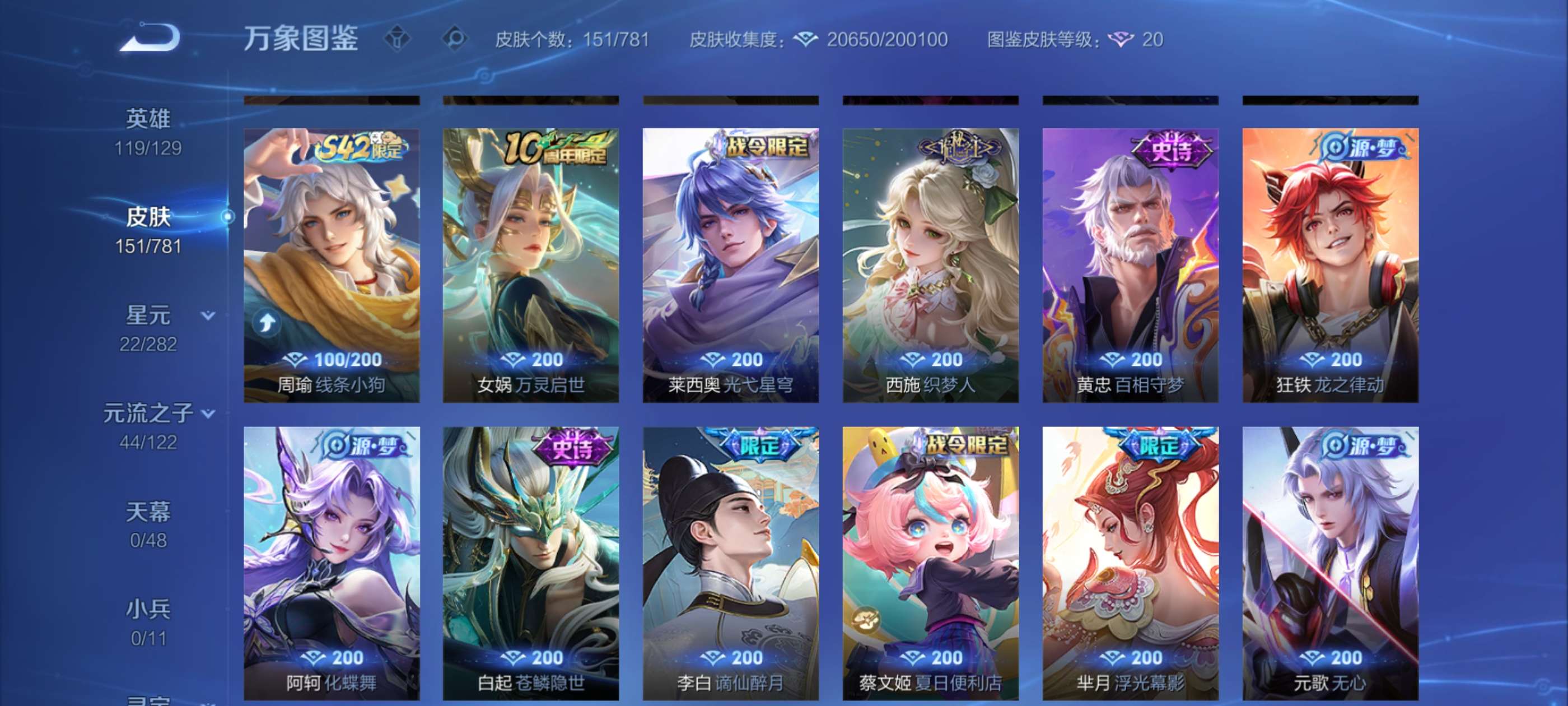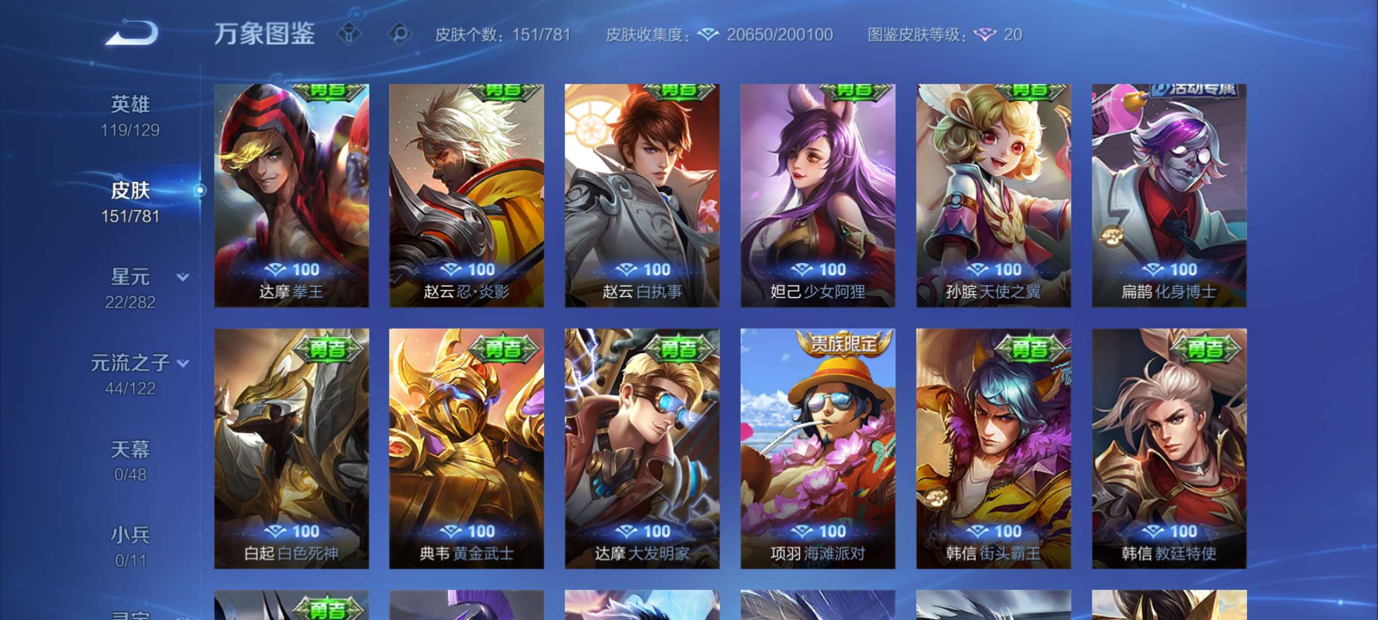 V7 皮肤148 英雄119 永恒钻石 星传说1 传说10 其他皮肤143
