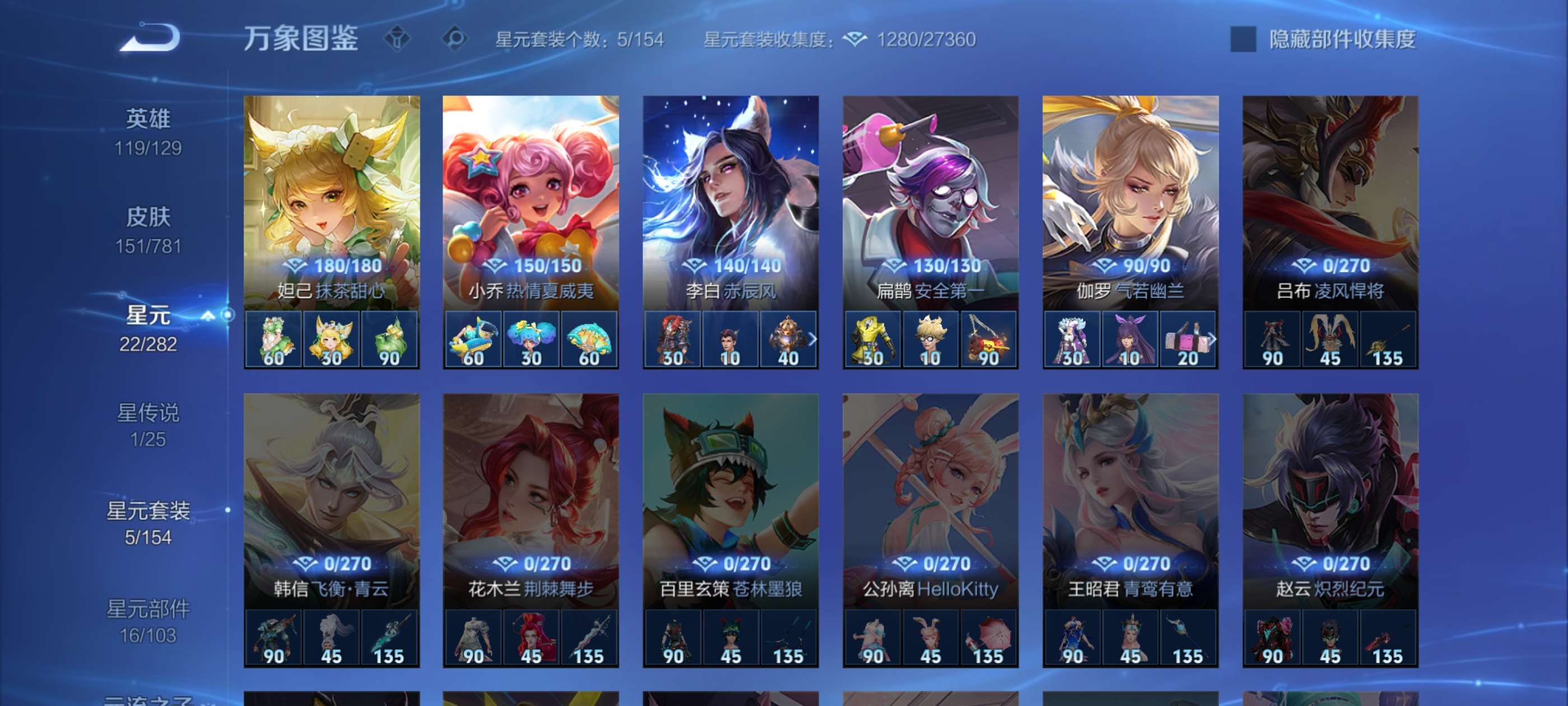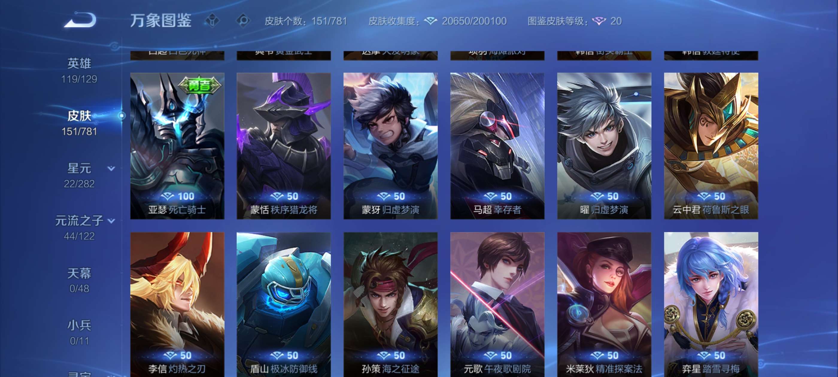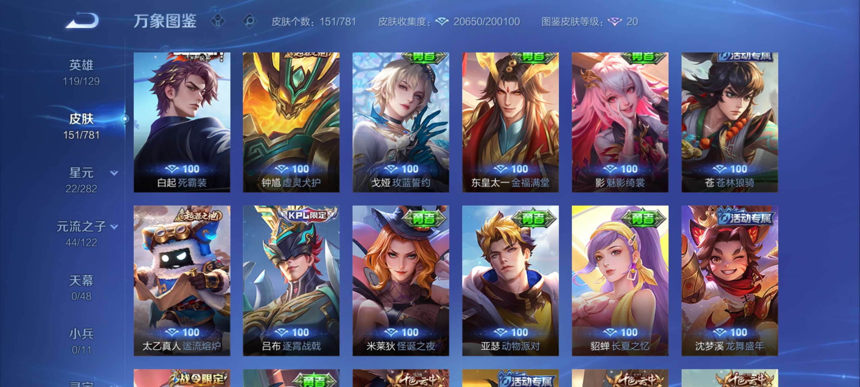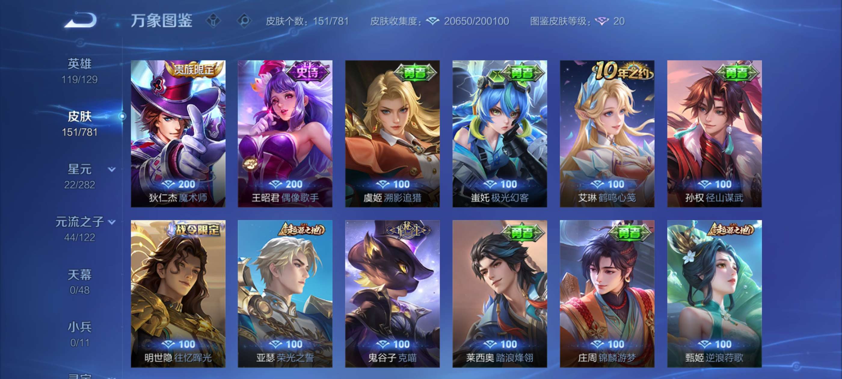 V7 皮肤148 英雄119 永恒钻石 星传说1 传说10 其他皮肤143