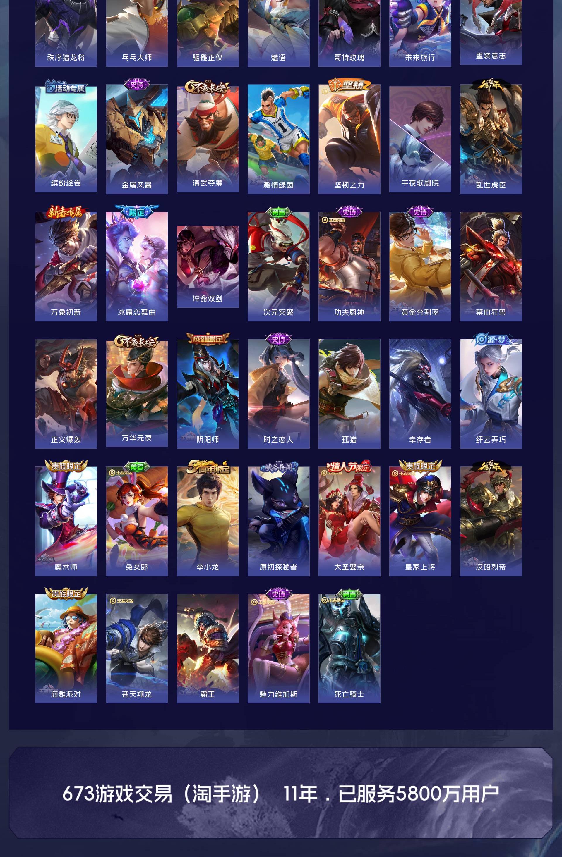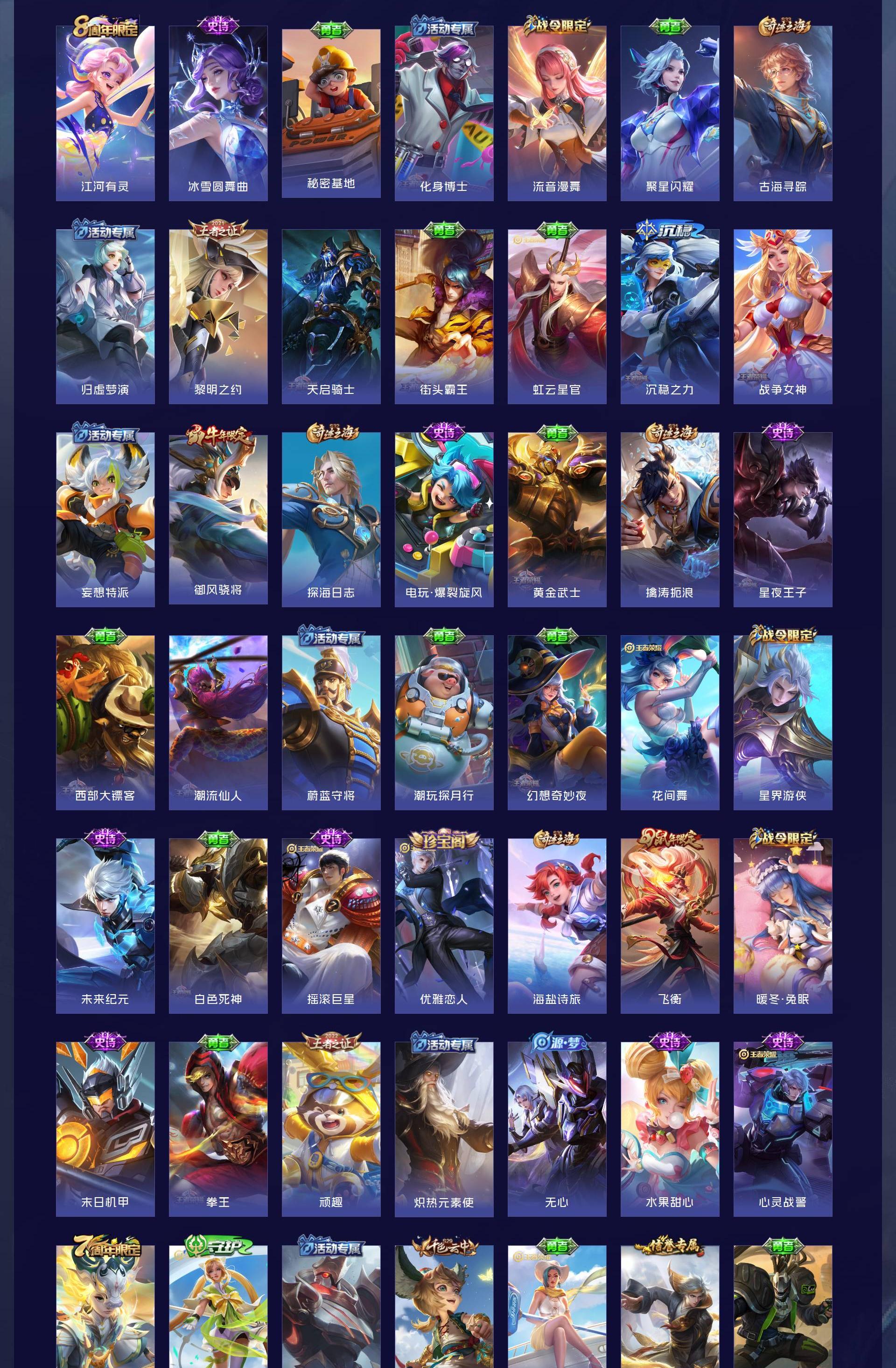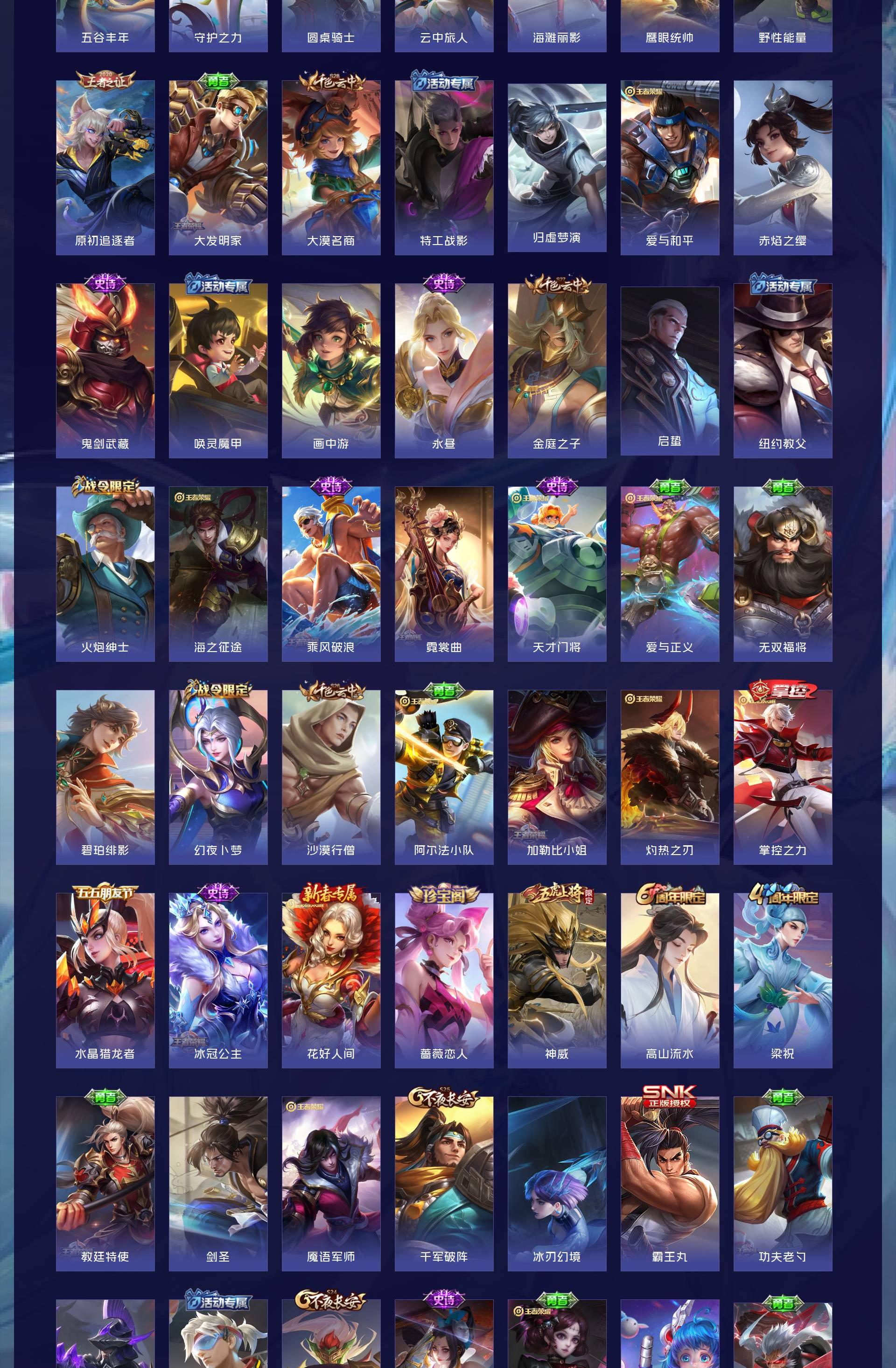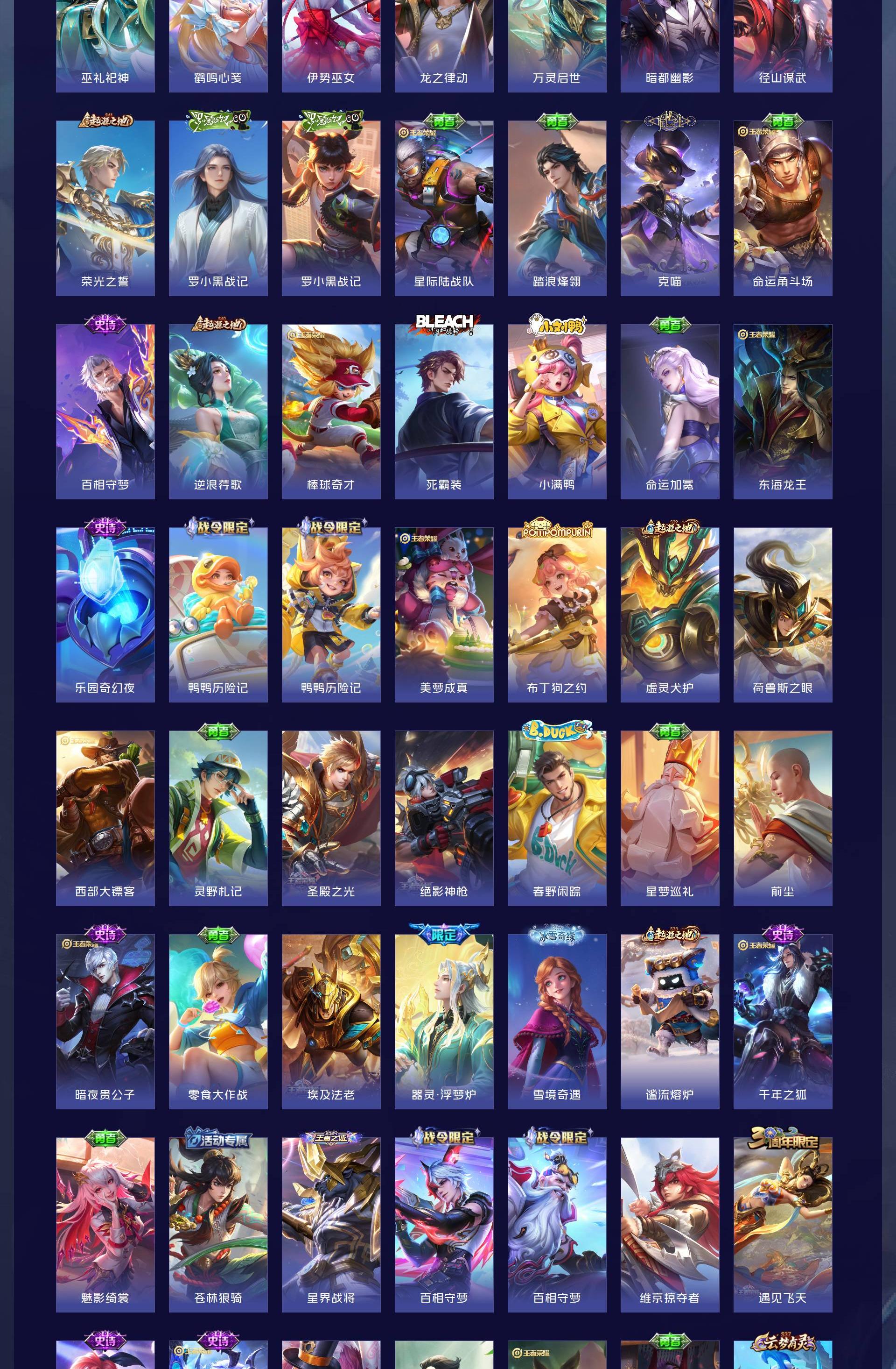 V8 皮肤283 英雄128 最强王者 荣耀典藏1 珍品传说1 传说17 其他皮肤264