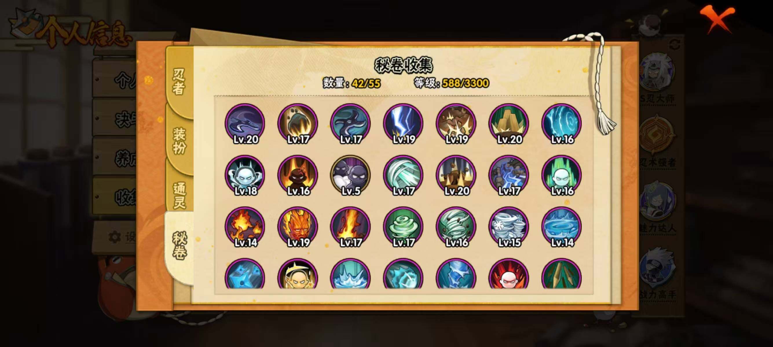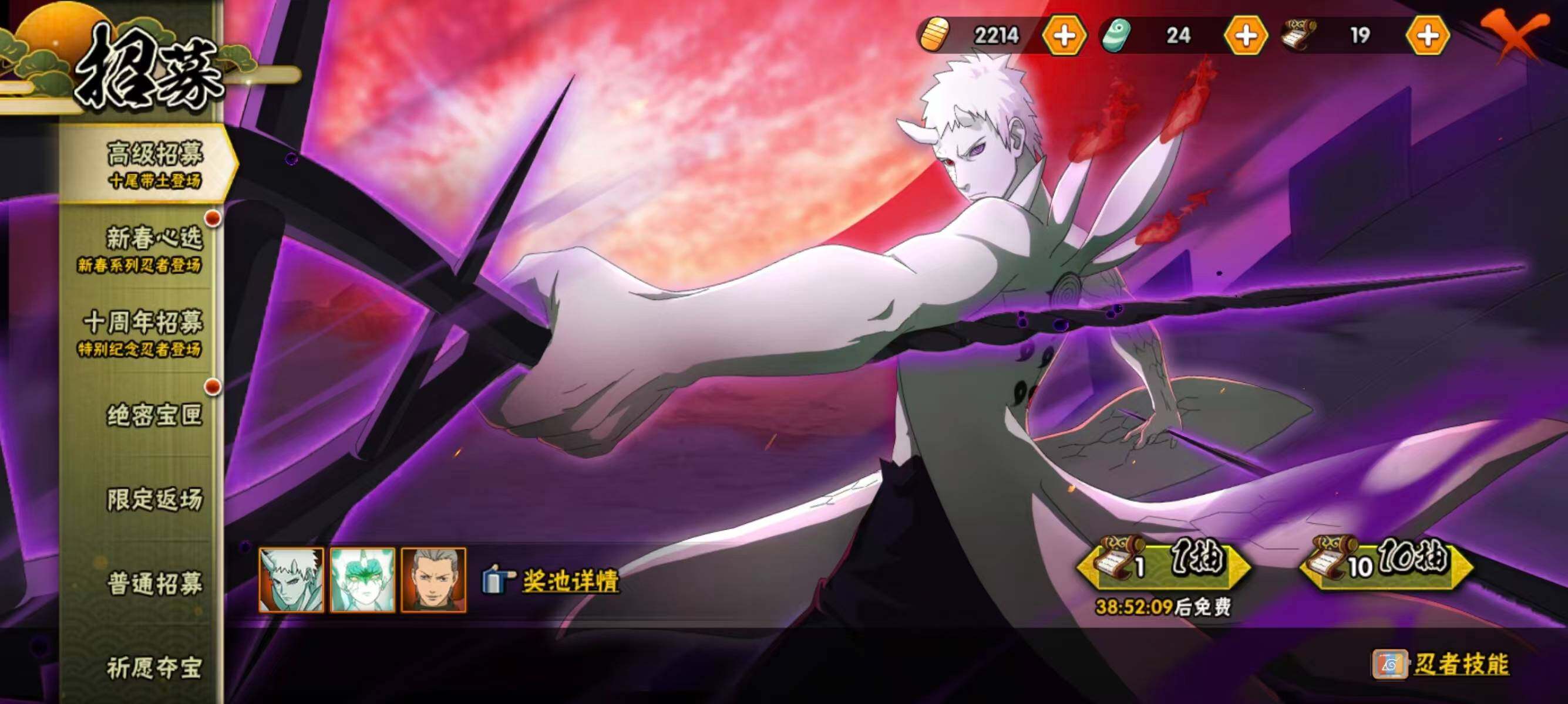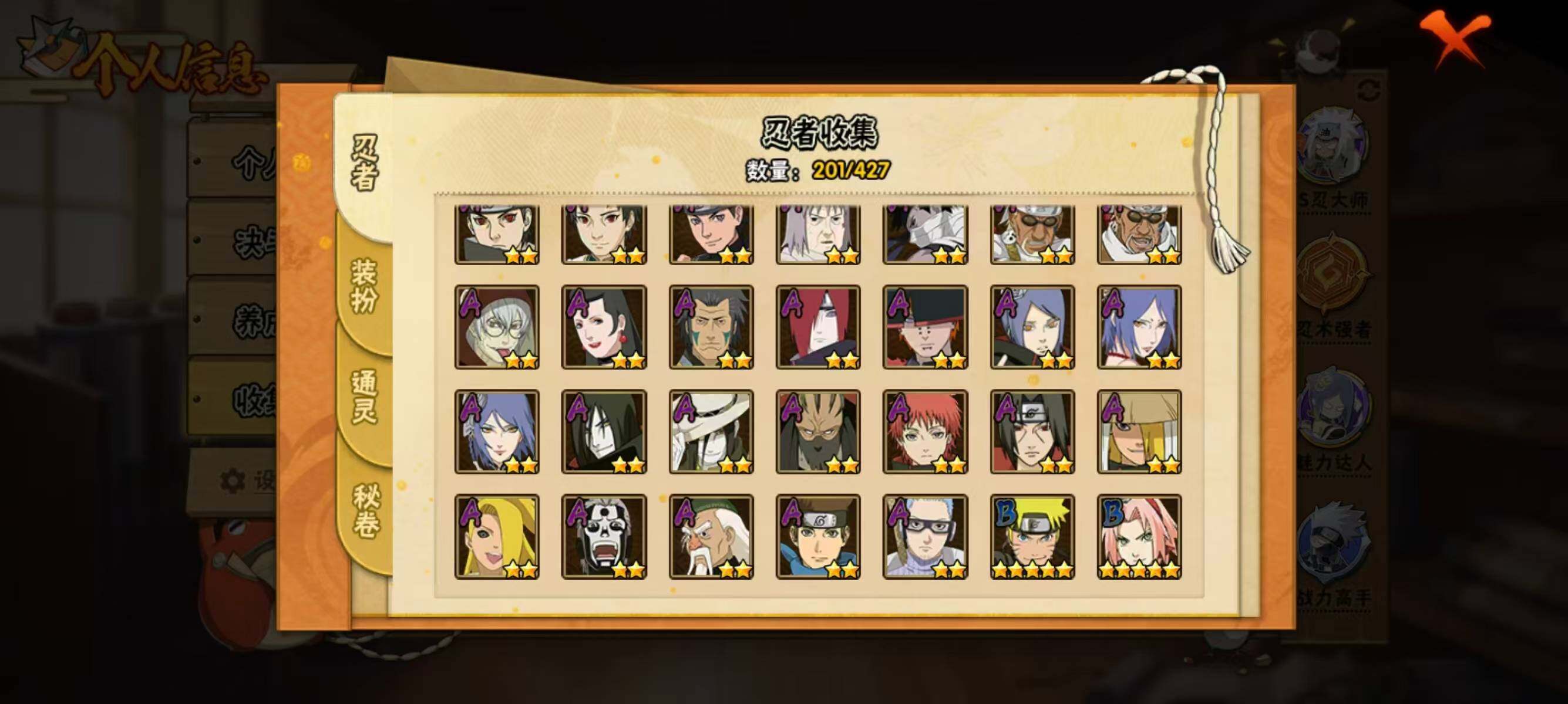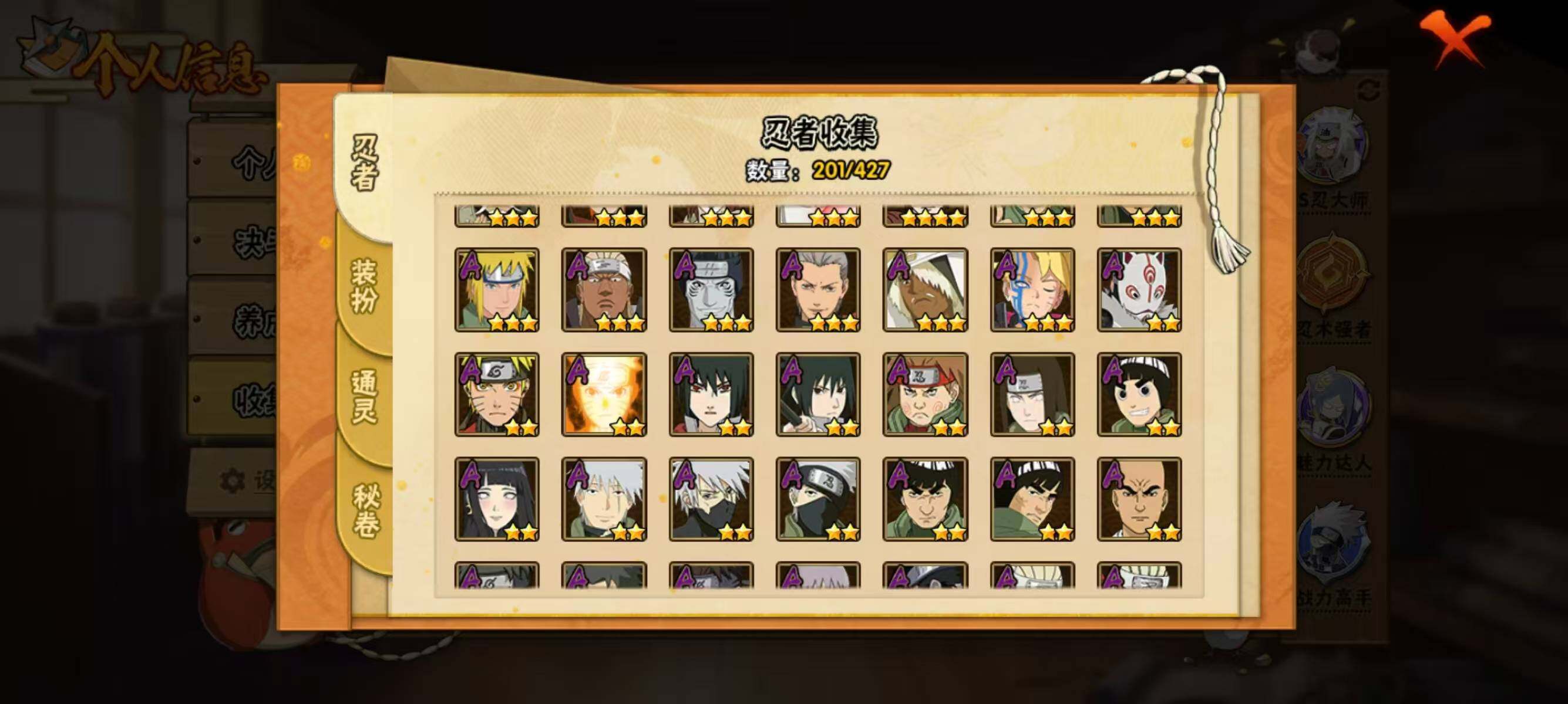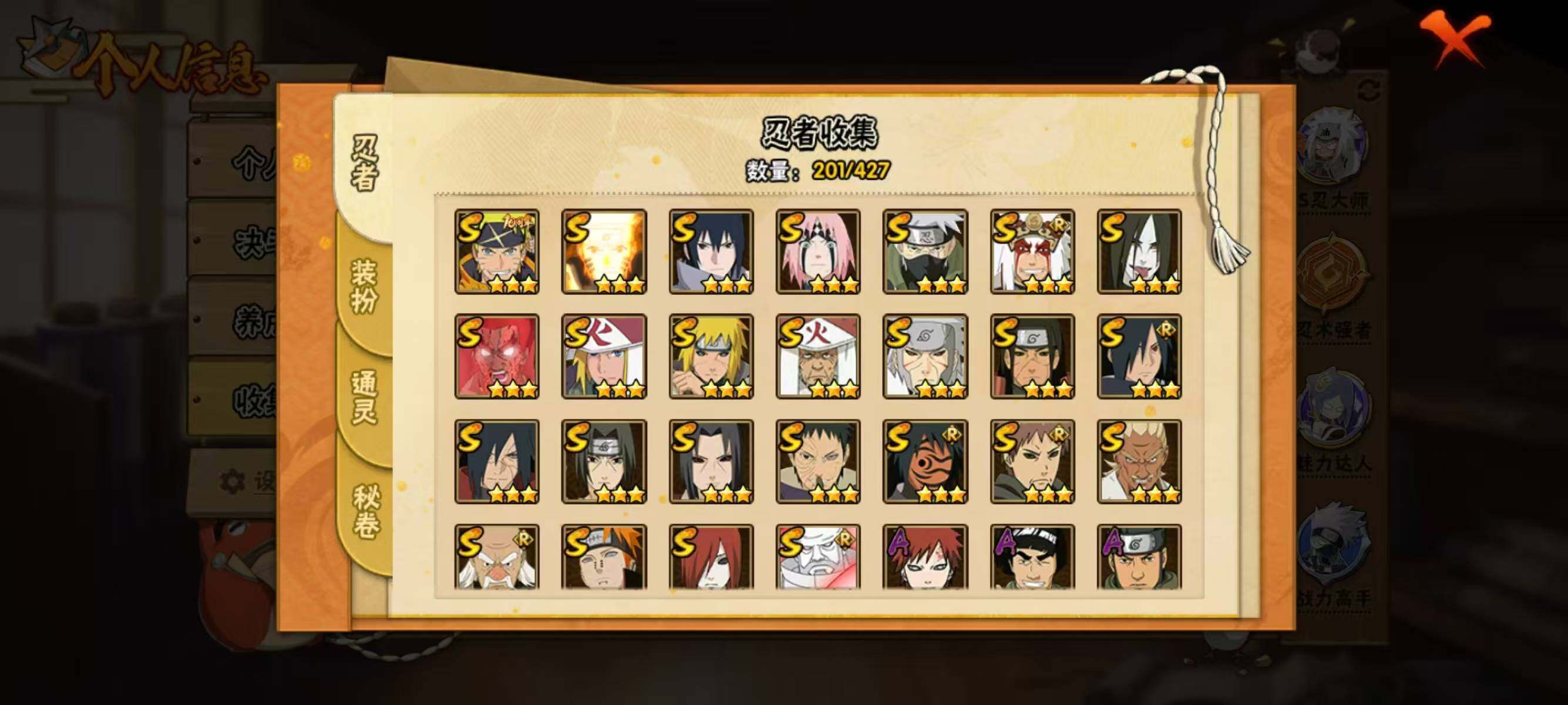 【S级忍者】:长门「秽土转生」(3星),波风水门「秽土转生」(3星),千手扉间「秽土转生」(3星),千手柱间「秽土转生」(3星),宇智波鼬「秽土转生」(3星),宇智波斑「秽土转生·解」(3星),大野木「忍界大战」(3星),春野樱「忍界大战」(3星),宇智波带土「忍界大战」(3星),艾「忍界大战」(3星),宇智波鼬「须佐能乎」(3星),旗木卡卡西「须佐能乎」(3星),宇智波斑「