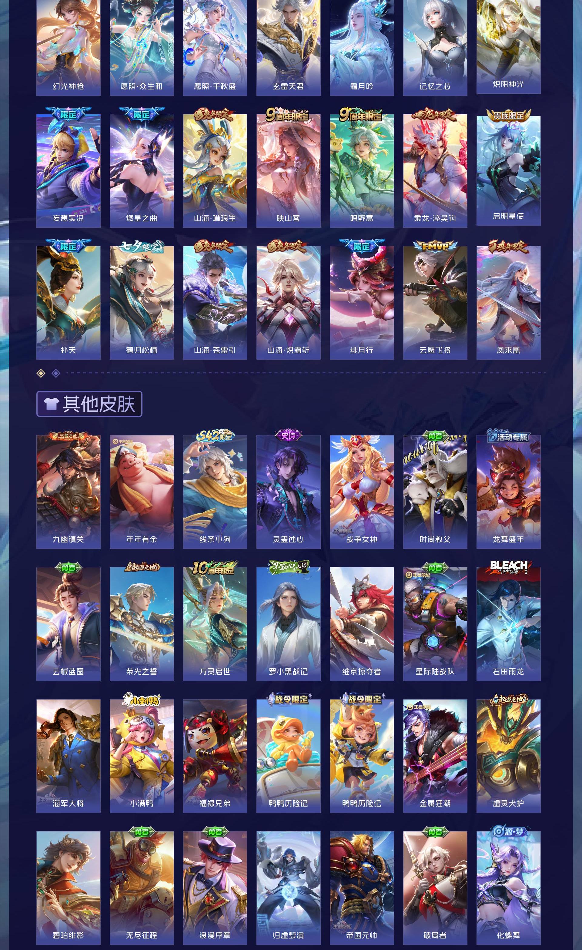 V9 皮肤351 英雄128 绝世王者 荣耀典藏2 无双皮肤3 珍品传说4 传说28 其他皮肤320