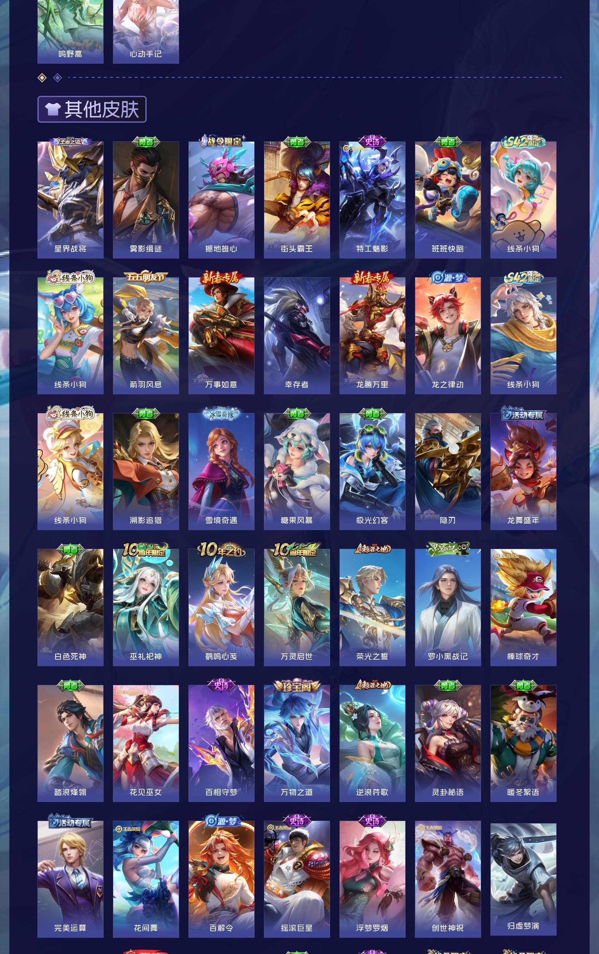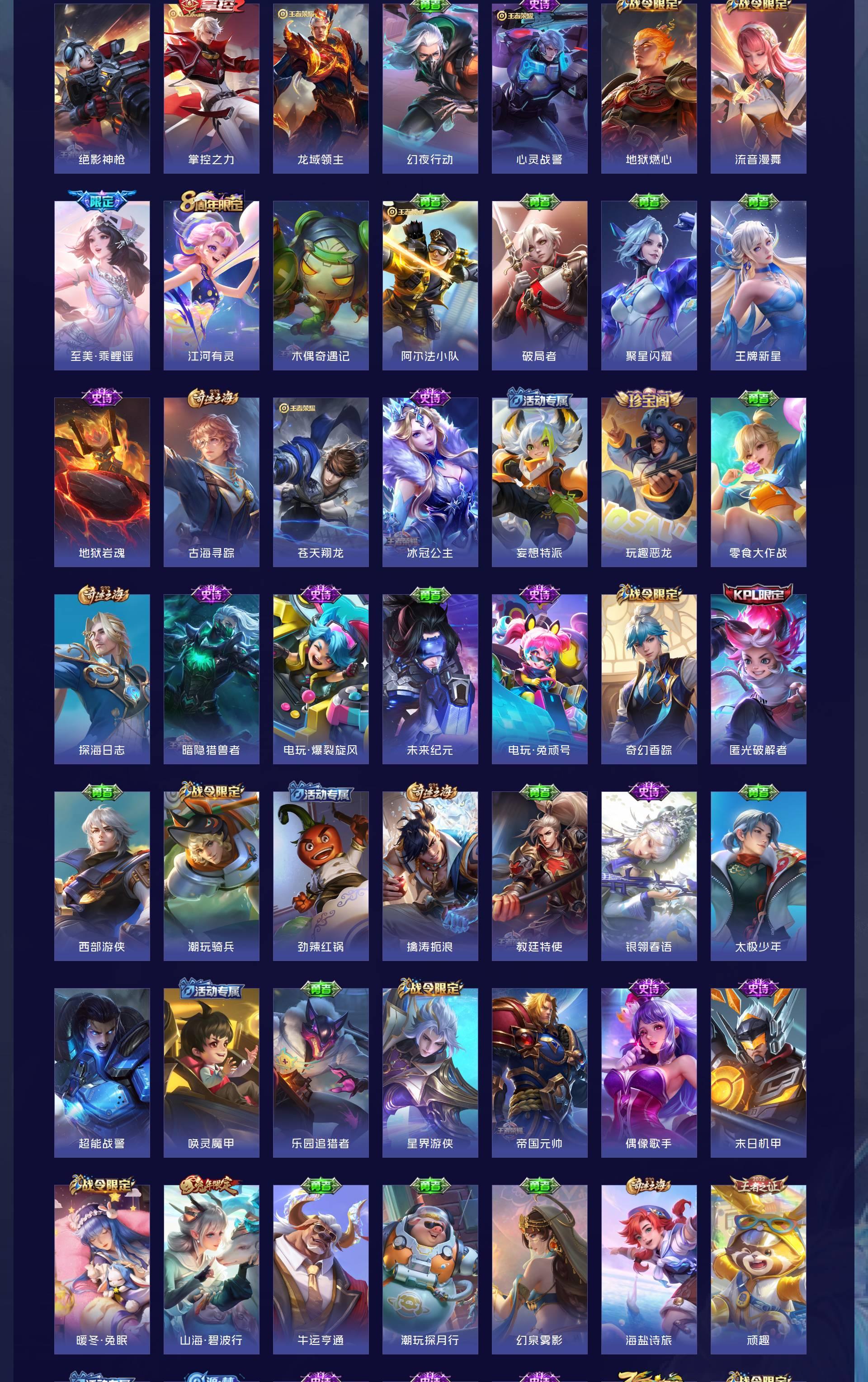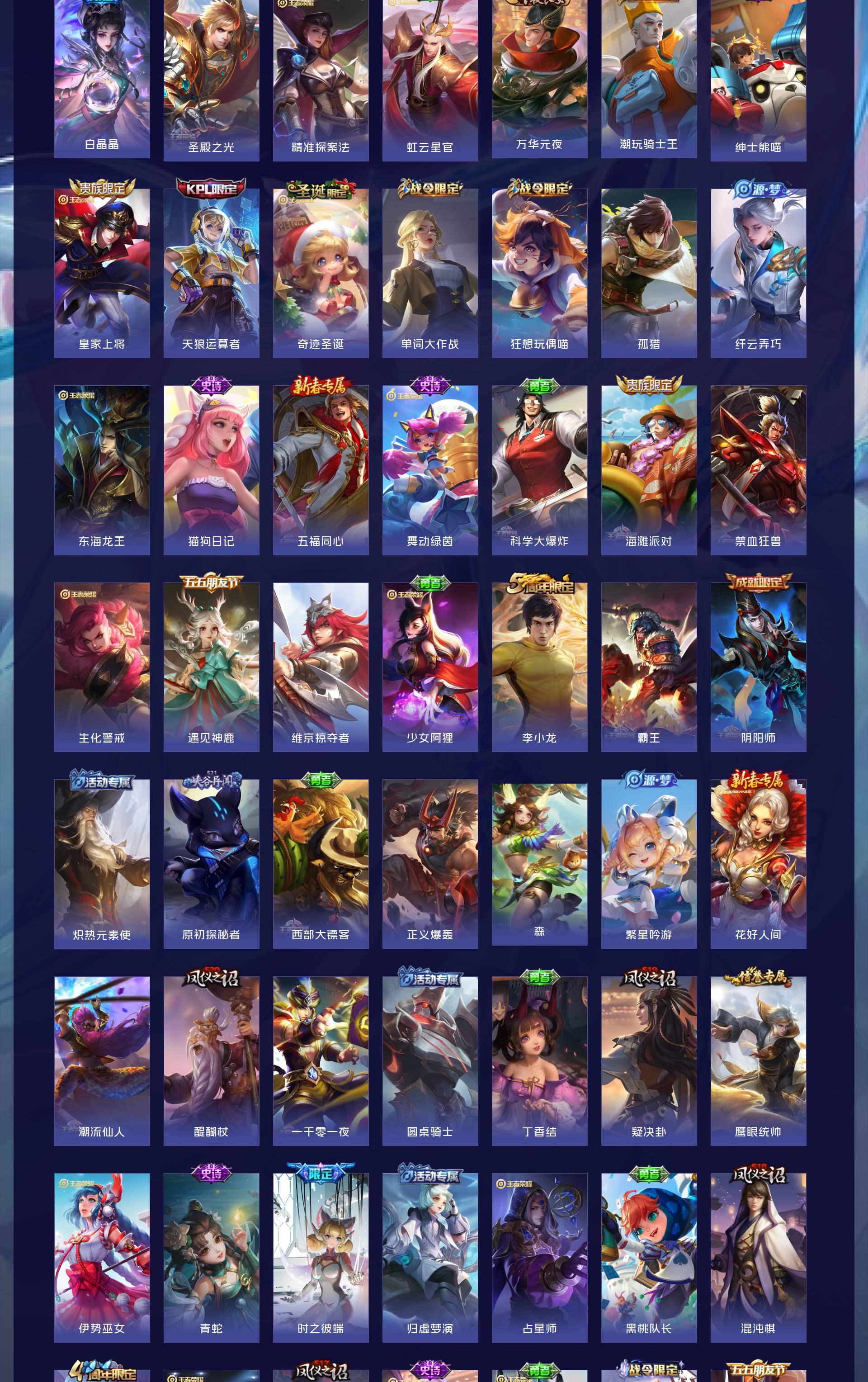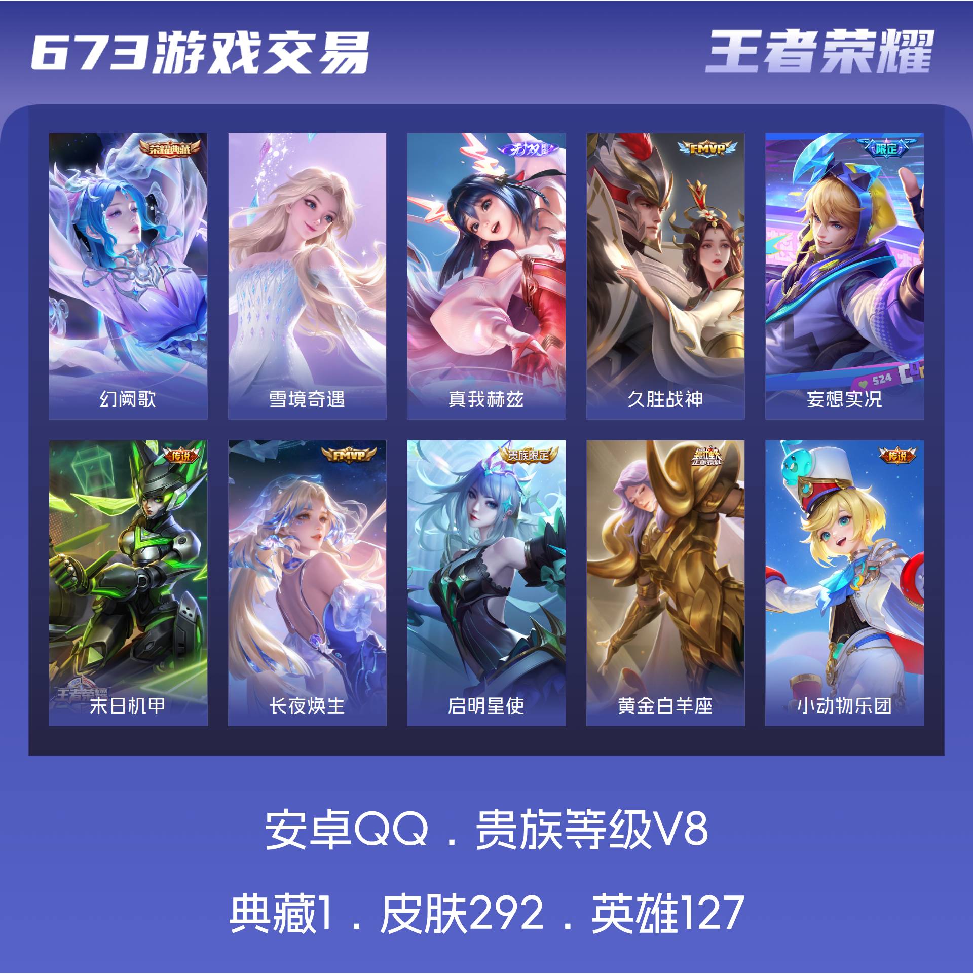 V8 皮肤292 英雄127 最强王者 荣耀典藏1 无双皮肤2 传说16 其他皮肤279