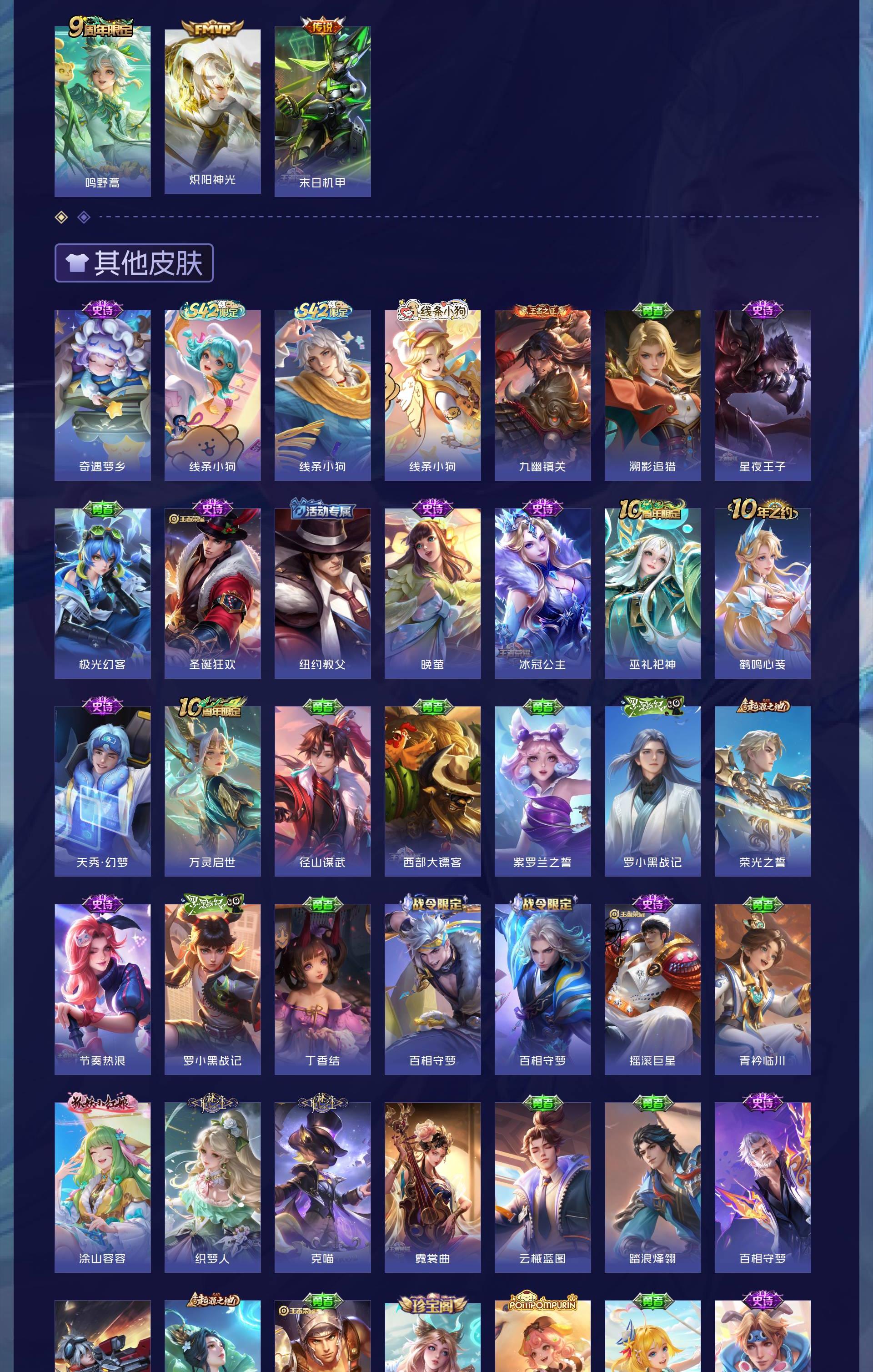 V7 皮肤234 英雄127 至尊星耀 荣耀典藏1 无双皮肤1 珍品传说4 传说10 其他皮肤223