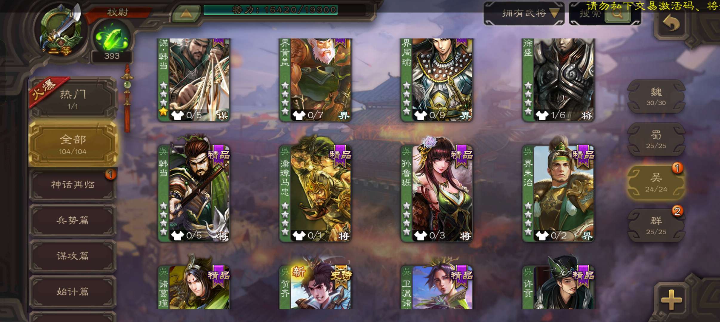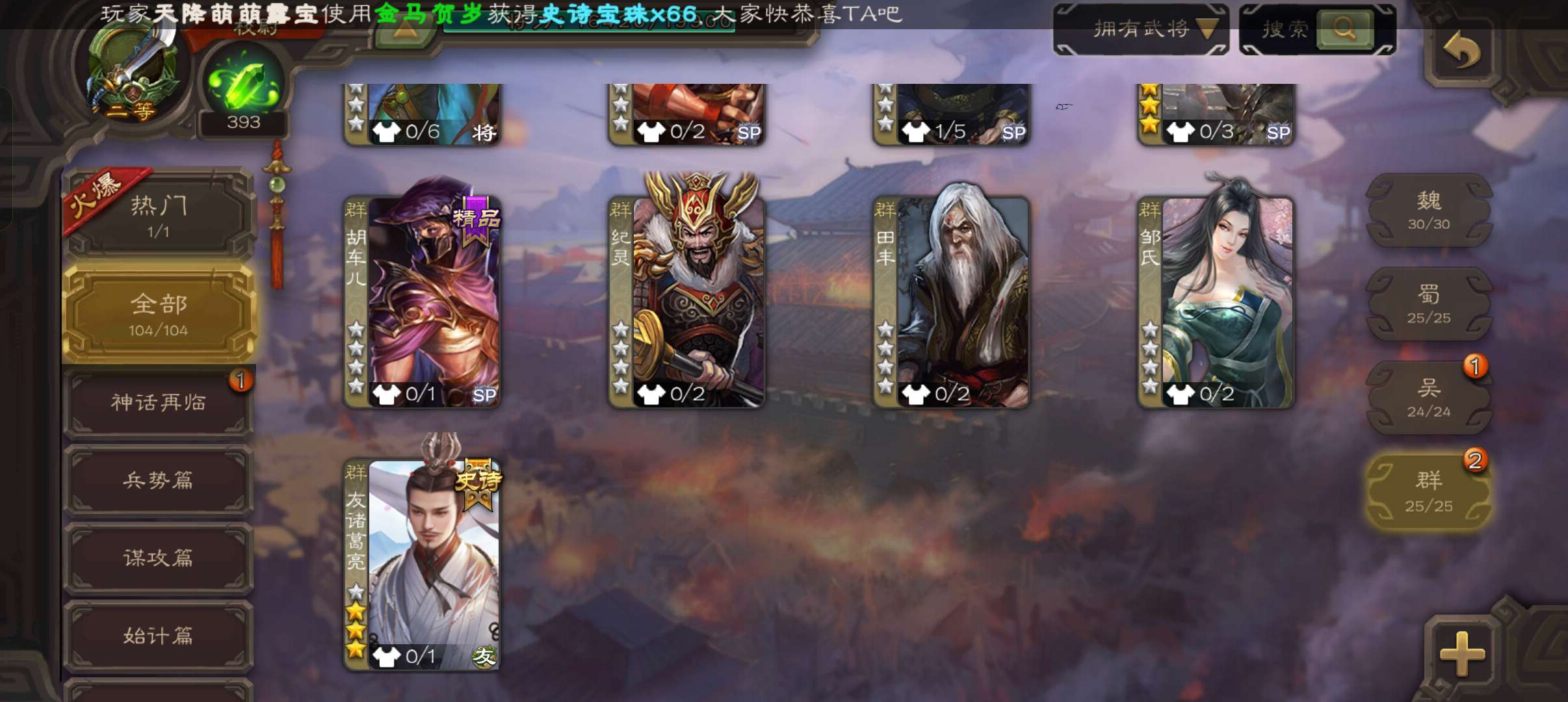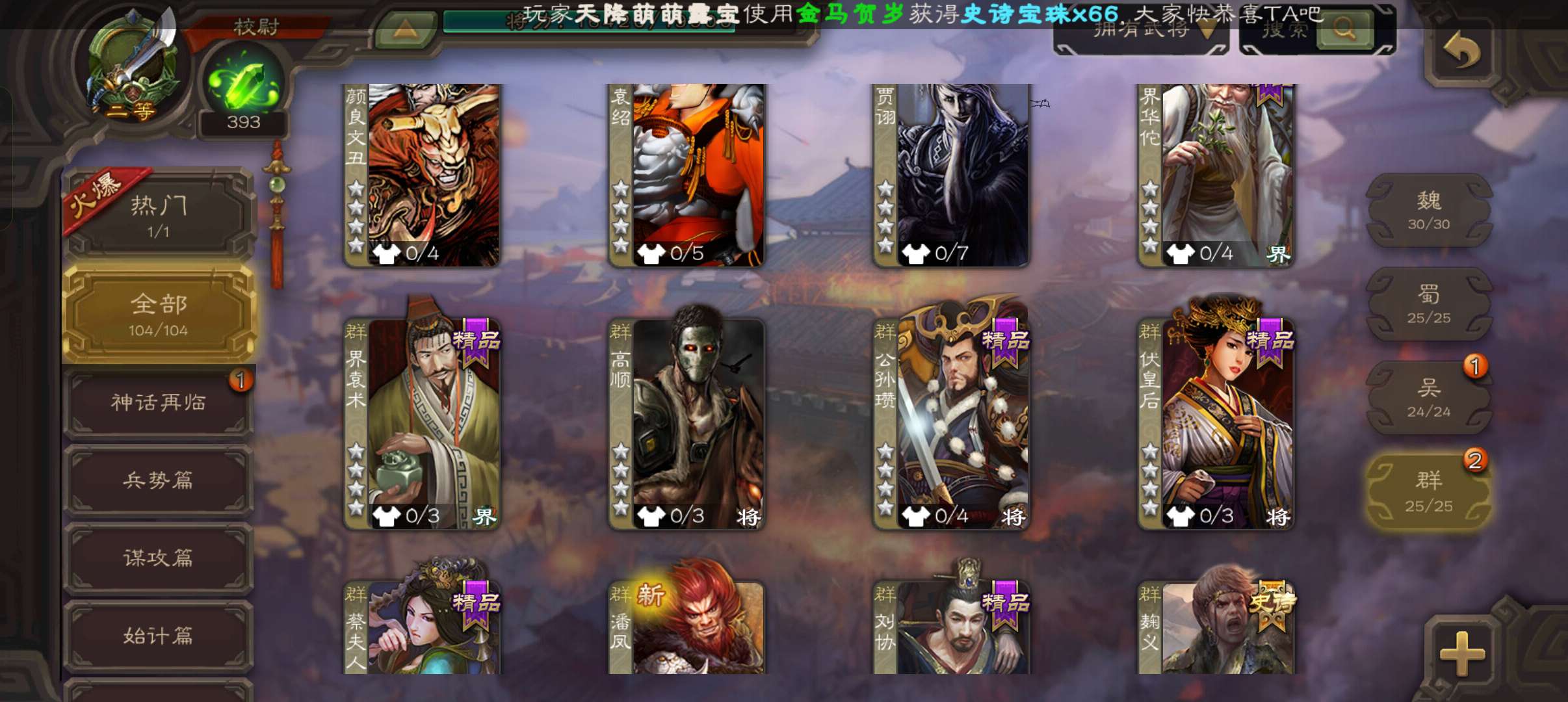 史诗武将数量: