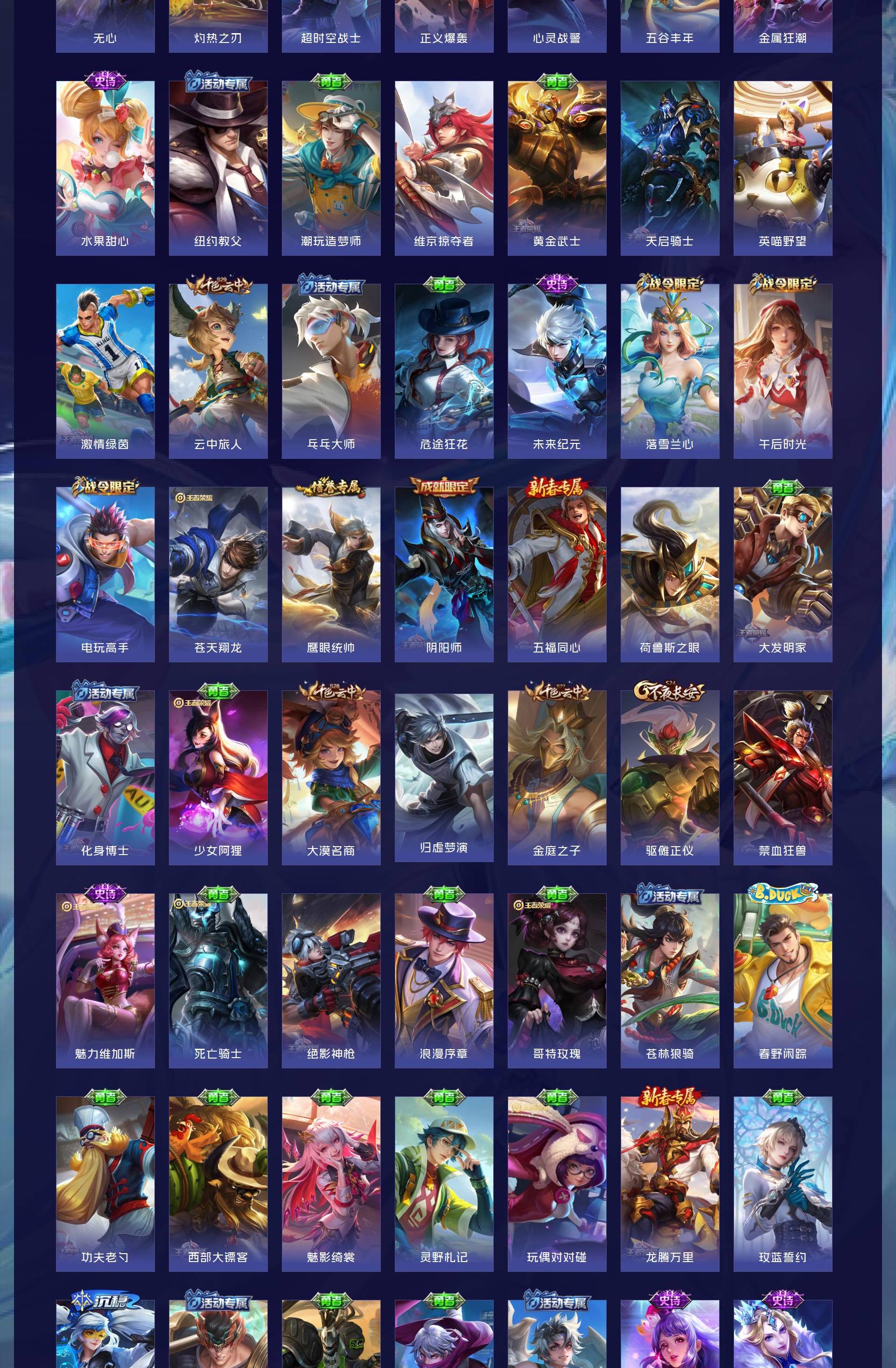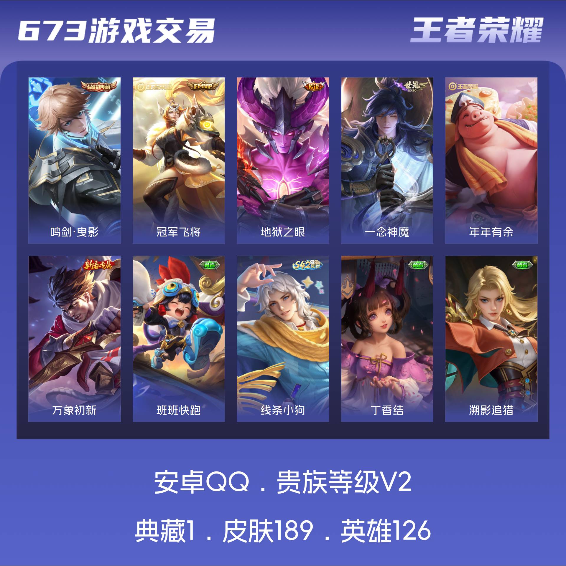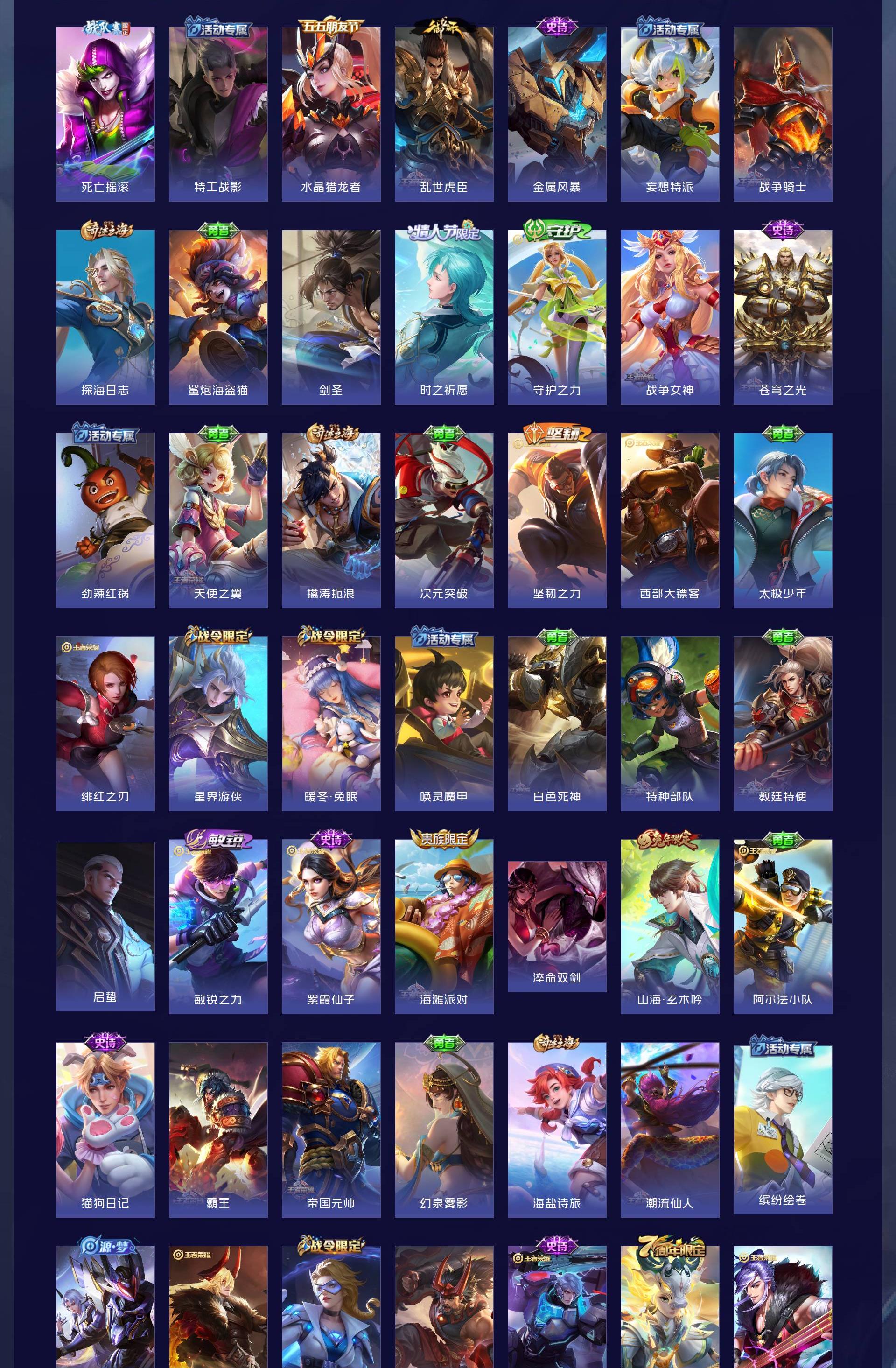 V2 皮肤189 英雄126 尊贵铂金 荣耀典藏1 传说3 其他皮肤191