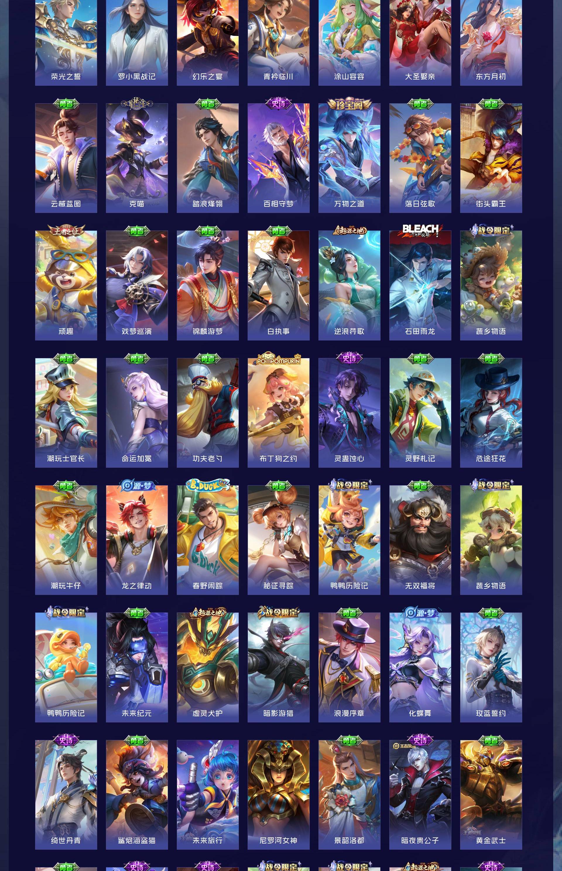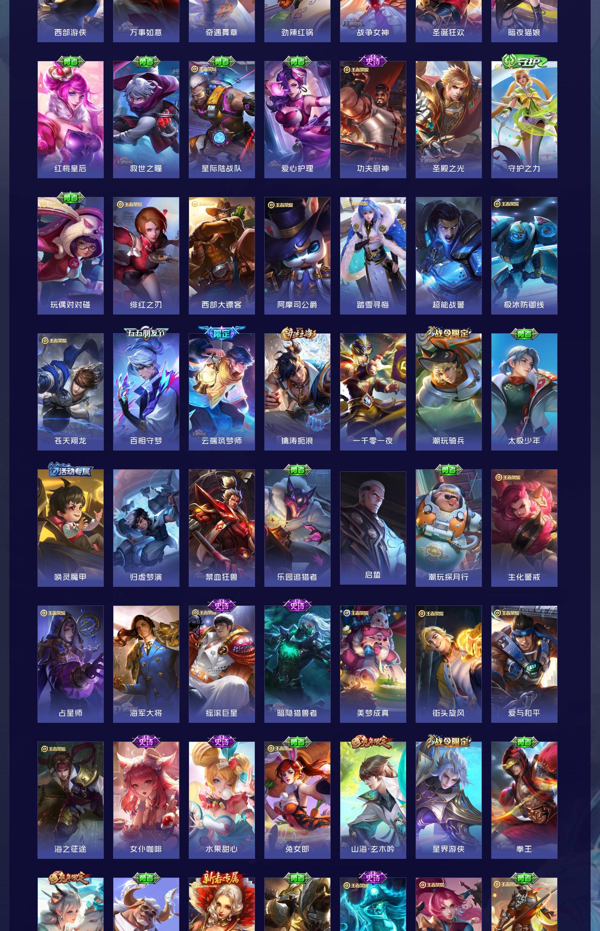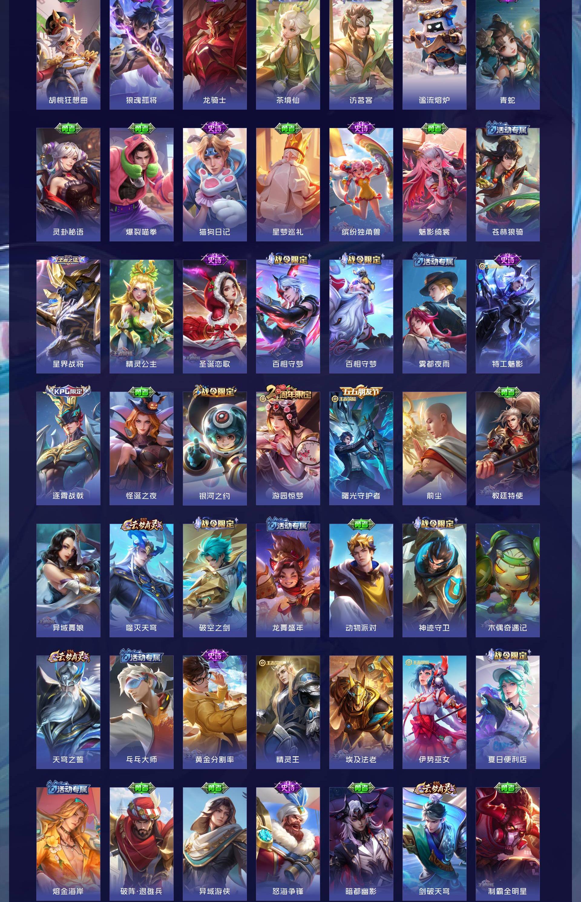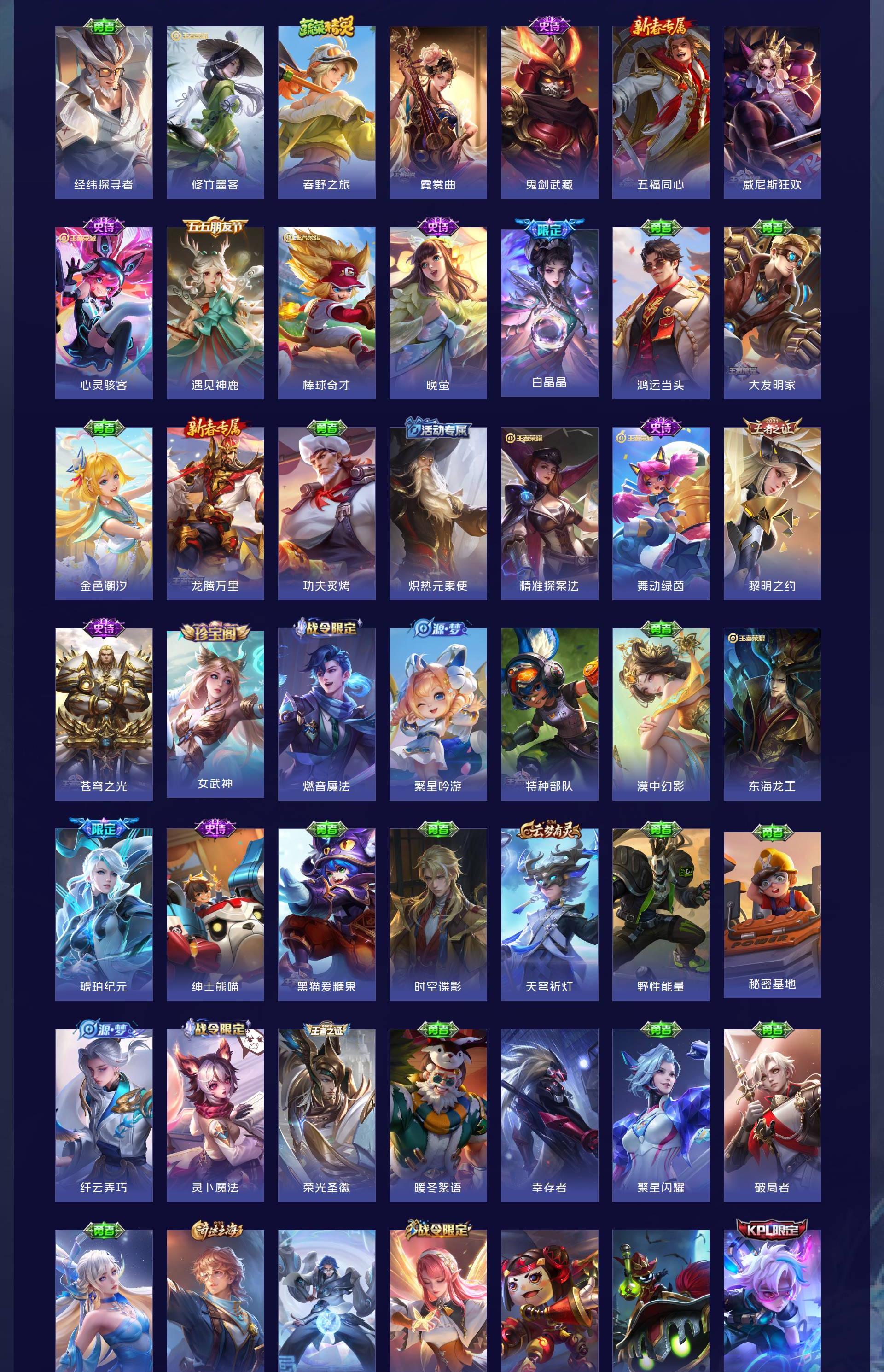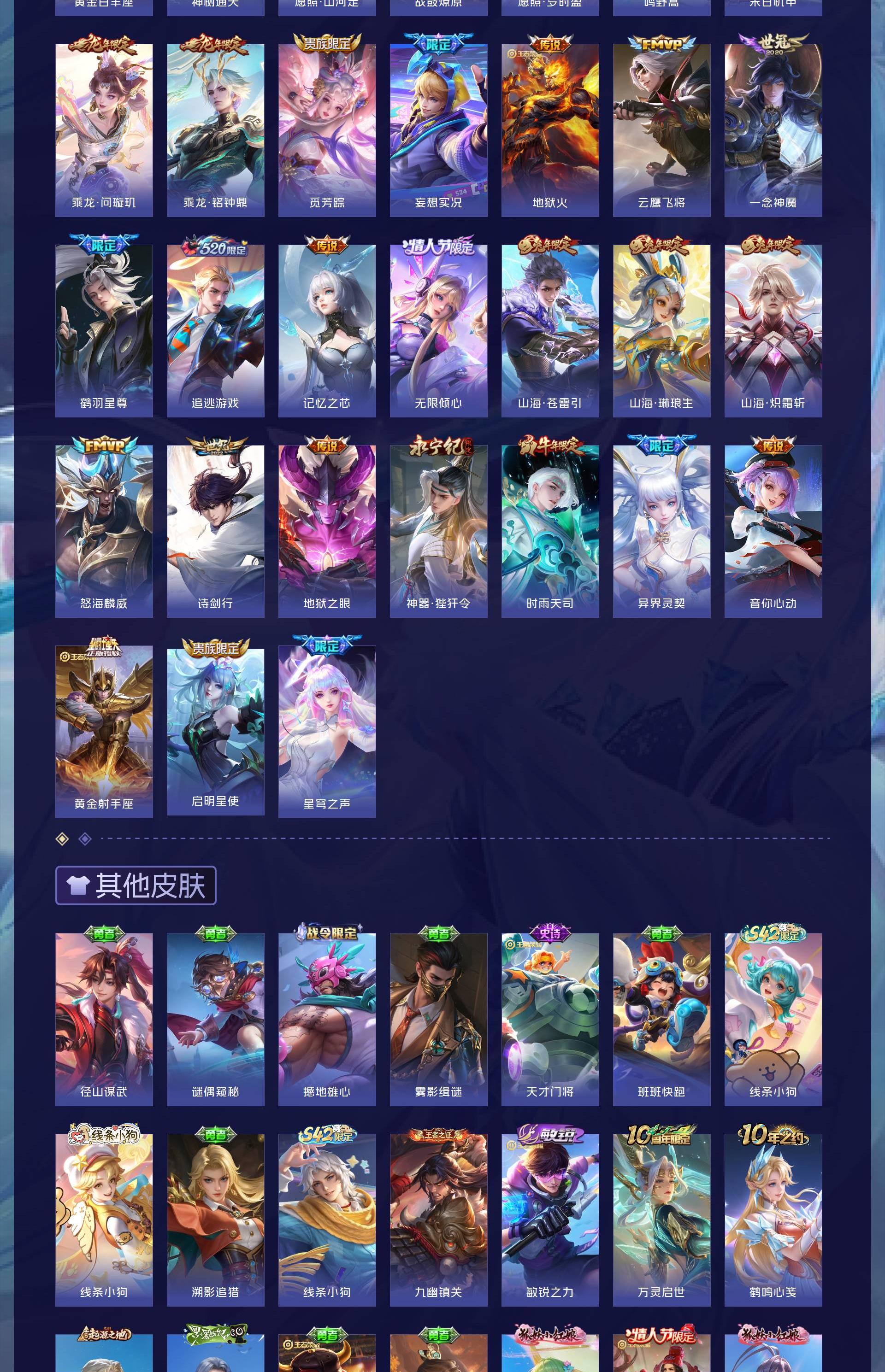 五个荣耀典藏,还有很多限定皮肤