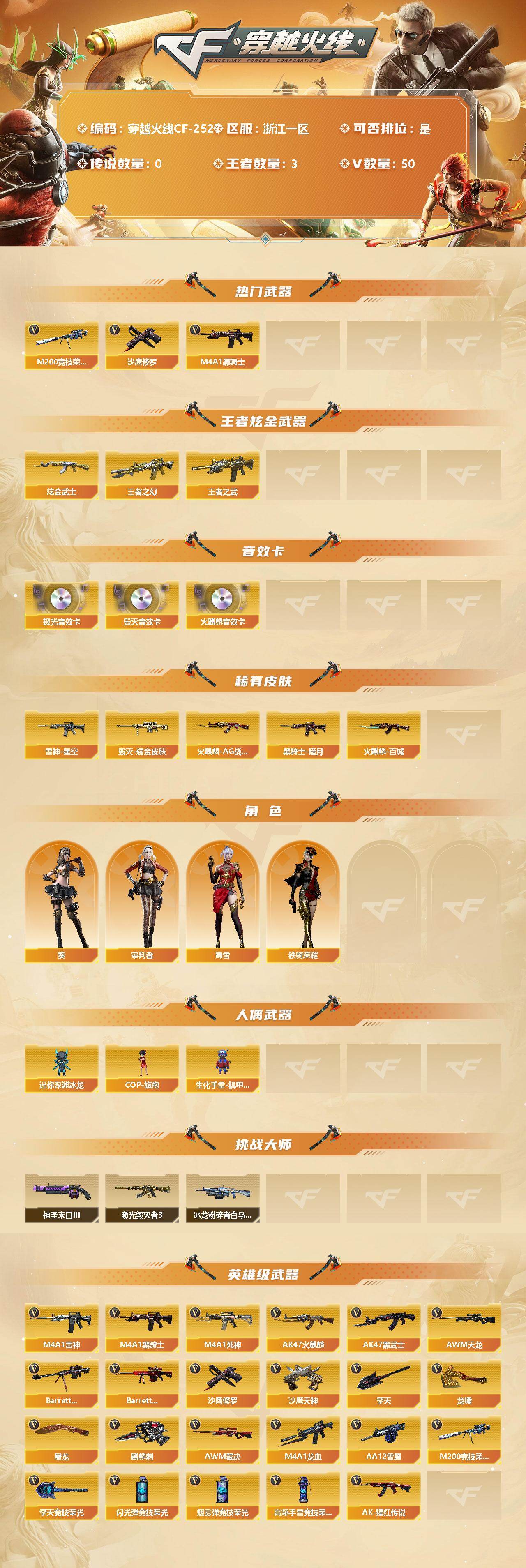 【商品标题】:浙江一区-50V-3王者-2炫金【热门武器】:M200-竞技荣
