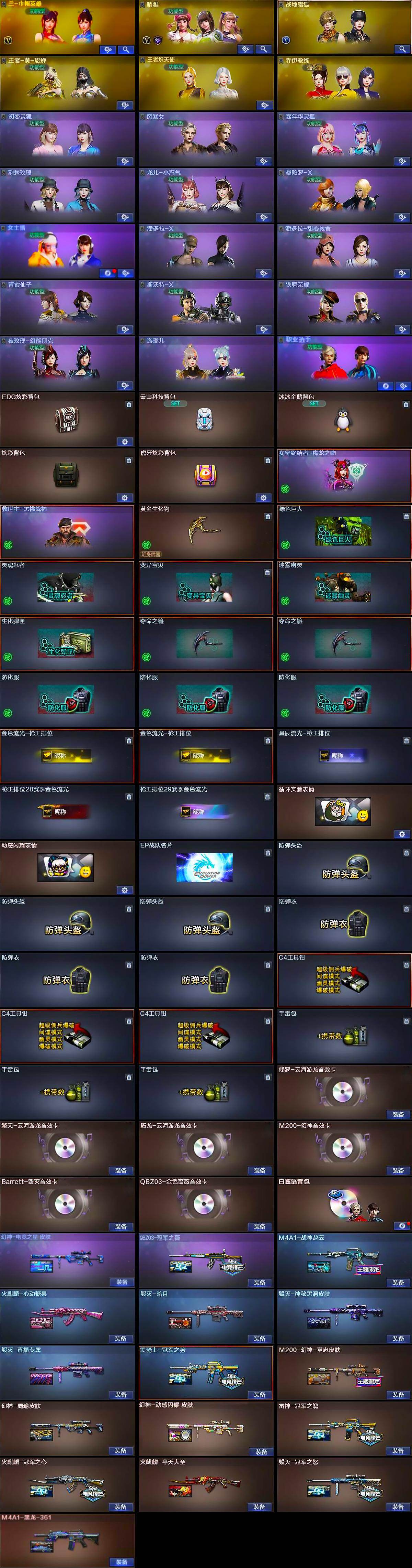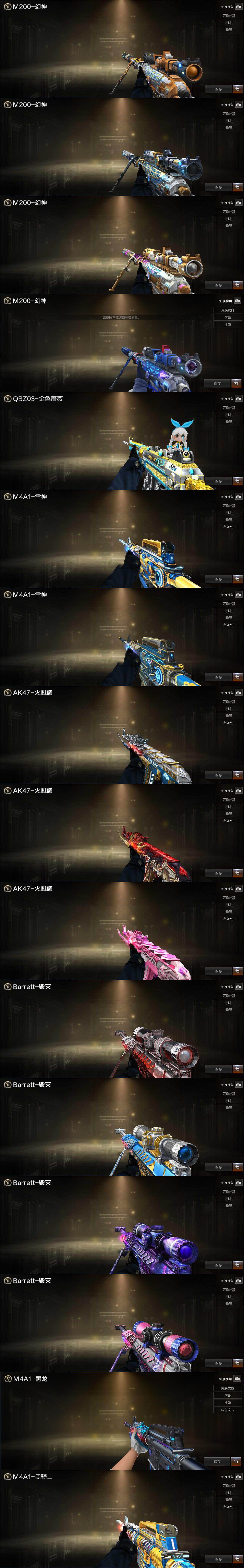 【热门武器】:QBZ03-金色蔷薇,M200-幻神,M200-竞技荣光,柯尔特-冠军之特*2,Kar98K-星神,金色小号,M4A1-黑骑士,羊驼玩偶,USP-雷暴,Knife-冠军之刃,炽芒蝶刃