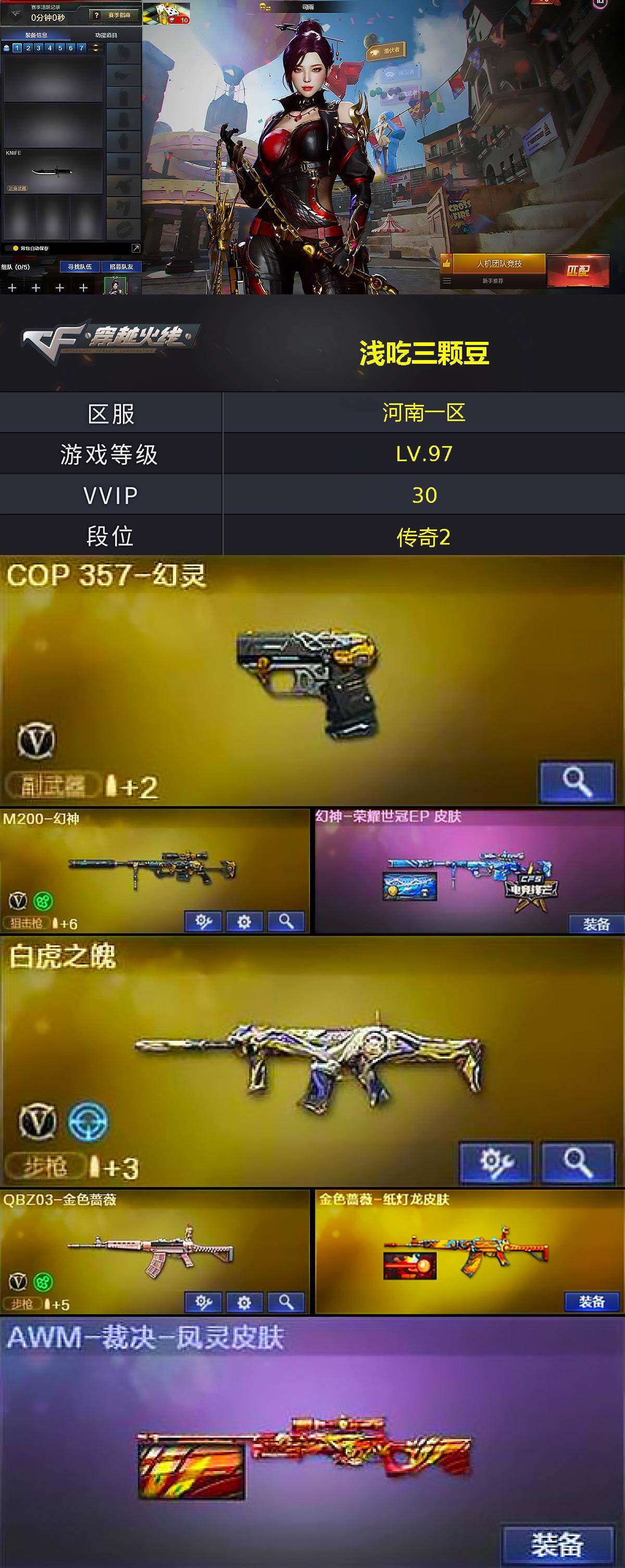 河南一区-33V-2王者武器数-0炫金武器数【热门武器】:QBZ03-金色蔷