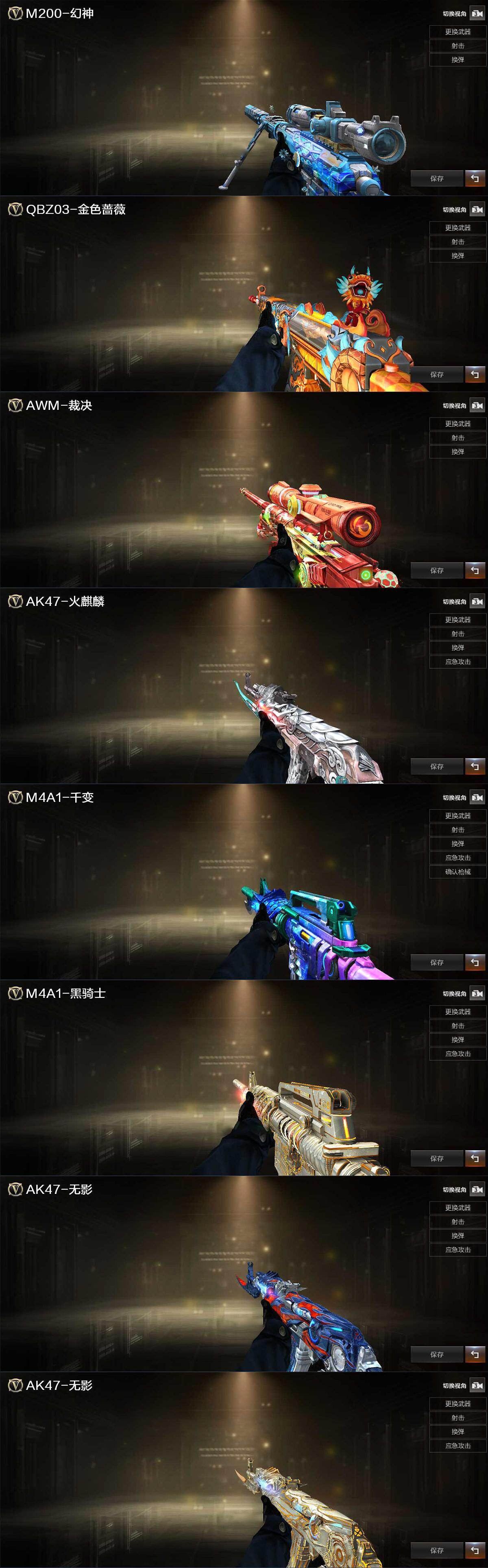 【热门武器】:QBZ03-金色蔷薇,M200-幻神,死亡之眼,M4A1-黑骑士,COP 357-幻灵