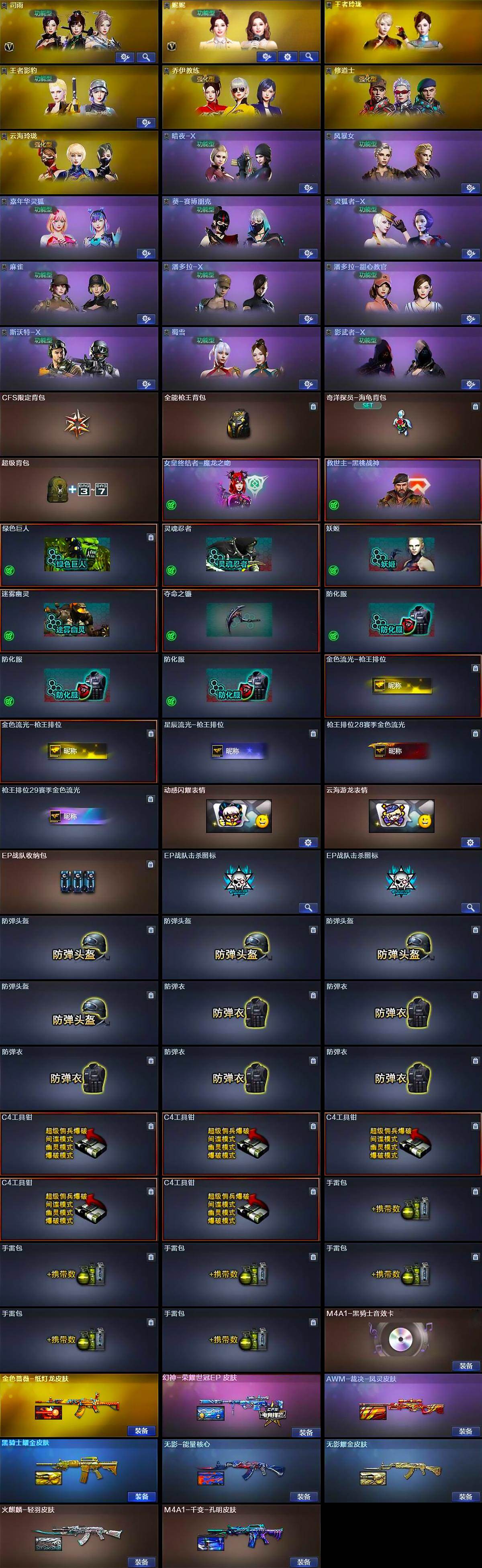 【皮肤】:幻神-荣耀世冠EP 皮肤,金色蔷薇-纸灯龙皮肤,AWM-裁决-凤灵皮肤,火麒麟-轻羽皮肤,M4A1-千变-孔明皮肤,黑骑士耀金皮肤,无影-能量核心,无影耀金皮肤
