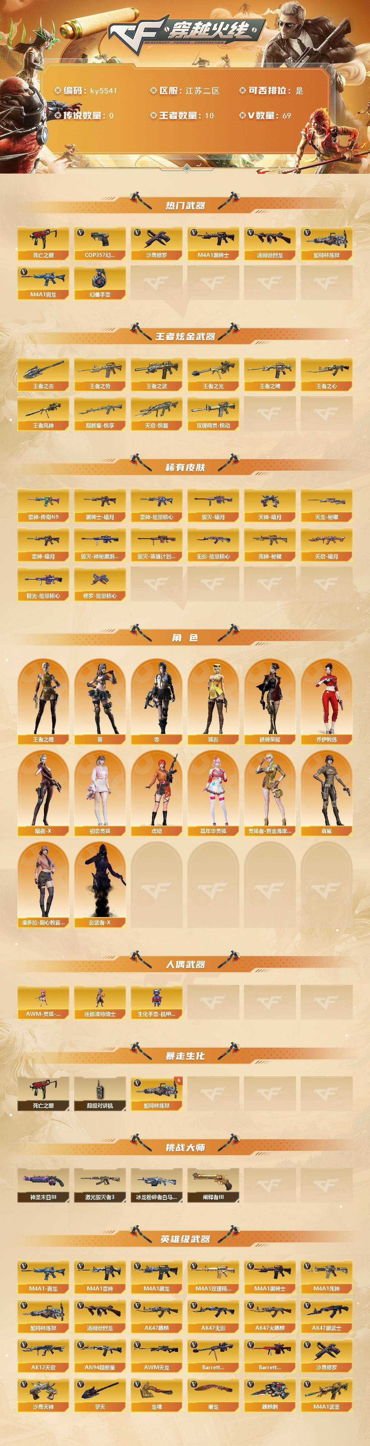 江苏二区-73V-10王者武器数-0炫金武器数【热门武器】:M4A1-青龙,