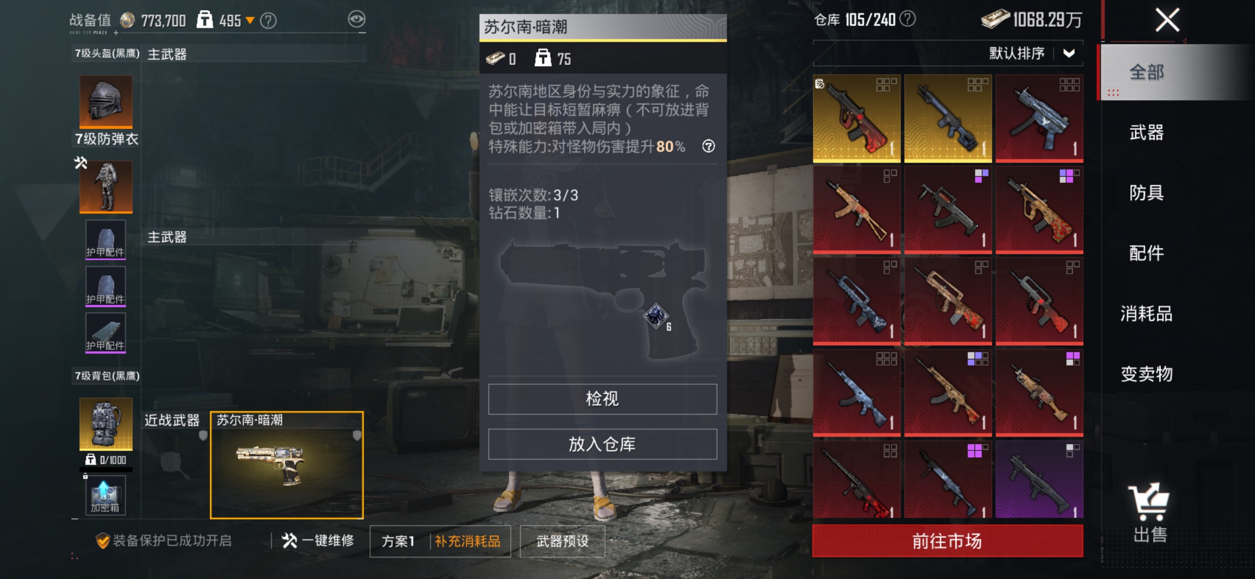无敌战神框,有1钻手枪,1辆车皮,m416满级升级枪