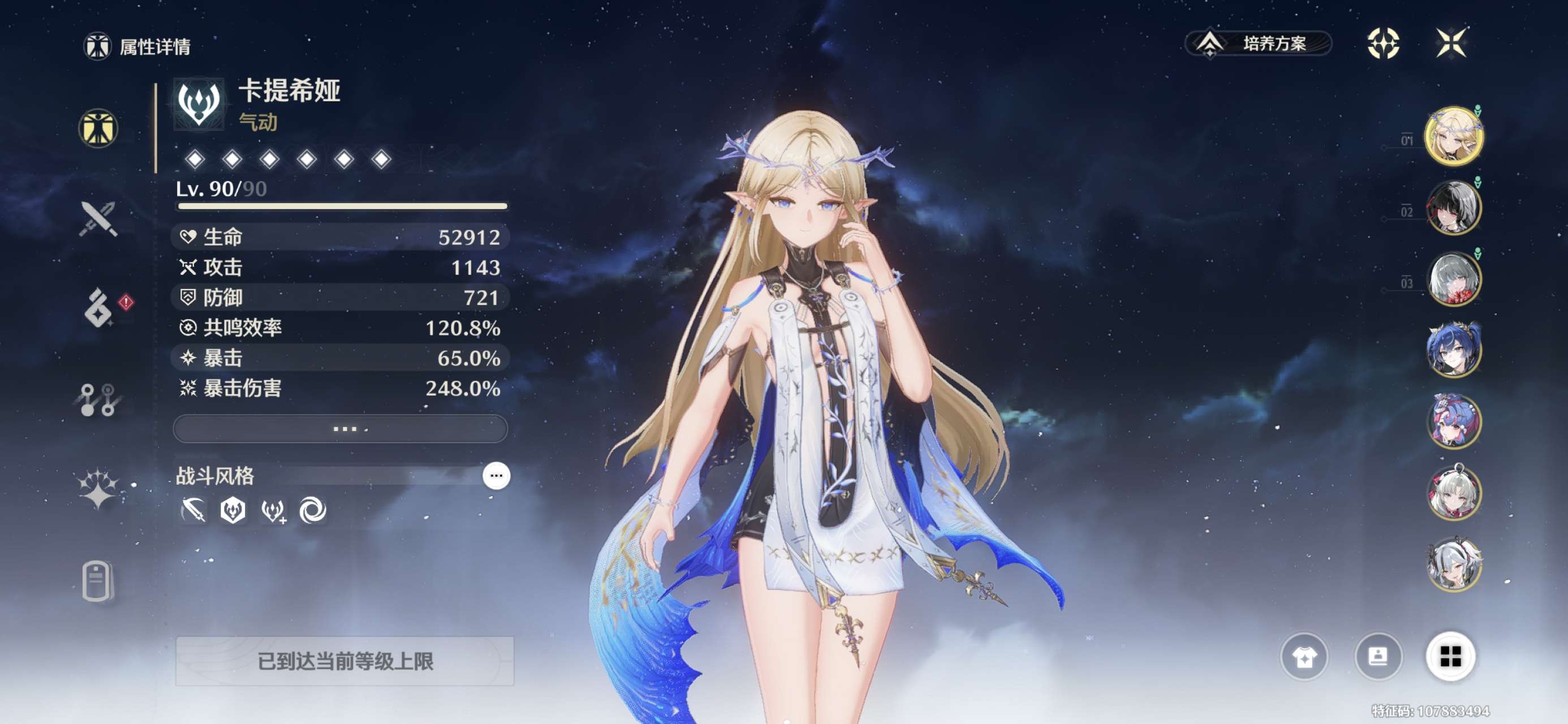 2+1卡提 0+2今汐 0+1千咲弗洛洛尤诺洛可可柯莱特椿 0+0守岸人吟霖 2命维里奈