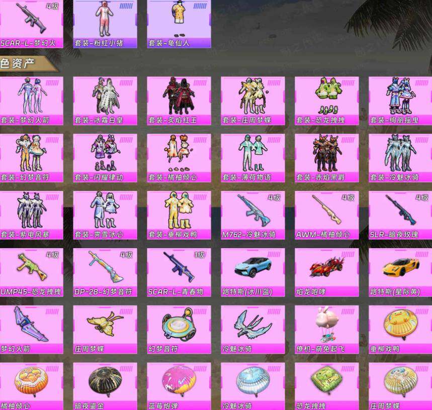 苹果 手Q-15粉装-7特效枪-3载具-4粉色飞行器-47518热力值-7王牌印记-74套装-101枪皮
