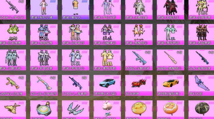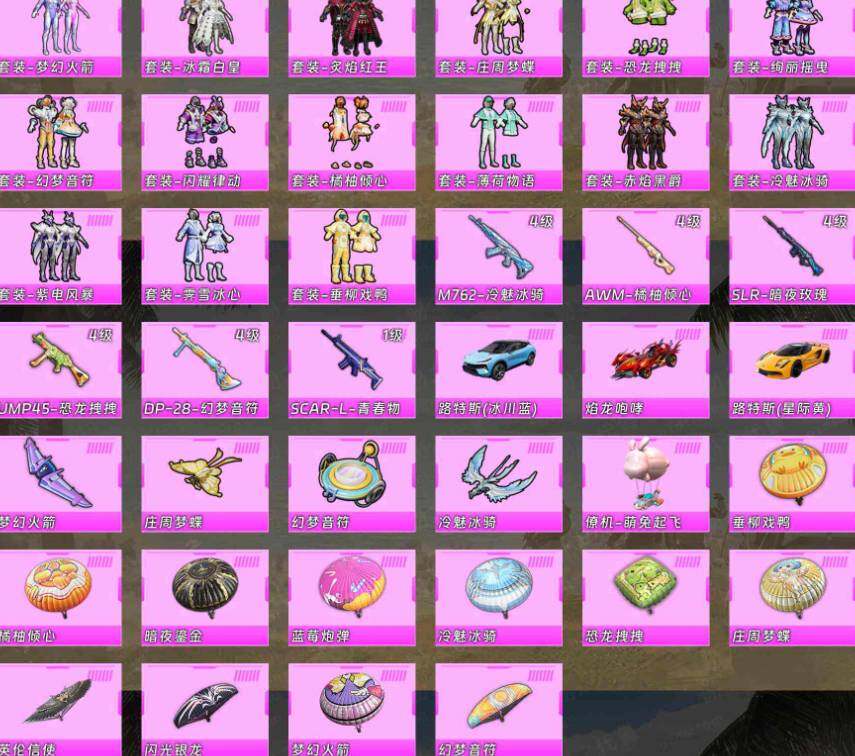 【粉色套装】:粉装-梦幻火箭,粉装-冰霜白皇,粉装-炙焰红王,粉装-薄荷物语,粉装-恐龙拽拽,粉装-庄周梦蝶,粉装-幻梦音符,粉装-绚丽摇曳,粉装-闪耀律动,粉装-橘柚倾心,粉装-冷魅冰骑,粉装-赤焰黑爵,粉装-紫电风暴,粉装-霁雪