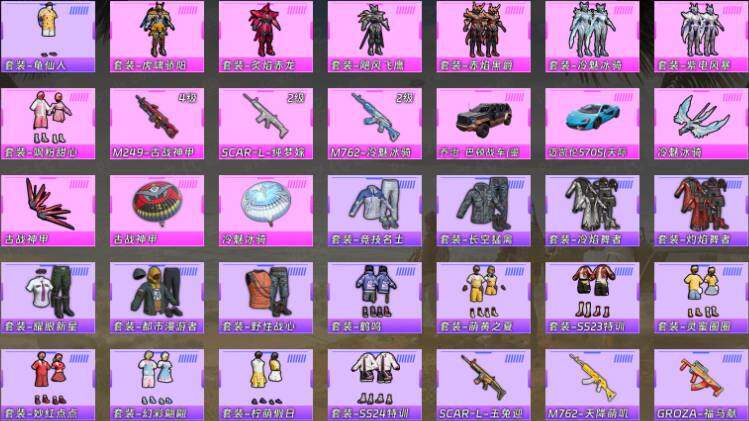 【粉色枪皮等级】:SCAR-L-纯梦嫁纱(二级),M762-冷魅冰骑(二级),M249-古战神甲(四级)