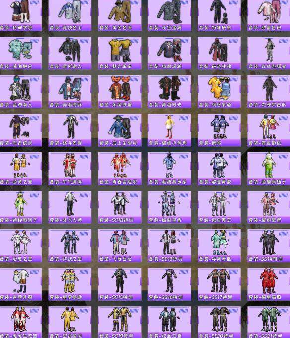 【粉色套装】:粉装-暗星紫秘,角色-万古烈焰,角色-宙之时溯,角色-星云暗核,粉装-莲影清波,角色-冰炎战车,角色-紫钛骑兵