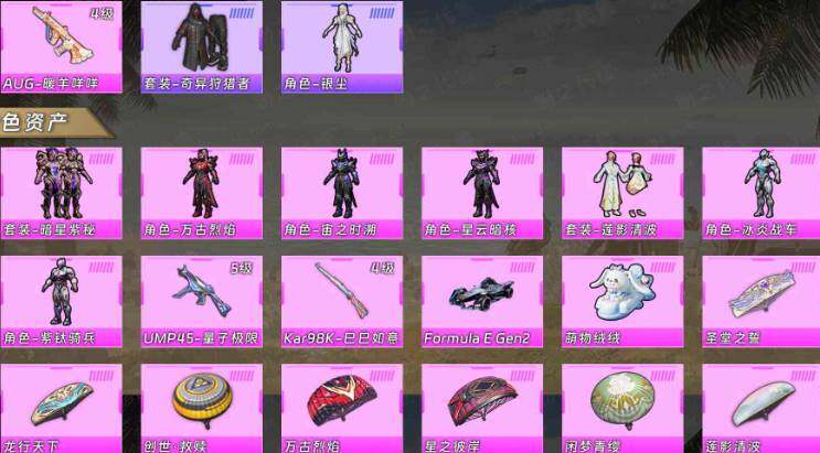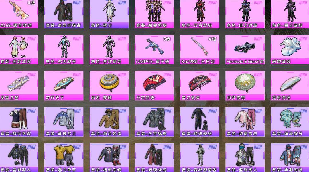 【粉色枪皮等级】:AUG-暖羊咩咩(四级),UMP45-量子极限(五级),Kar98K-巳巳如意(四级)