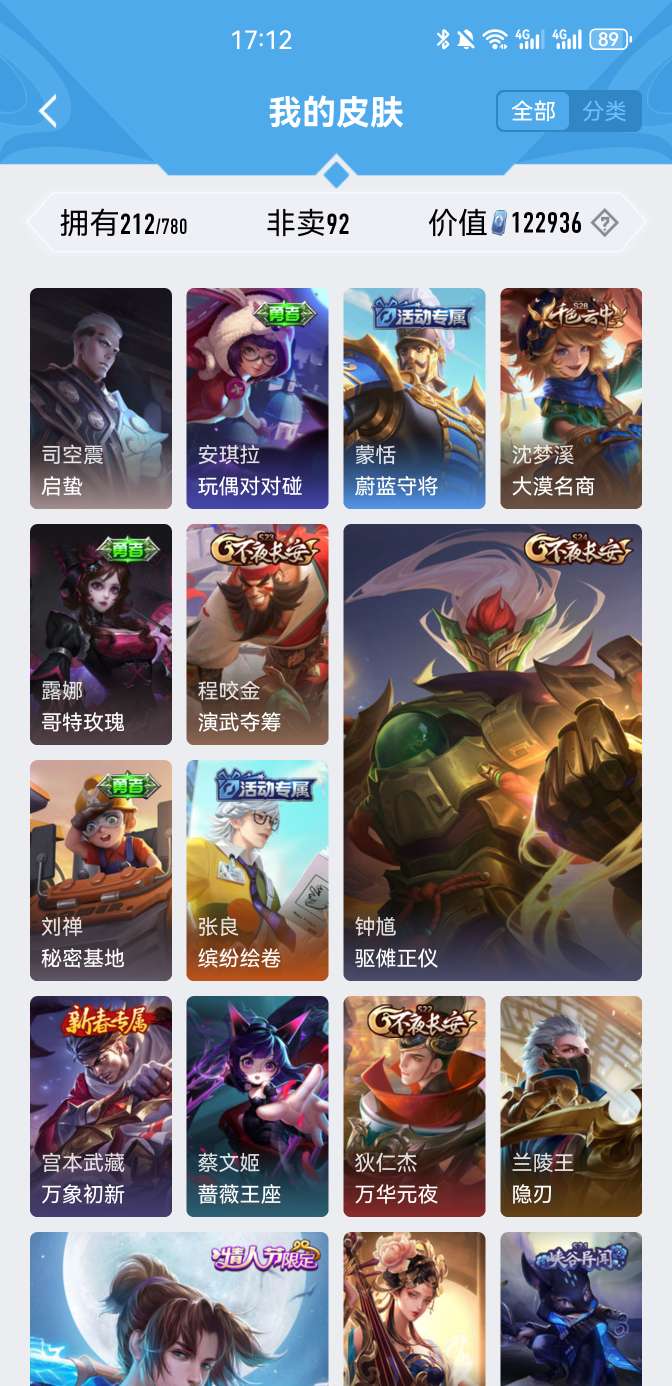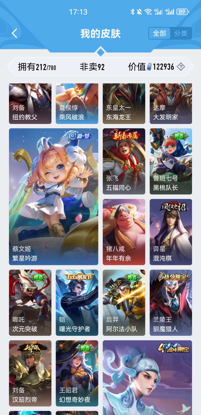 V6 皮肤212 英雄127 绝世王者 传说4 其他皮肤211
