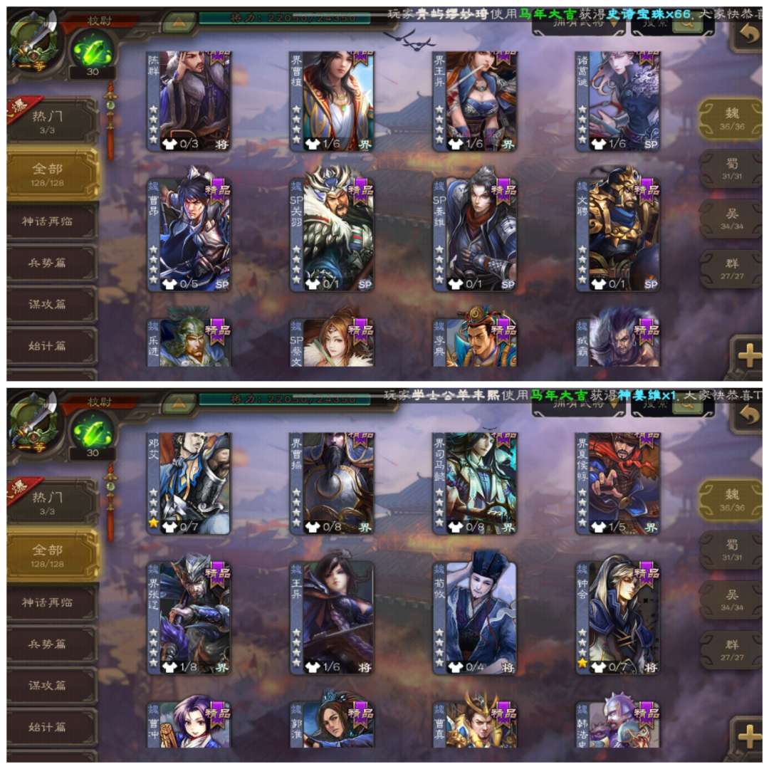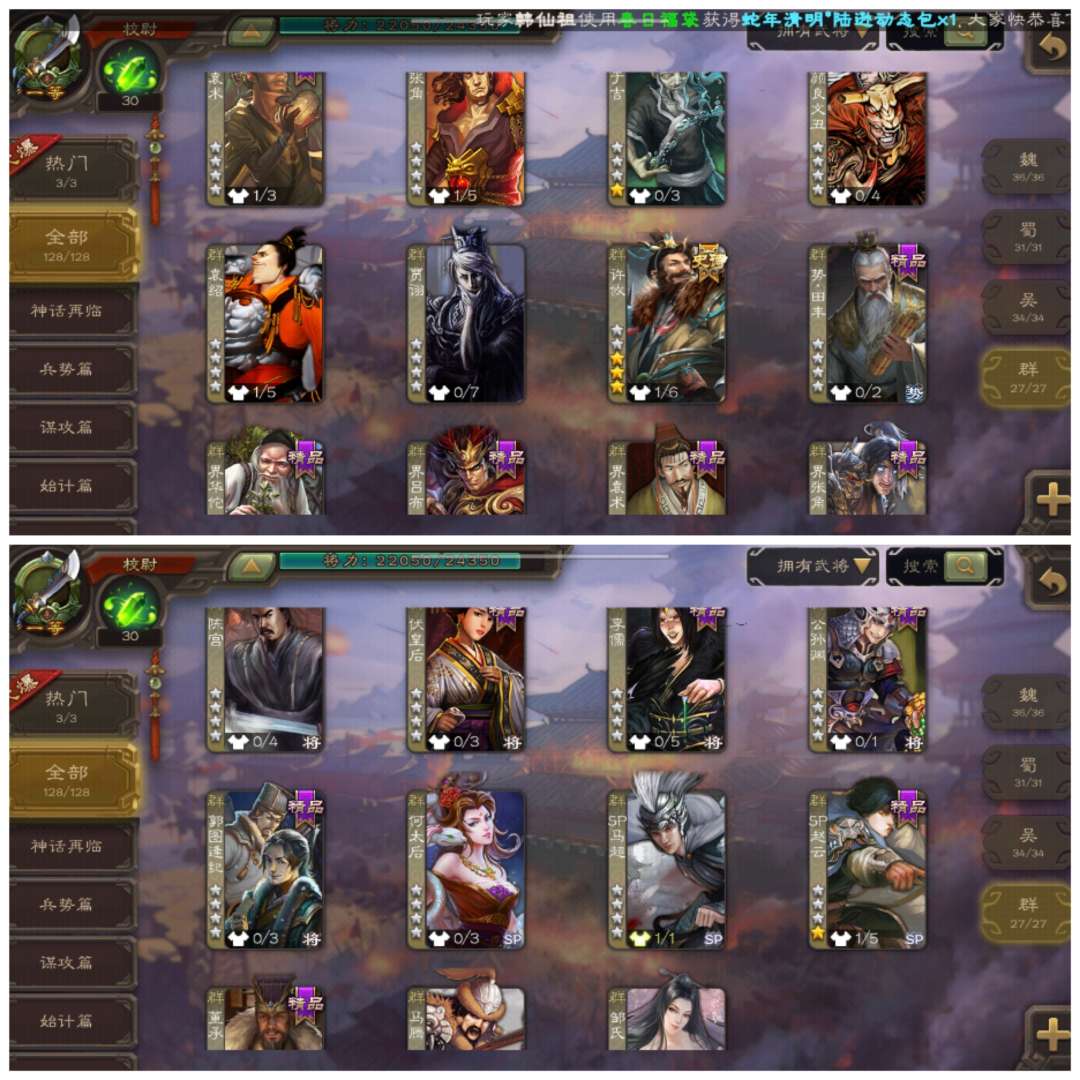 官服字母活绑动许攸神赵云贺齐,精品不错三卡充足材料丰富活树