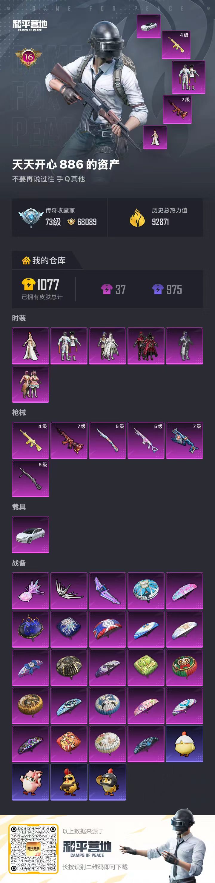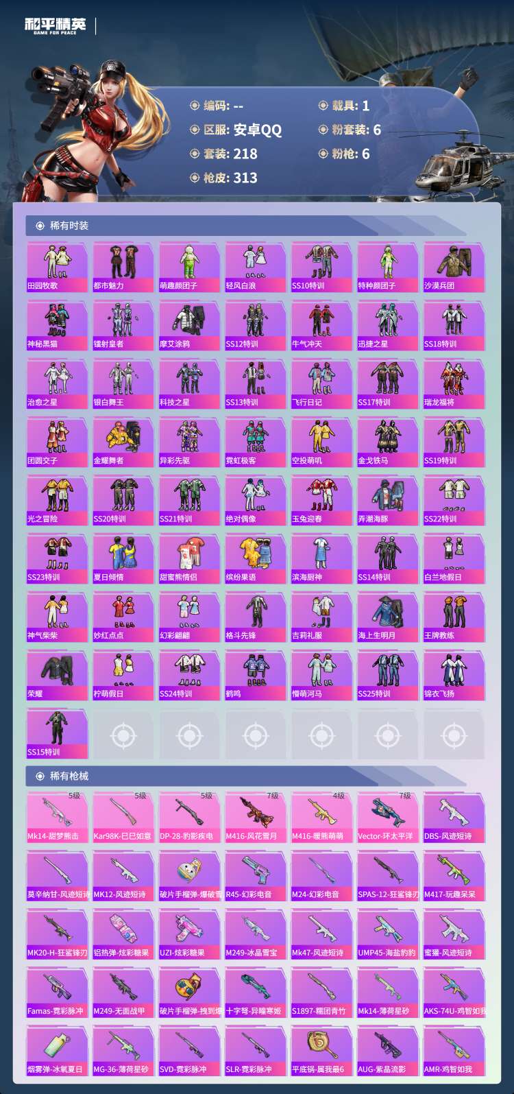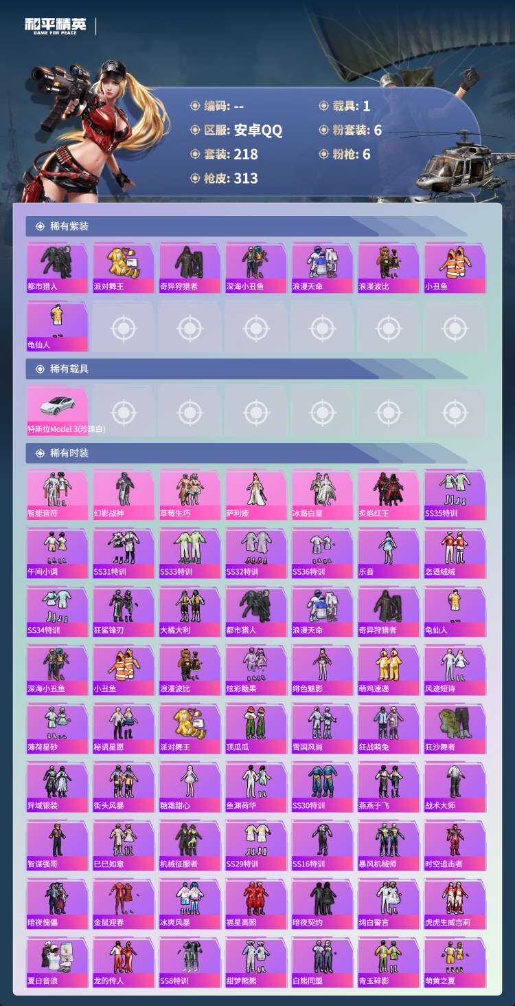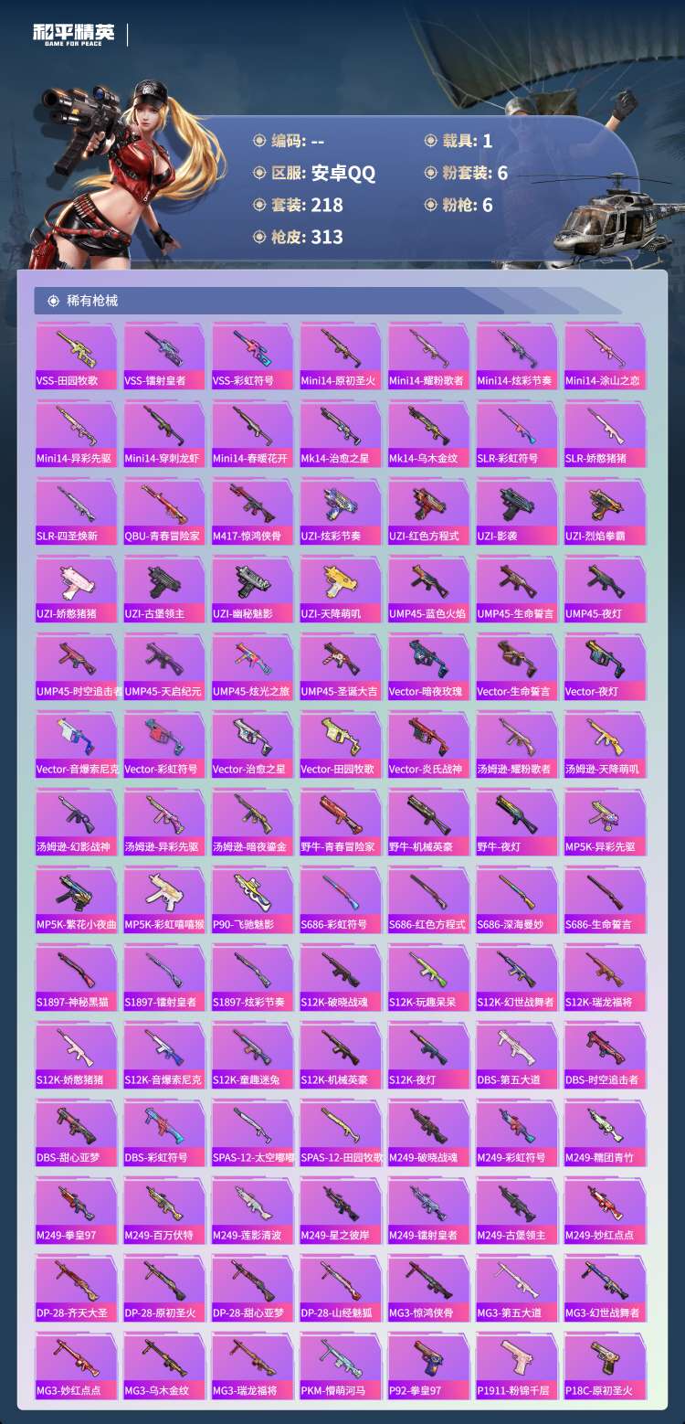 hs61249 安卓手Q-16王牌印记-6粉装-6特效枪-1载具-92871热力值-218套装-31