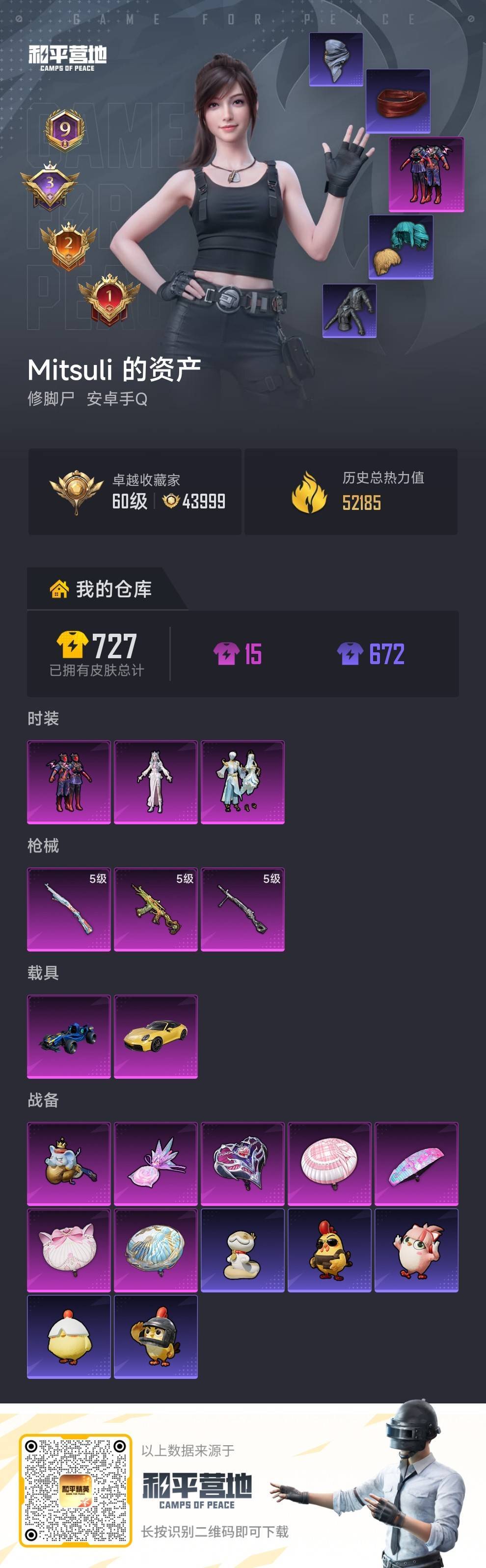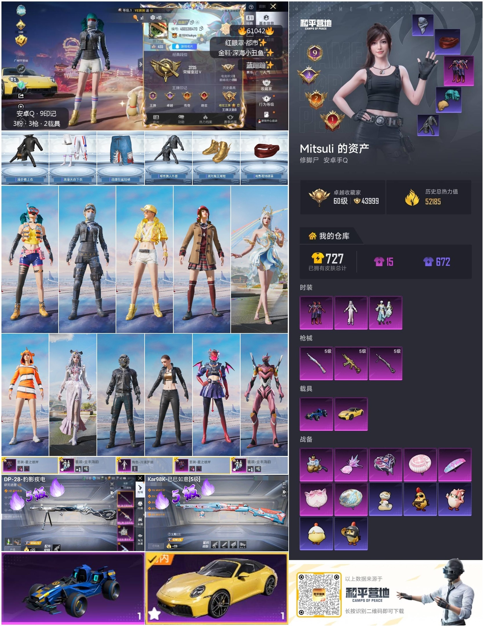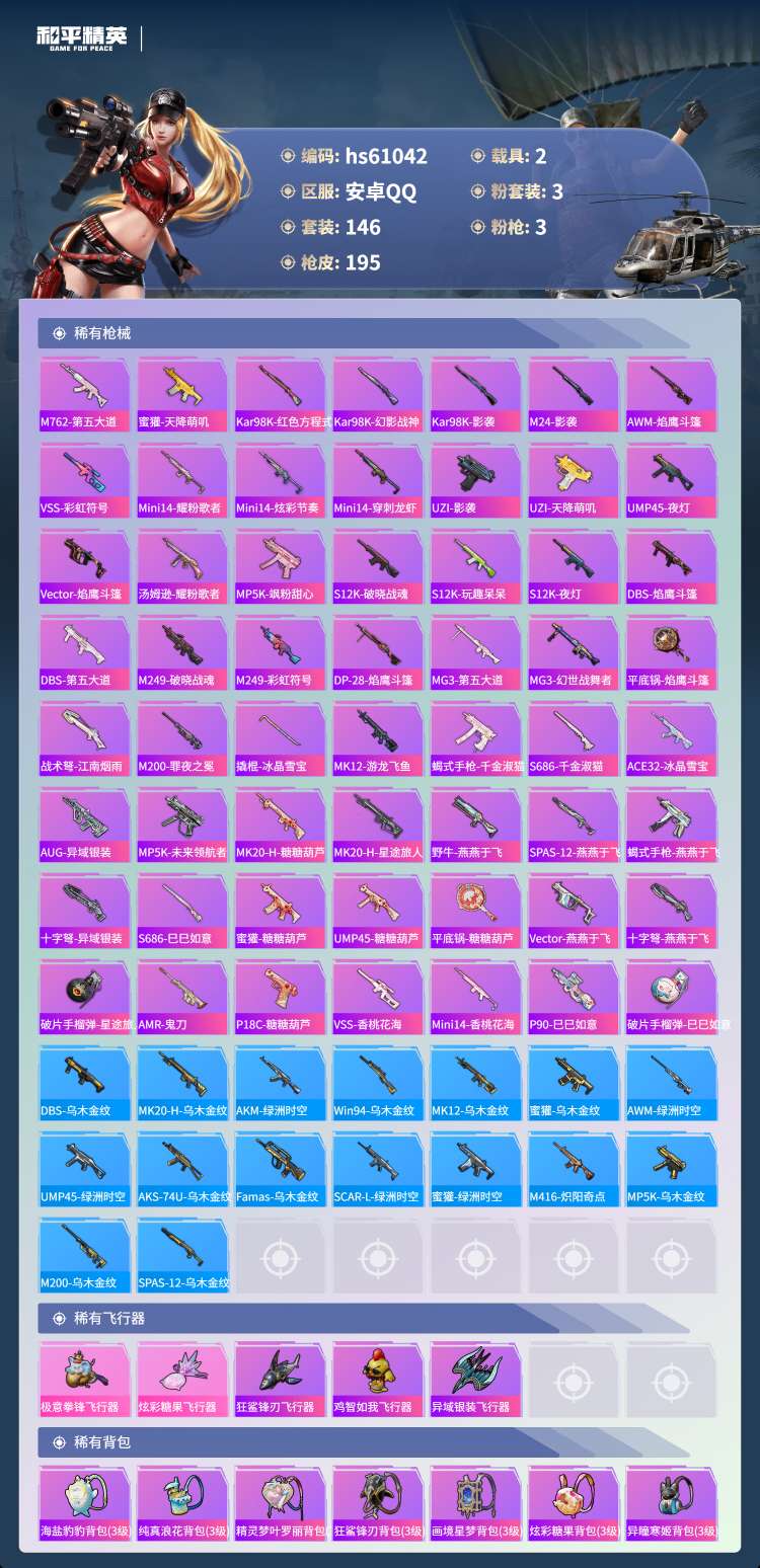hs61042 安卓手Q-9王牌印记-3粉装-3特效枪-2载具-52185热力值-146套装-195