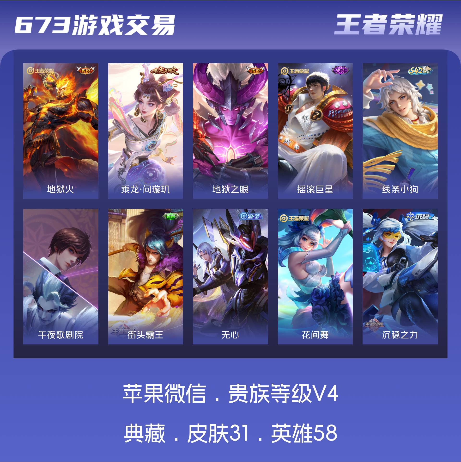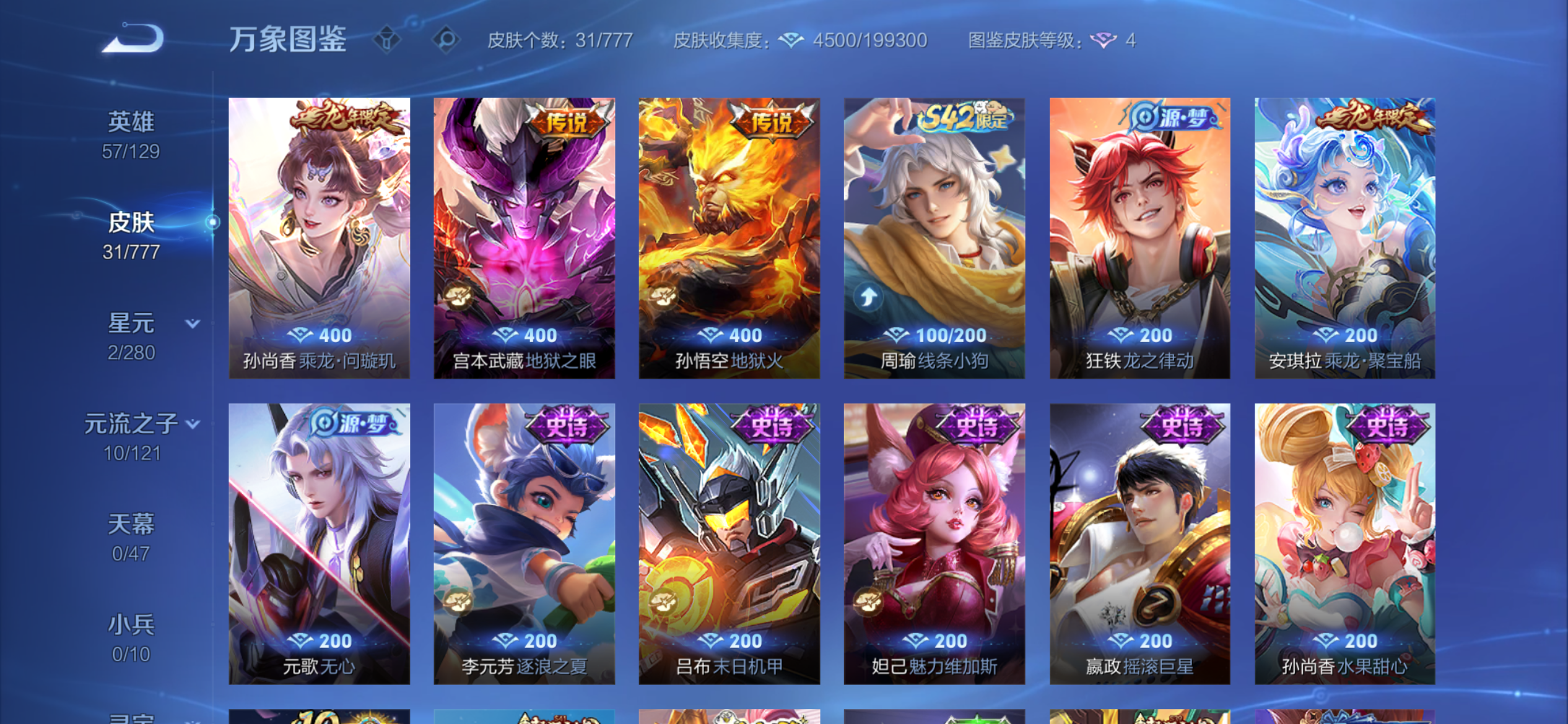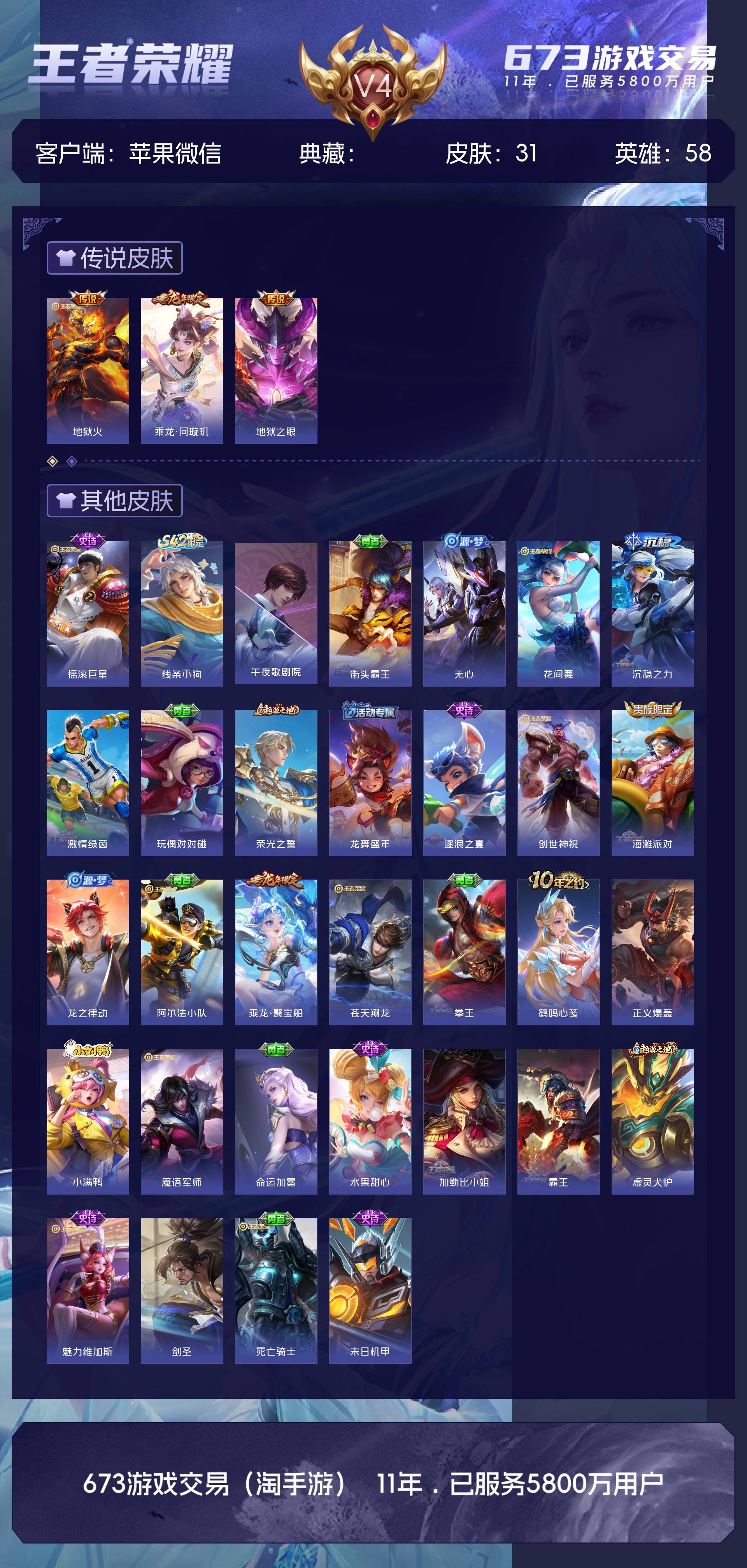 V4 皮肤31 英雄58 尊贵铂金 传说3 其他皮肤32