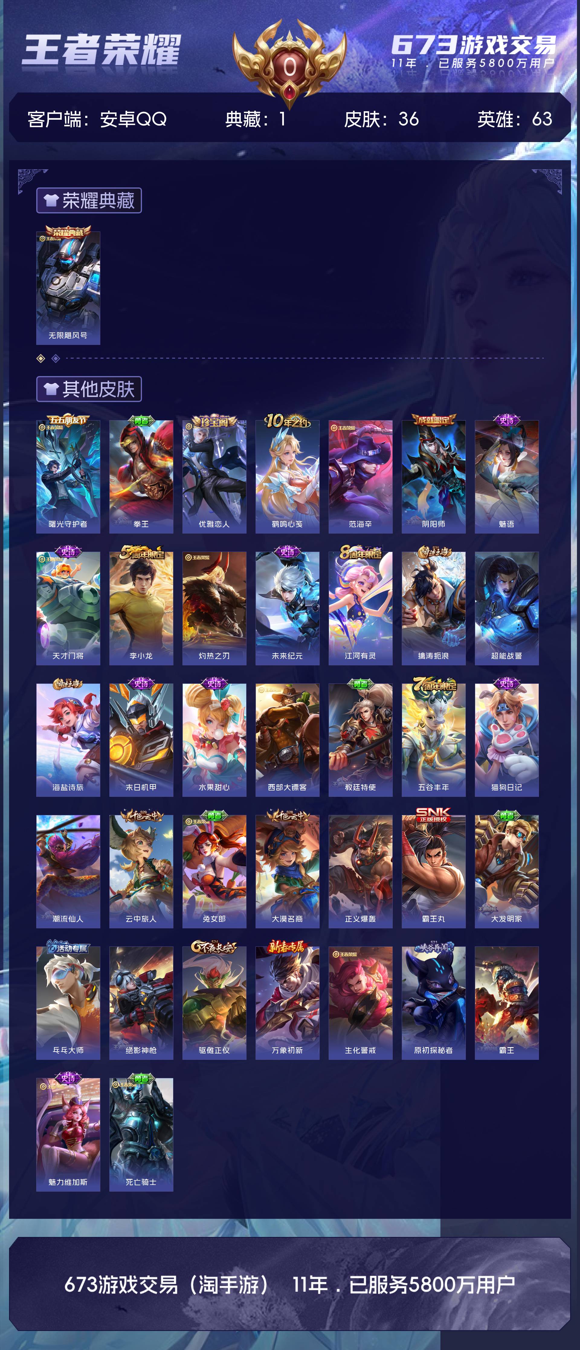 皮肤36 英雄63 荣耀黄金 荣耀典藏1 其他皮肤37