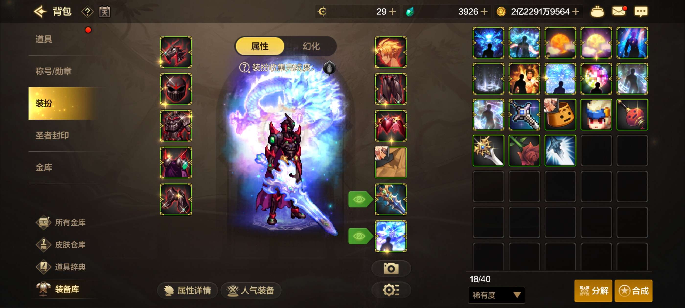 万氪大宝剑,八套天空至尊,宝珠都有,小号都有武器装扮 9个金秋币