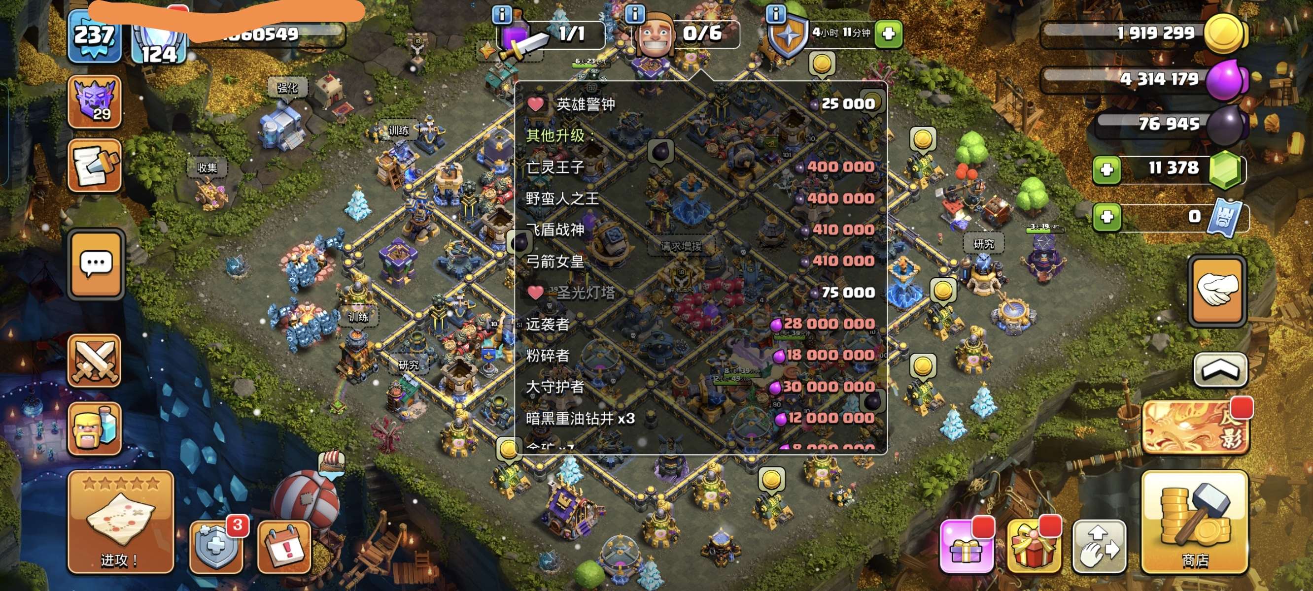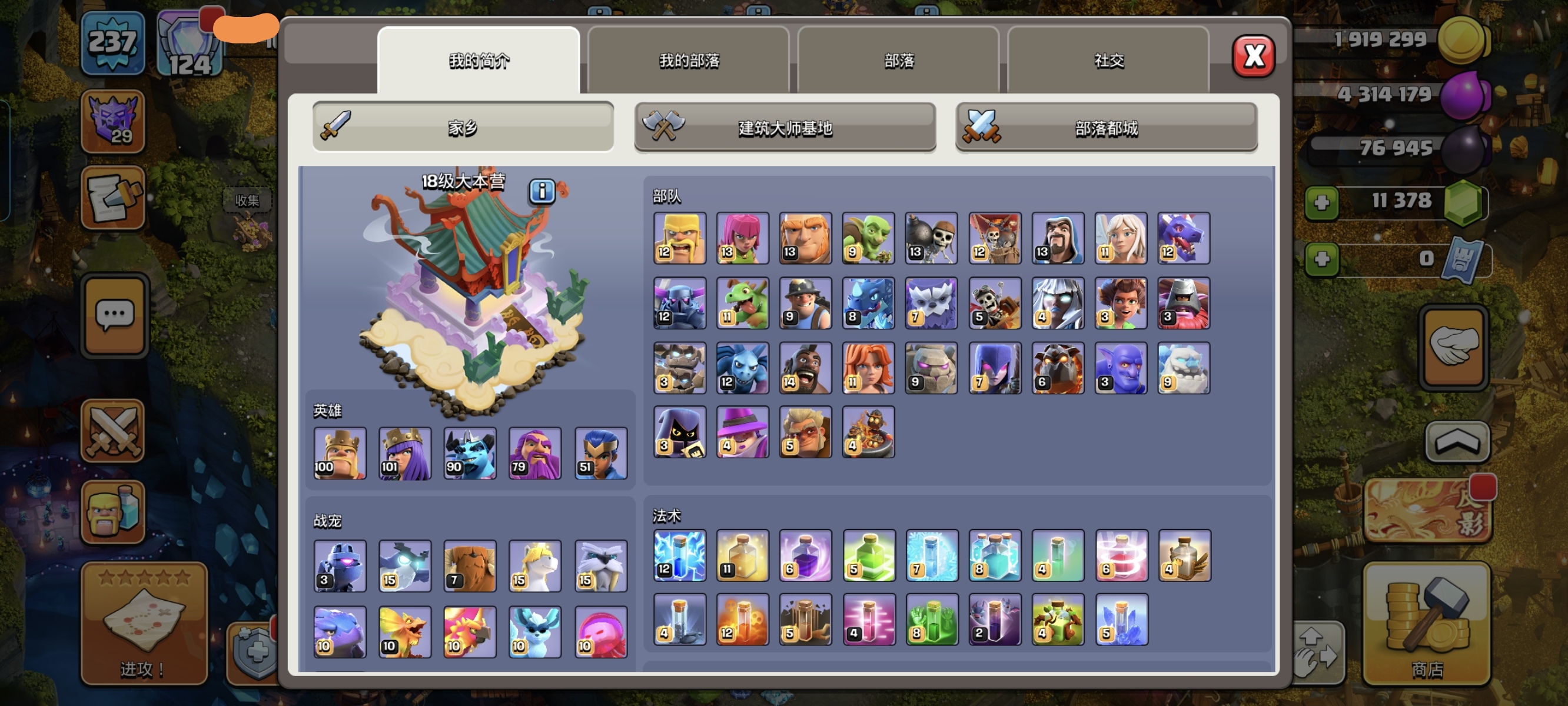 18本,237级,繁荣124,准毕业号,矿石、联赛币满,可二次实名,资源丰富。