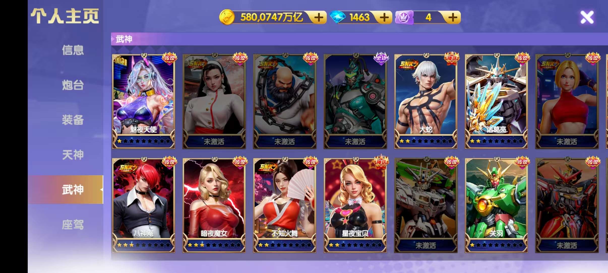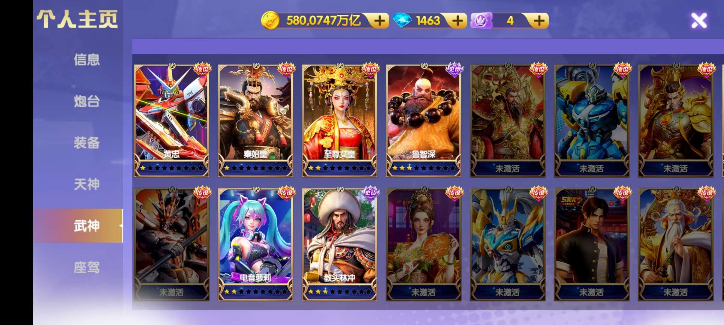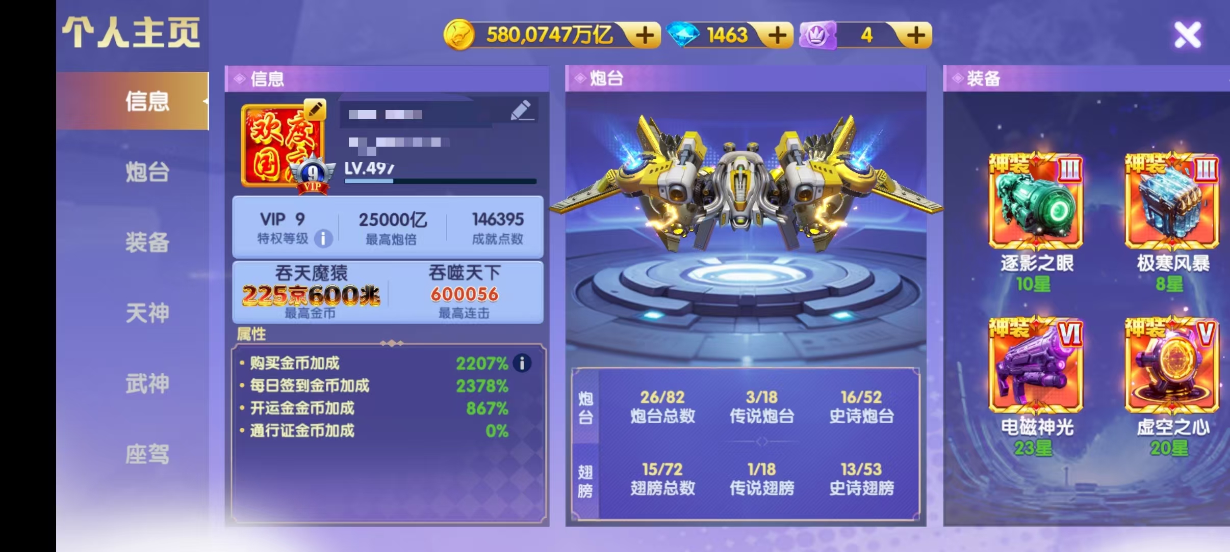 580兆。2.5万炮神装27连击。天王觉醒双龙。洪荒三级西游羁绊,14武神连击2100,三座驾便宜出