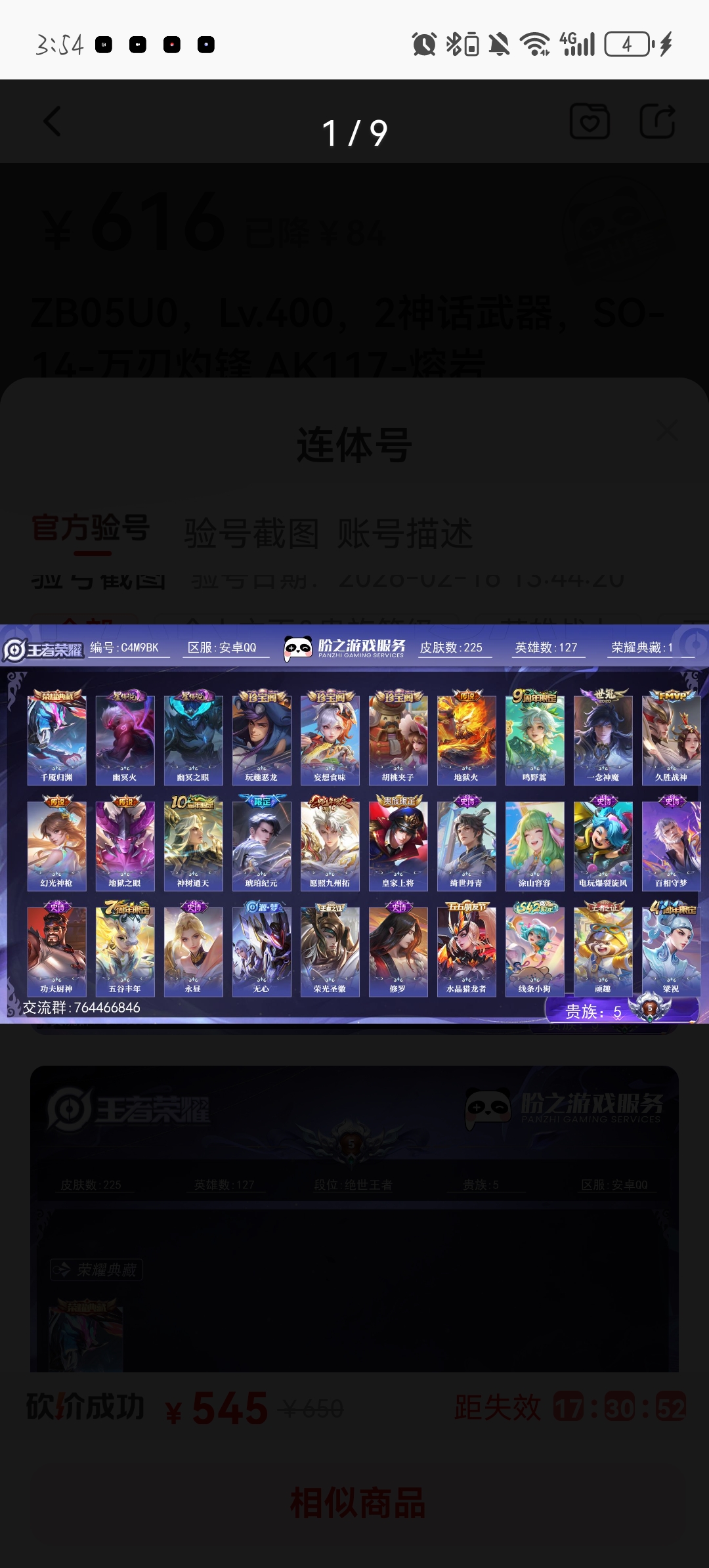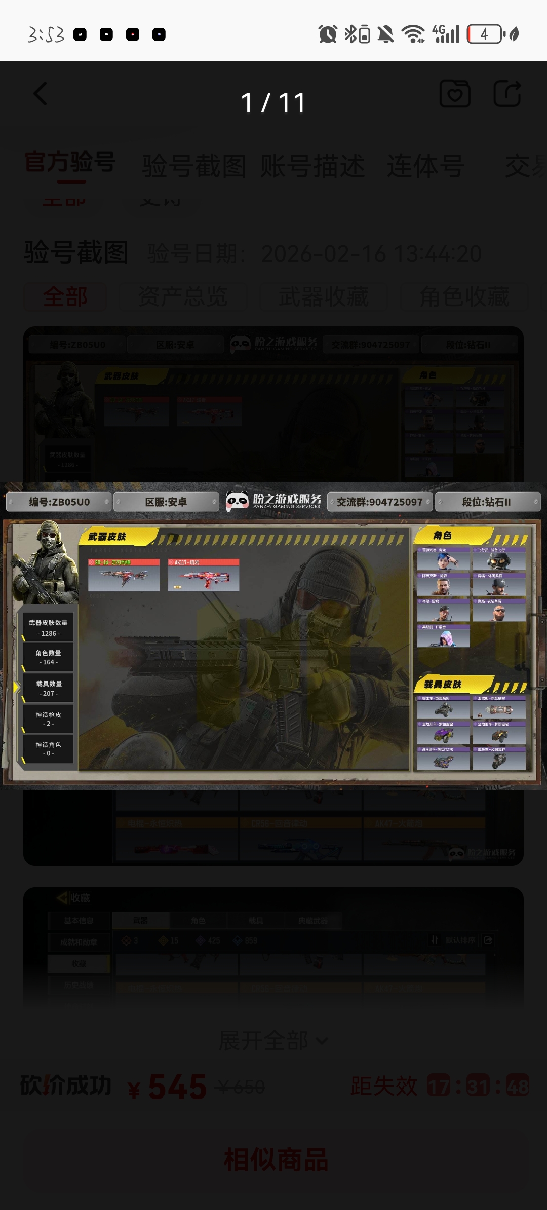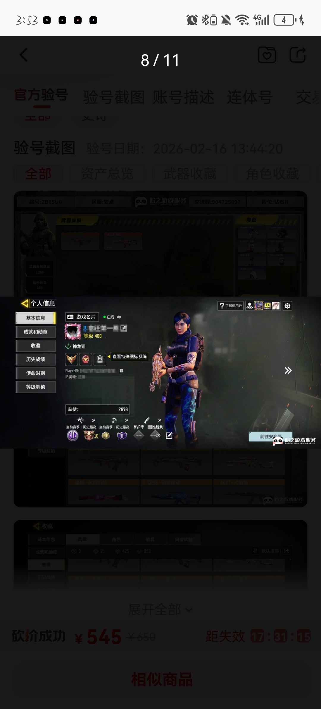 通过App,与卖家商议价格及保险,并向卖家索要账号最新截图,确认后下单购买。