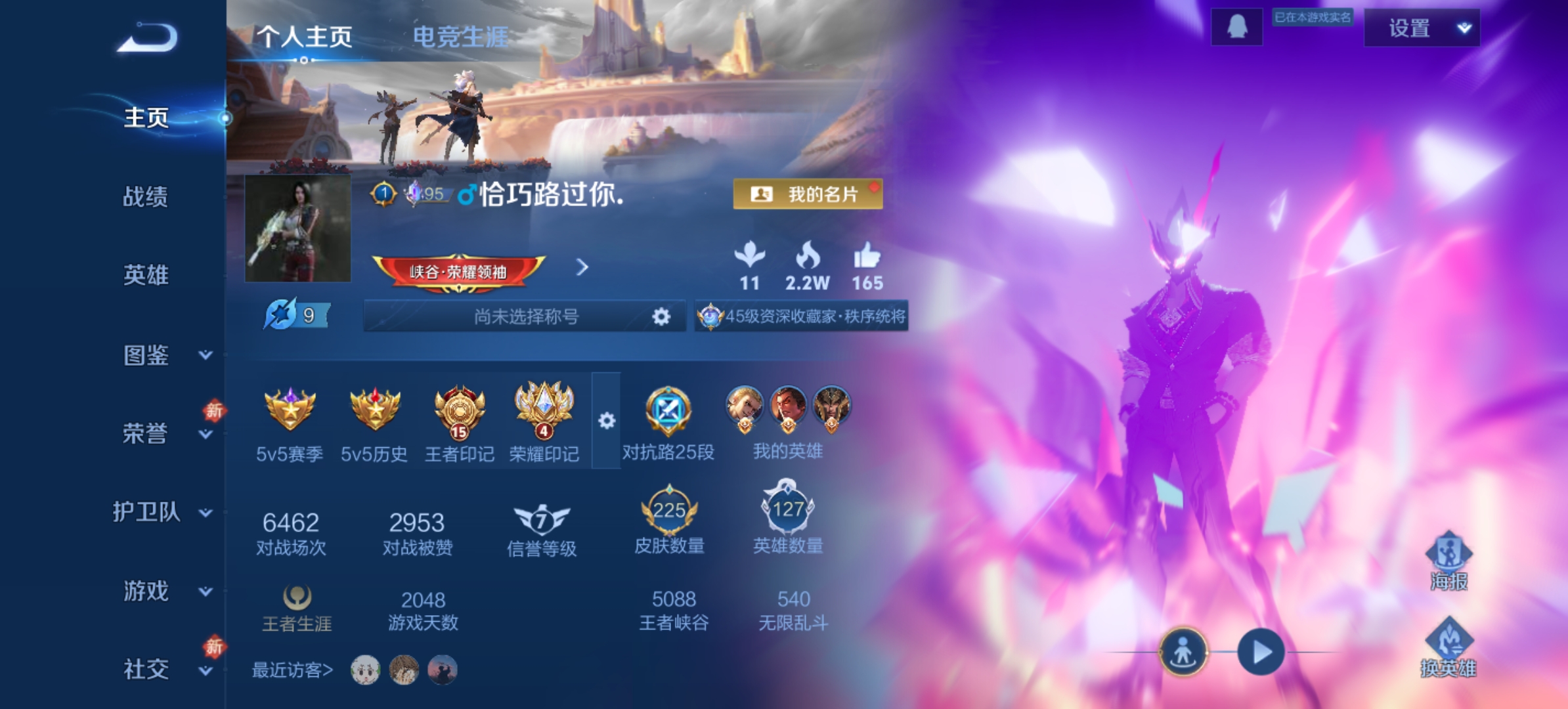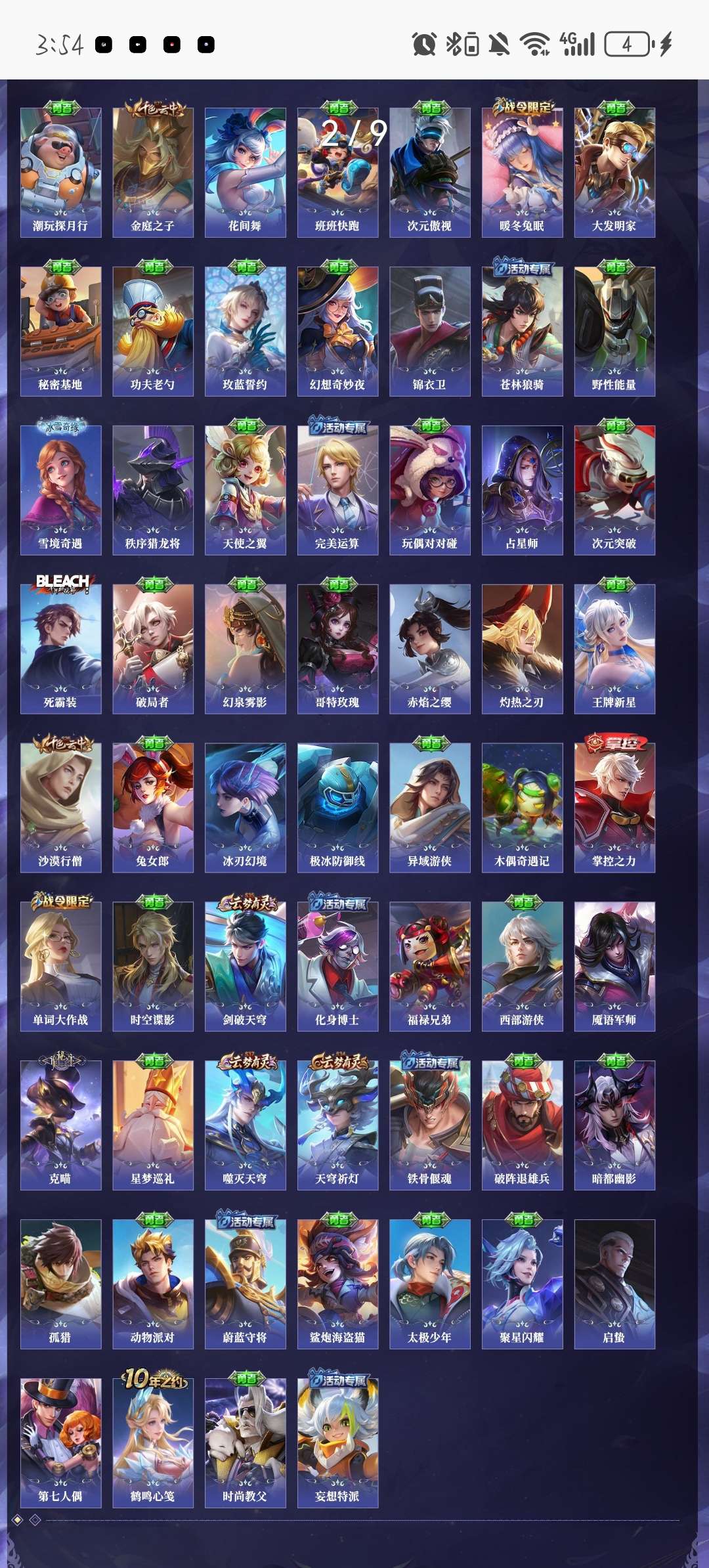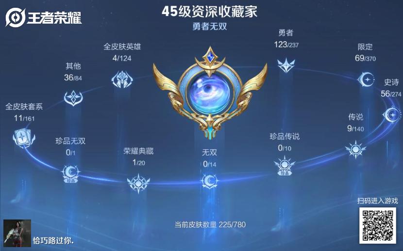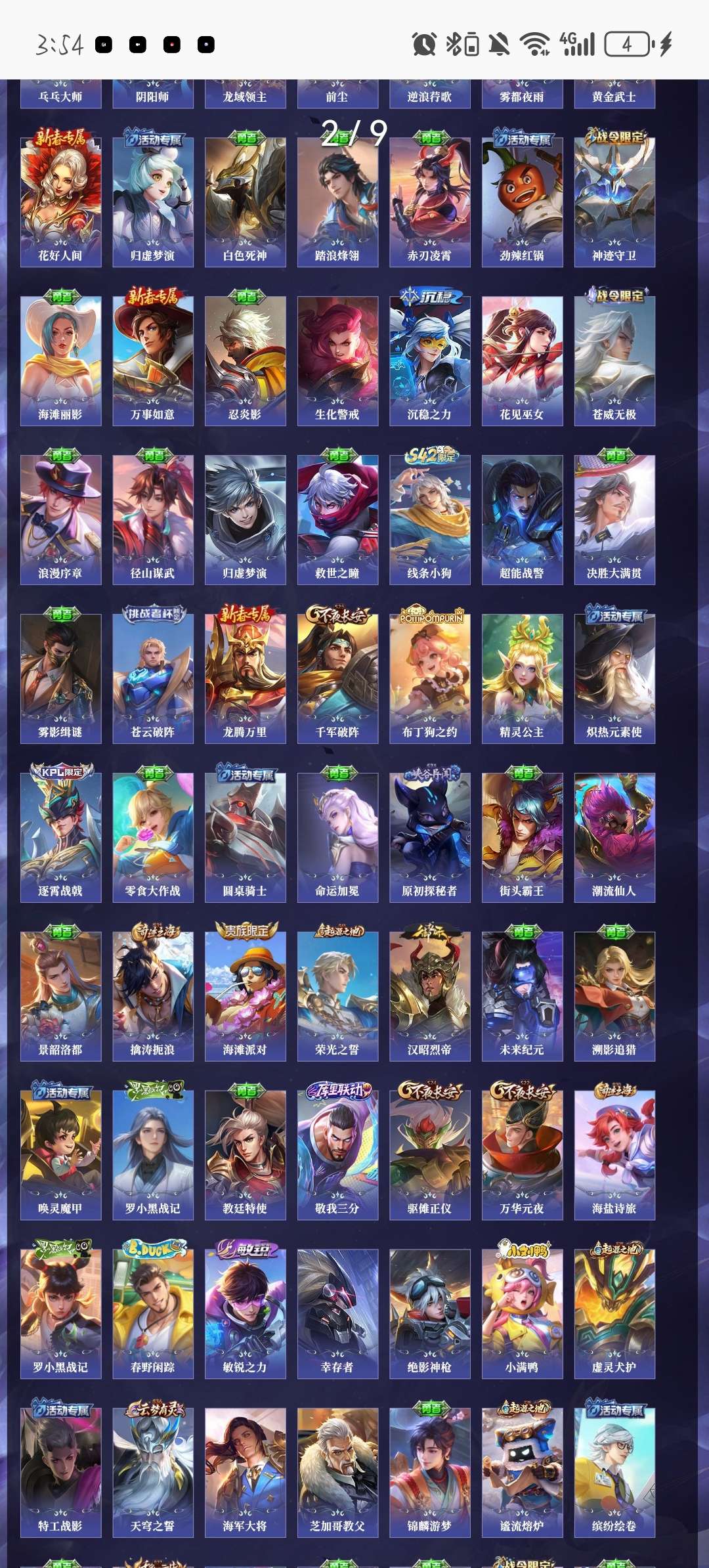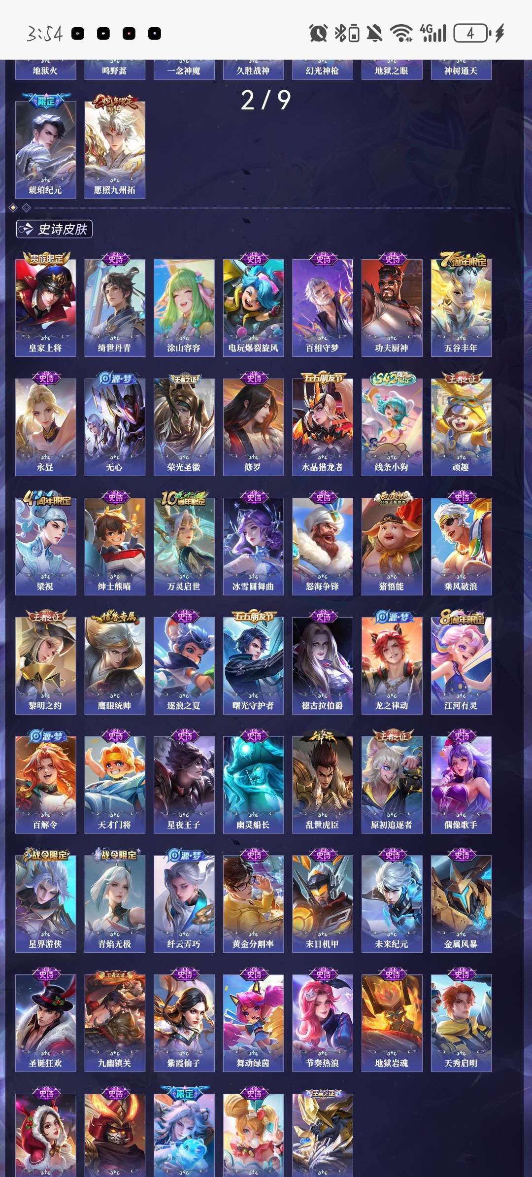 王者荣耀皮肤200多个,有荣耀典藏使命召唤有优质紫皮神话有热门传说也多。