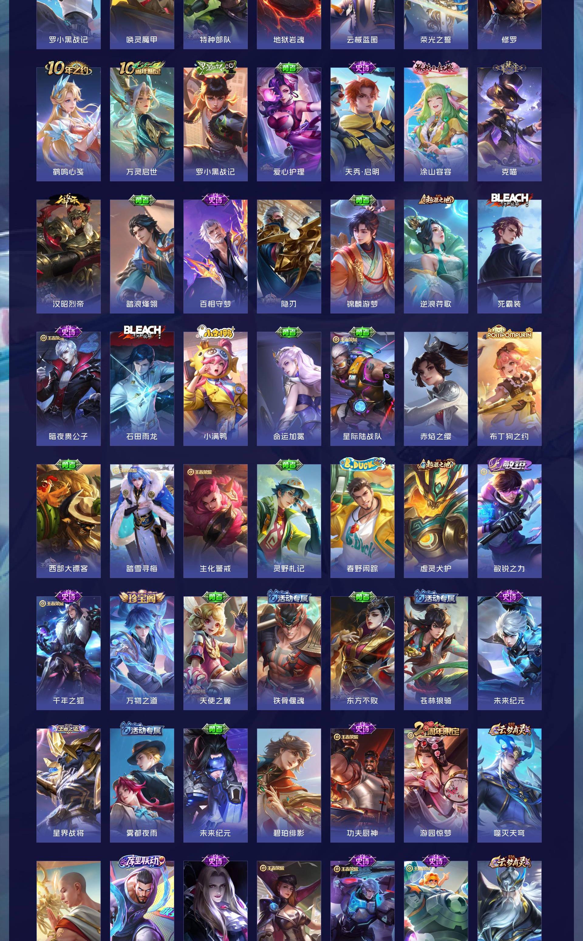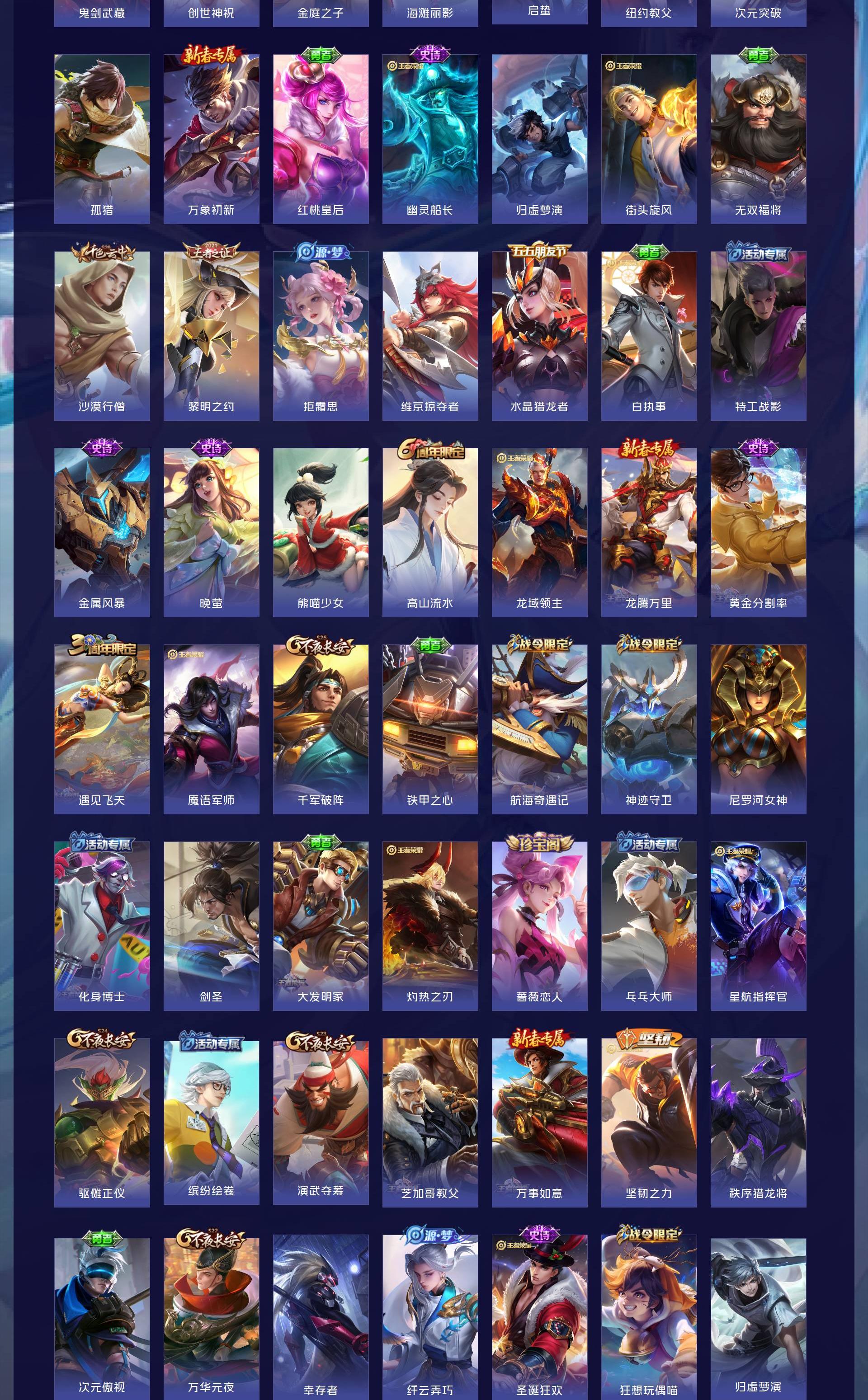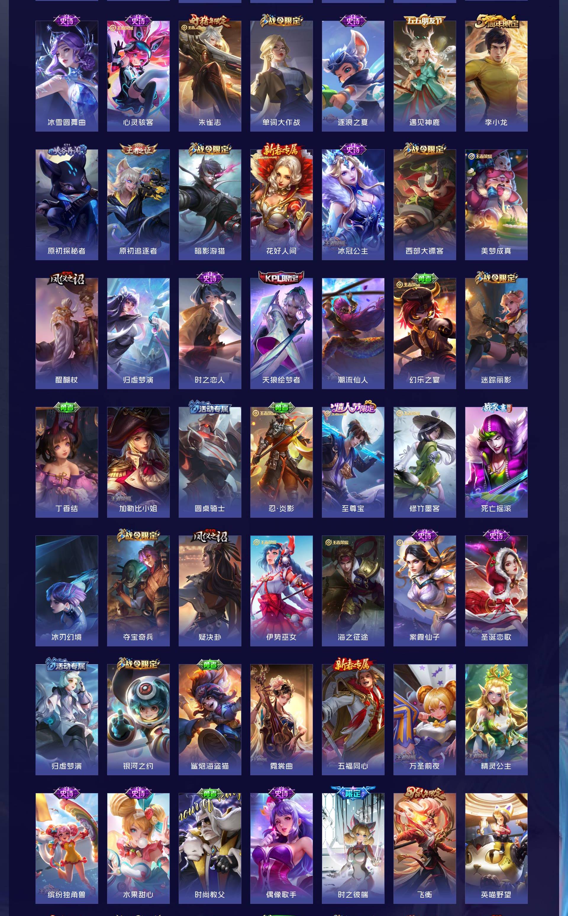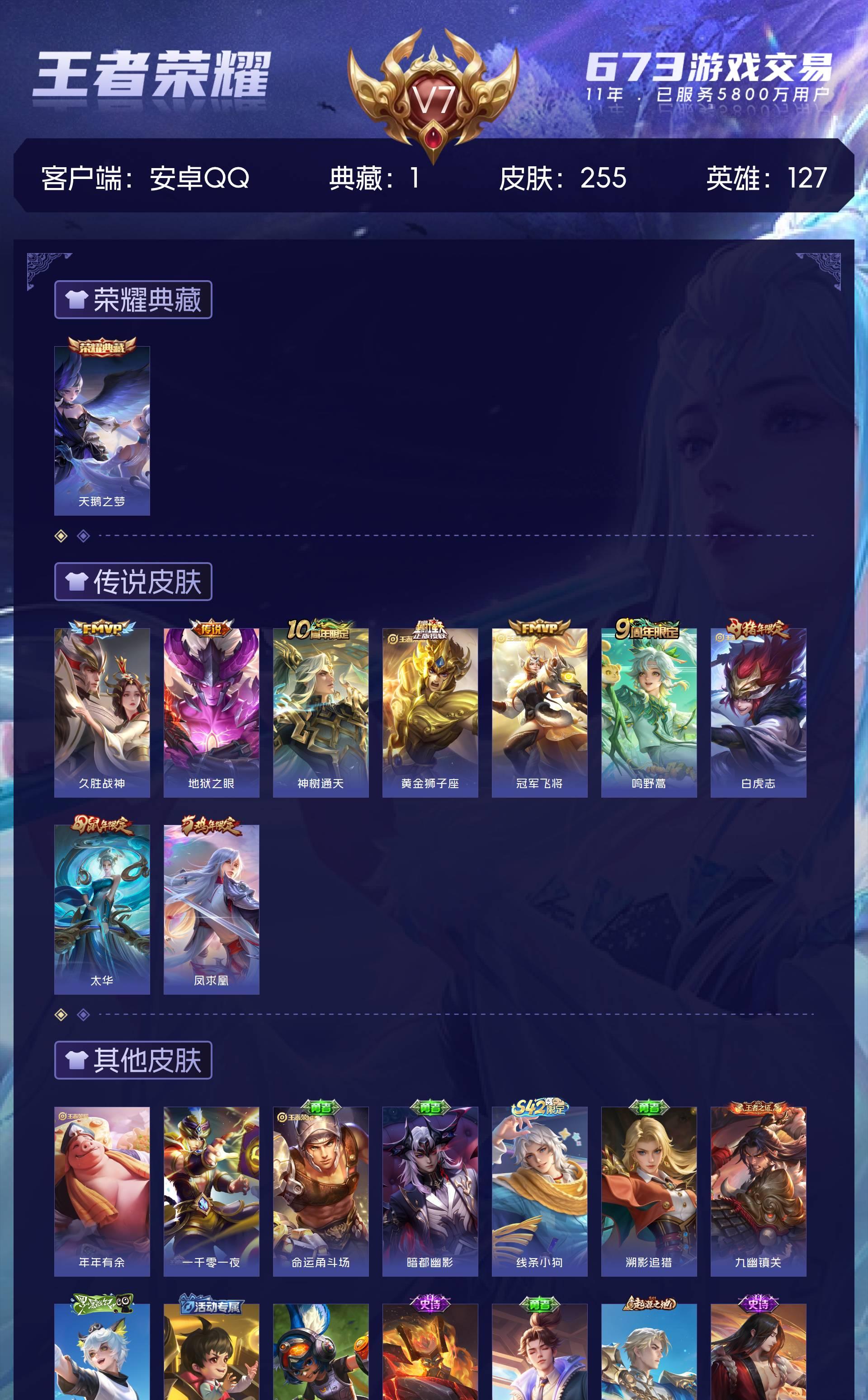 V7 皮肤255 英雄127 非凡王者 荣耀典藏1 星传说1 传说9 其他皮肤251
