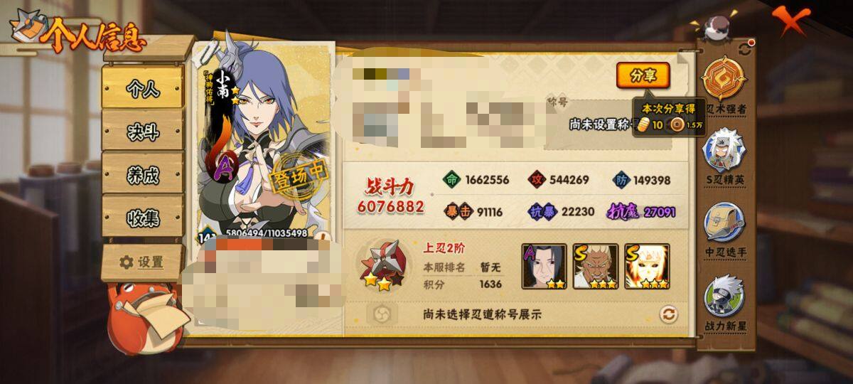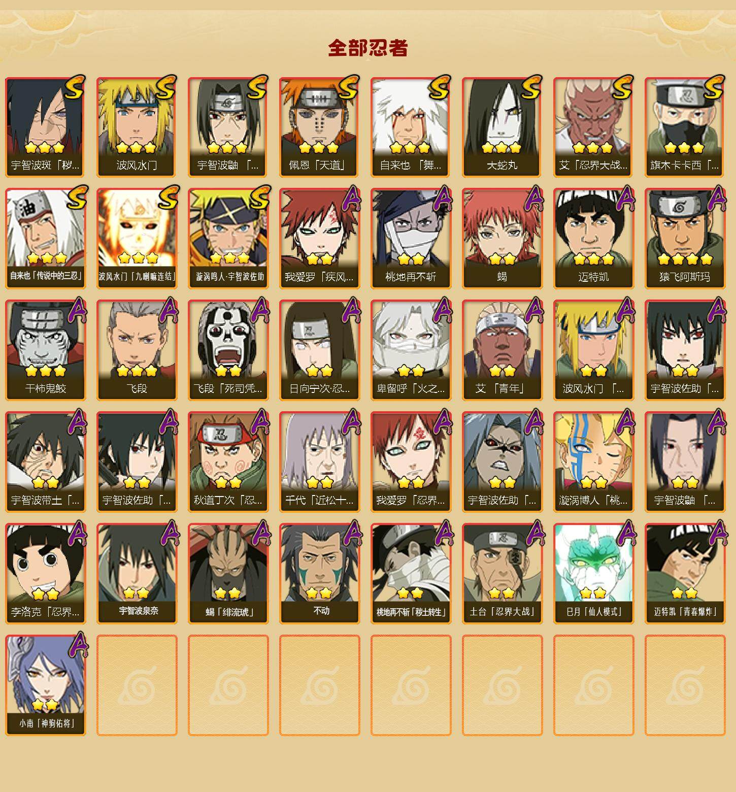 【HYN5246】V10/战力607W/S忍11/A忍30/忍界大战-日向宁次/疾风传-我爱罗/3星波风水门「九喇嘛连结」/死司凭血-飞段/须佐能乎-旗木卡卡西/桃地再不斩/疾风传咒印-宇智波佐助/2星小南「神驹佑将」/3星飞段/蝎/天道-佩恩/3星漩涡鸣人·宇智波佐助/波风水门/忍界大战-秋道丁次/桃式显现-漩涡博人/3星干柿鬼鲛/忍界大战-李洛克/2星土台「忍界大战」/火之意志继承者-卑留呼/青年-波风水门/2星蝎「绯流琥」/4星猿飞阿斯玛/舞之豪杰-自来也/2星桃地再不斩「秽土转生」/3星