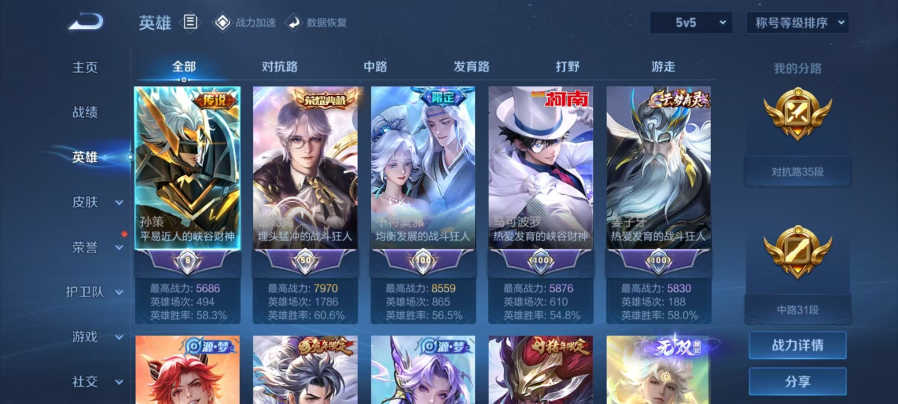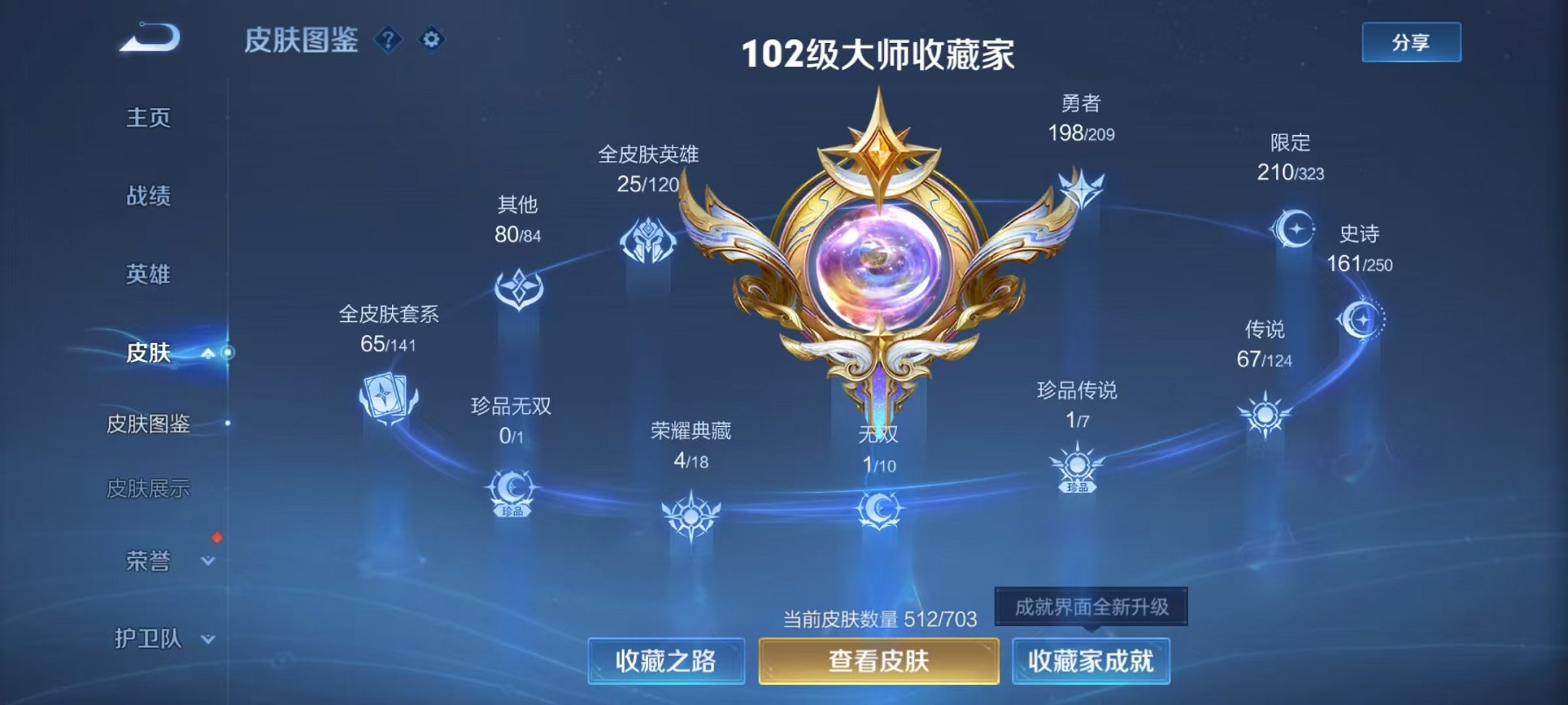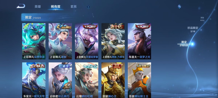 可二次【V10 512皮肤5水晶1无双1珍品6星元68传说