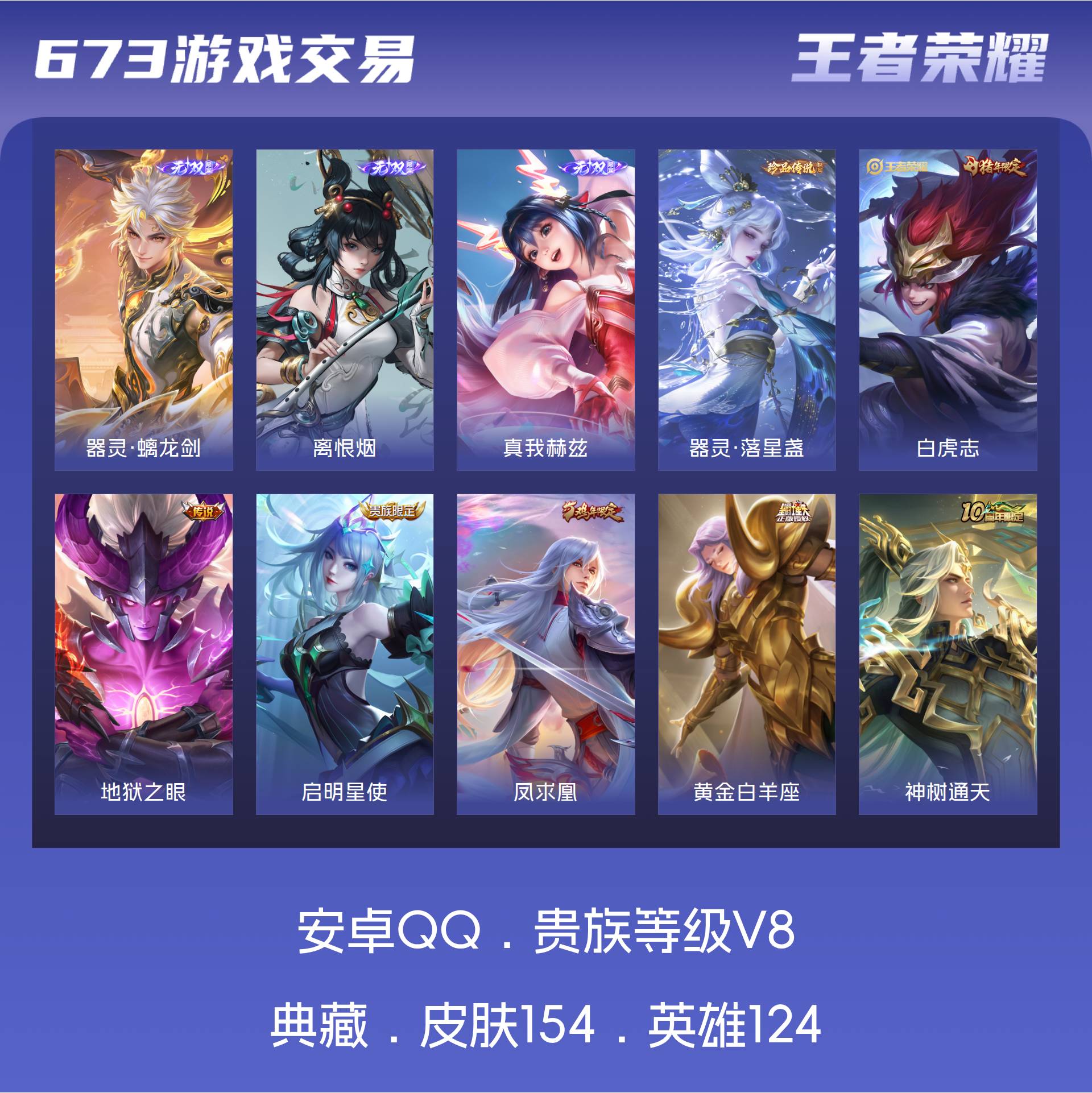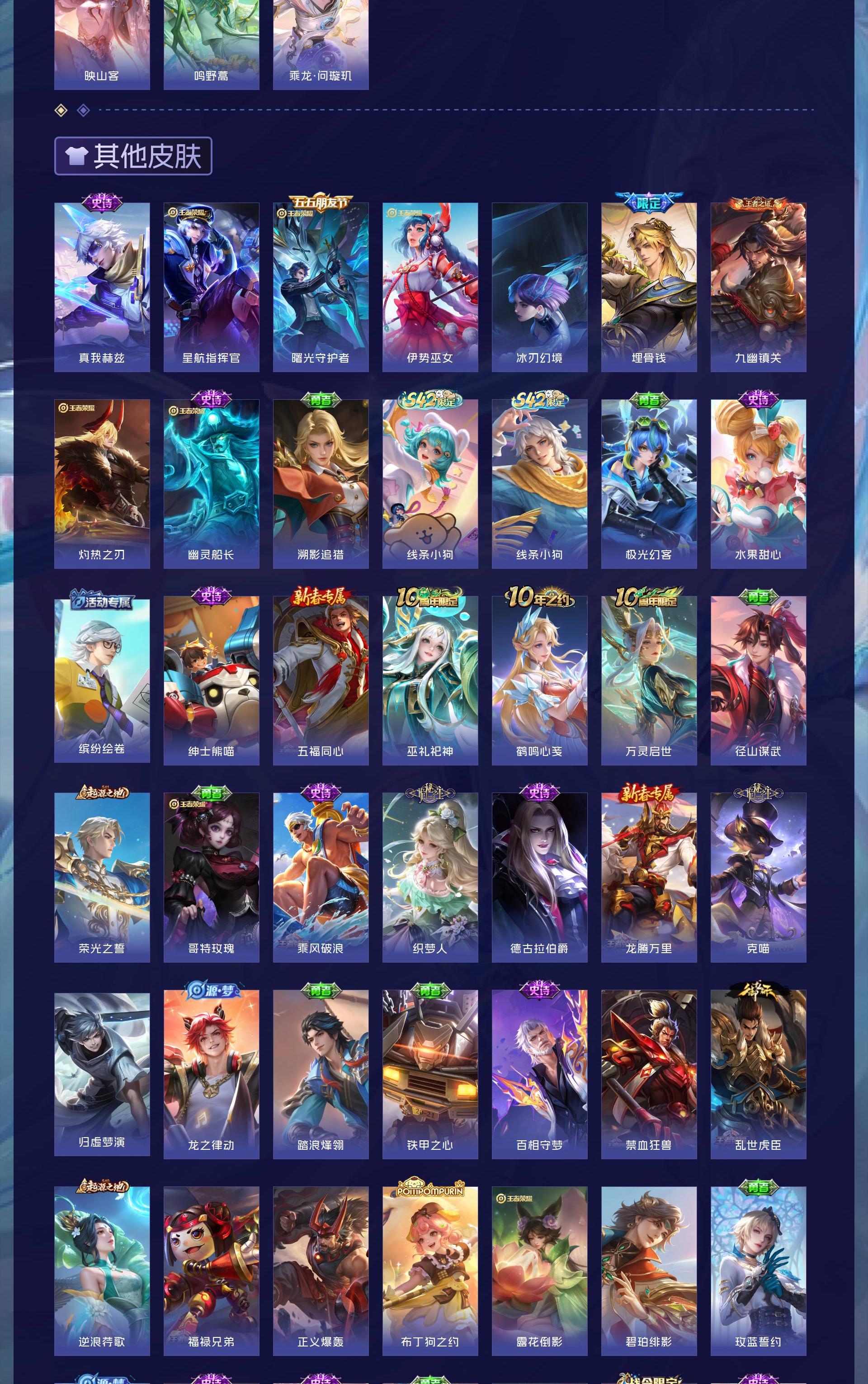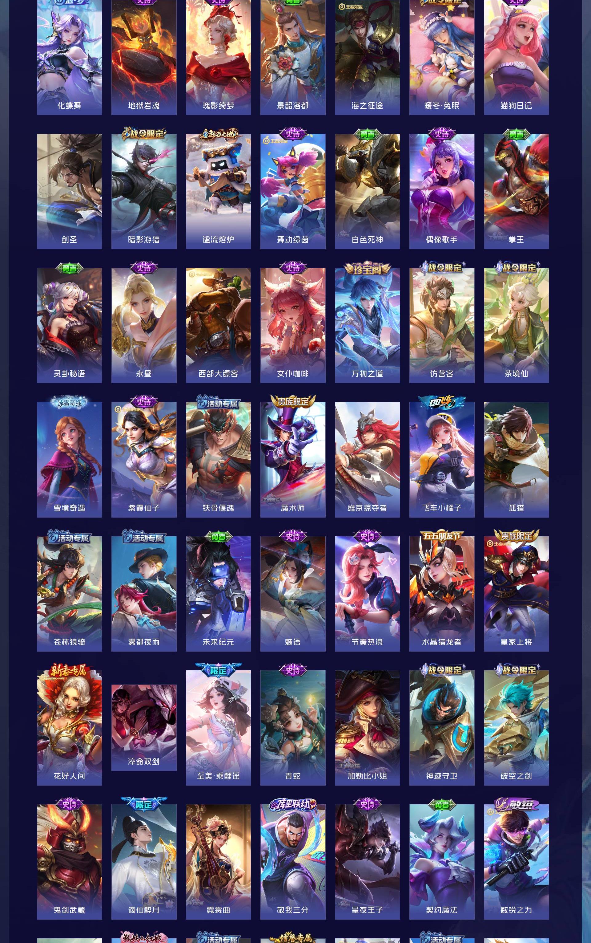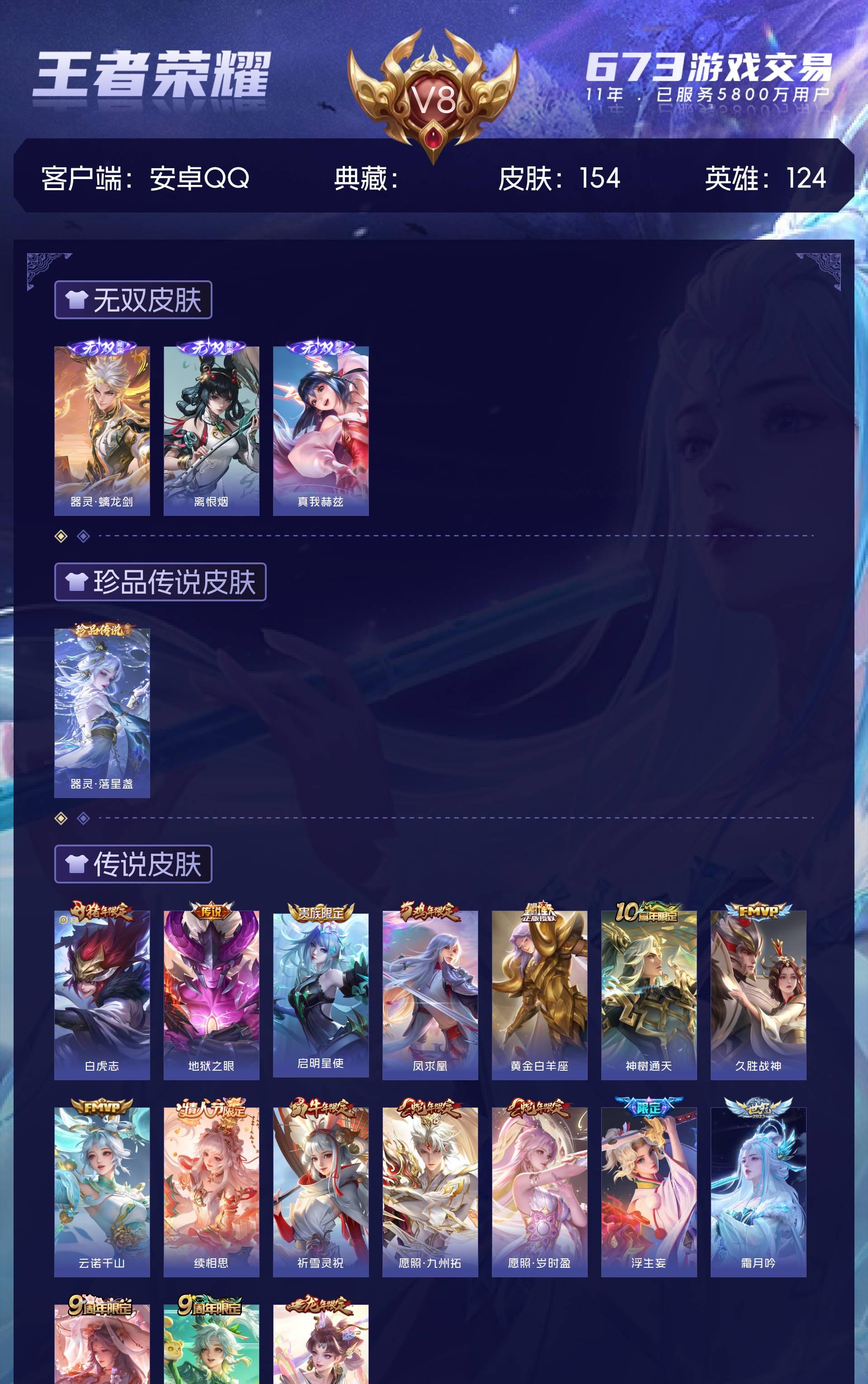 V8 皮肤154 英雄124 无双王者 无双皮肤3 珍品传说1 传说17 其他皮肤132