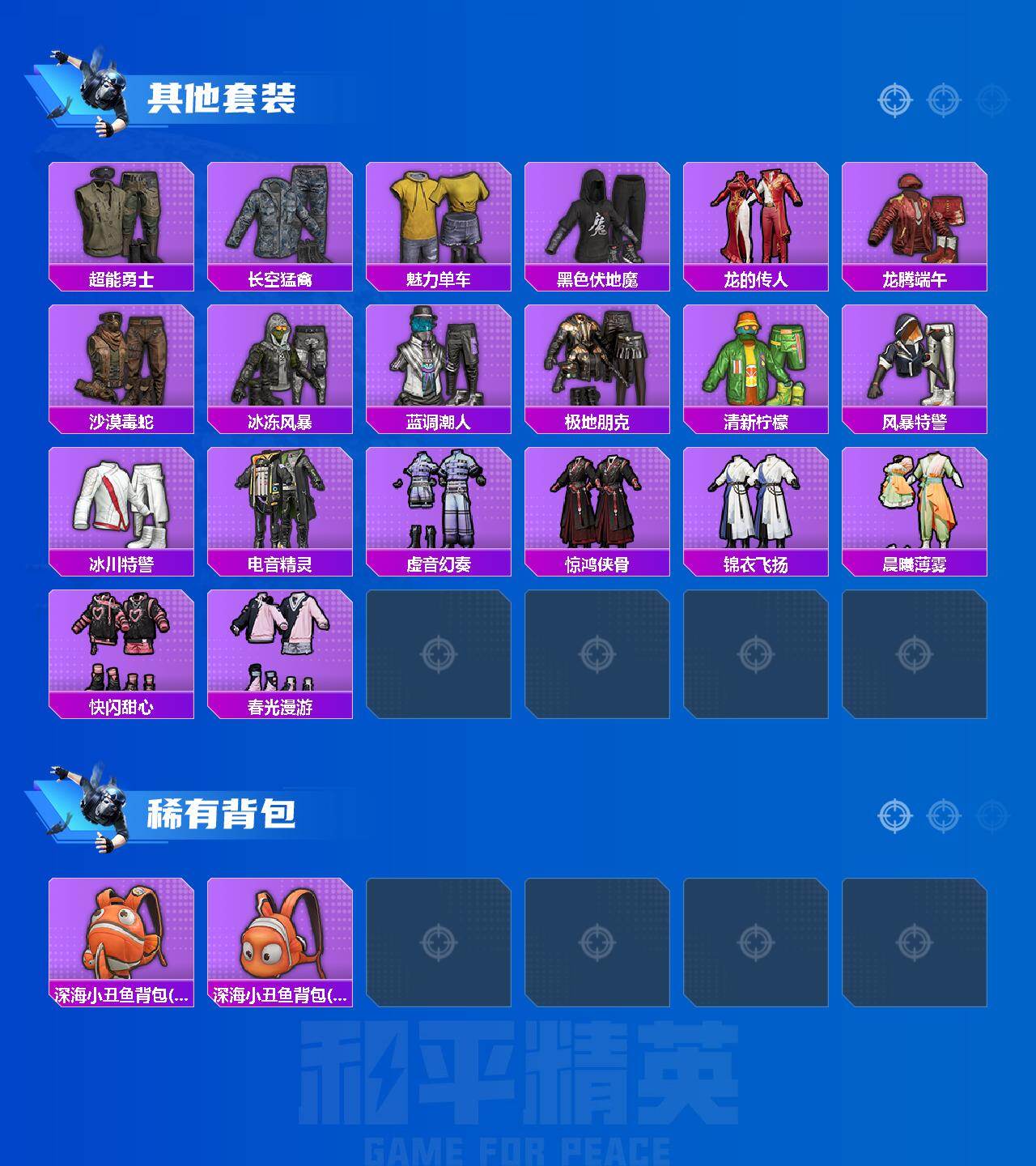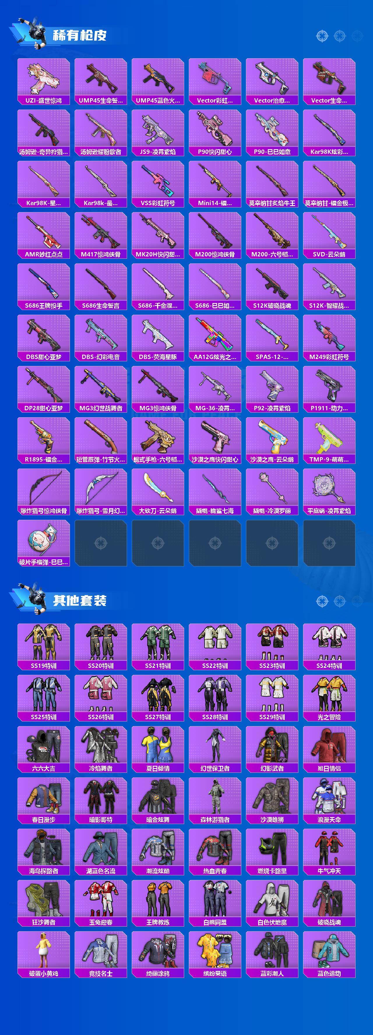 【热门品类】:套装-浪漫天命,套装-AG战队服,套装-暗影哥特,角色-六号稻草人