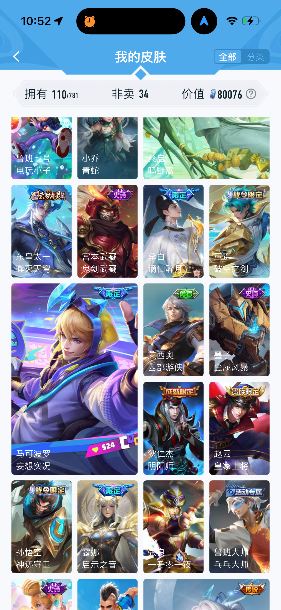 V7 皮肤110 英雄85 无双王者 无双皮肤1 珍品传说1 星传说1 传说11 其他皮肤100