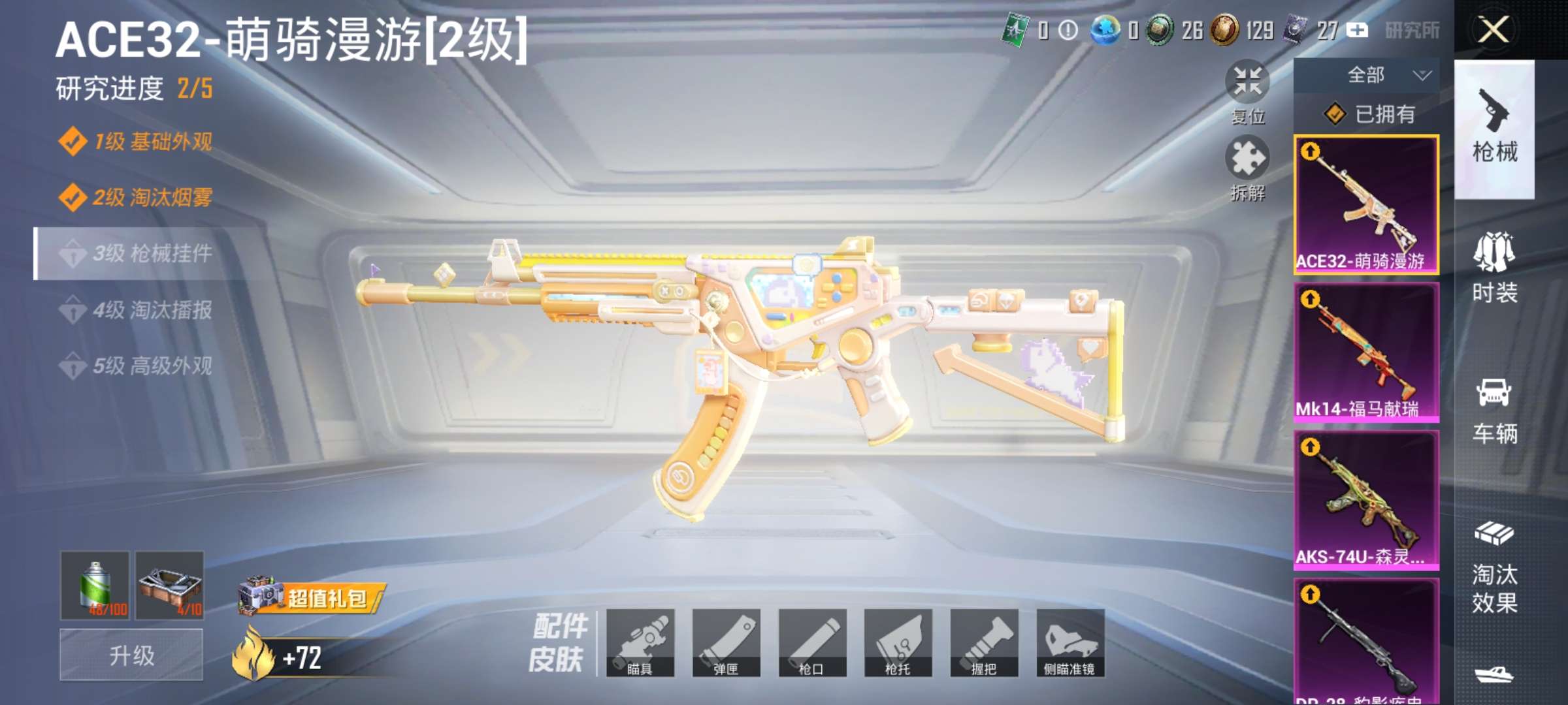 枪皮都升级了,地铁公墓都有装备,段位也挺高的,粉装就一个洛天依