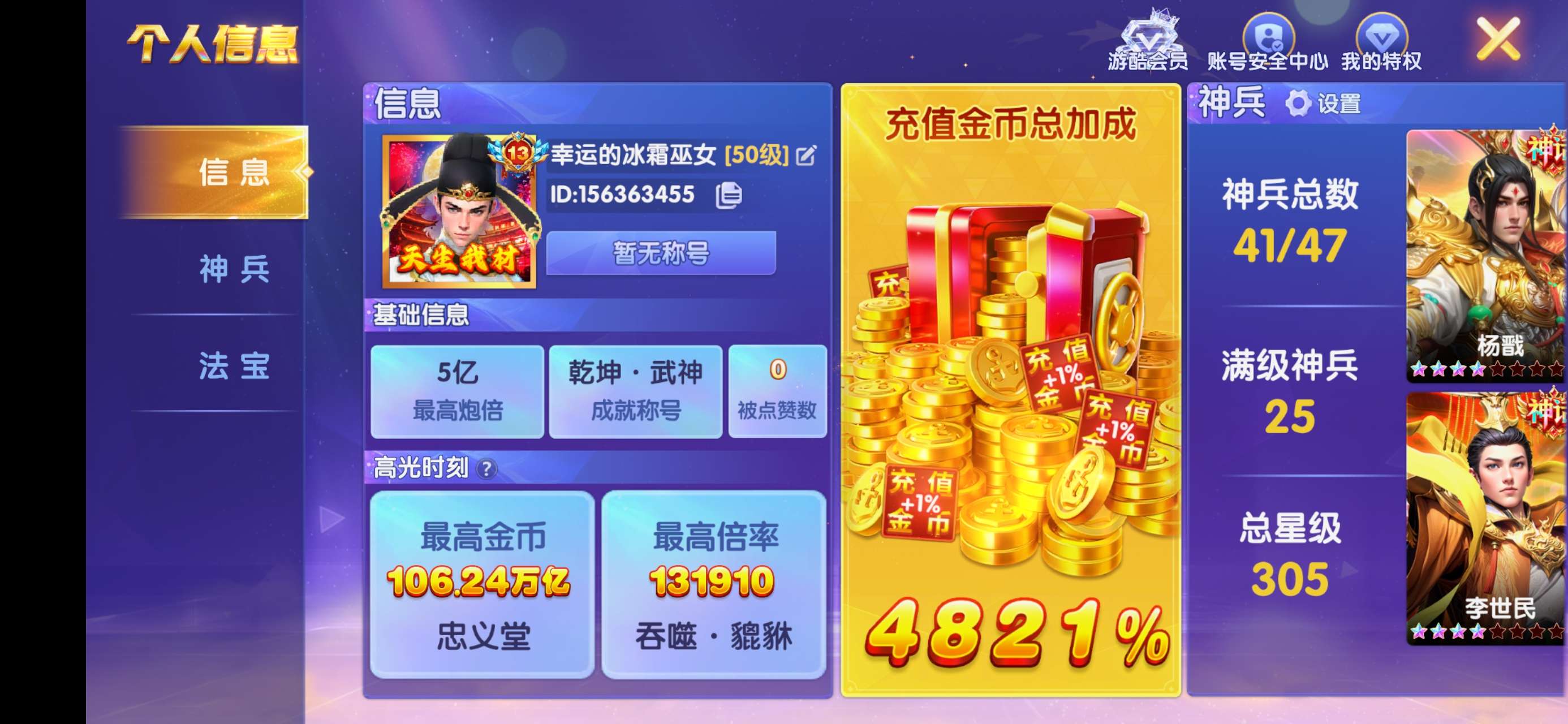 微信登录 v13 110万亿 满炮倍,满万象,十万星币,高羁绊,细节看图