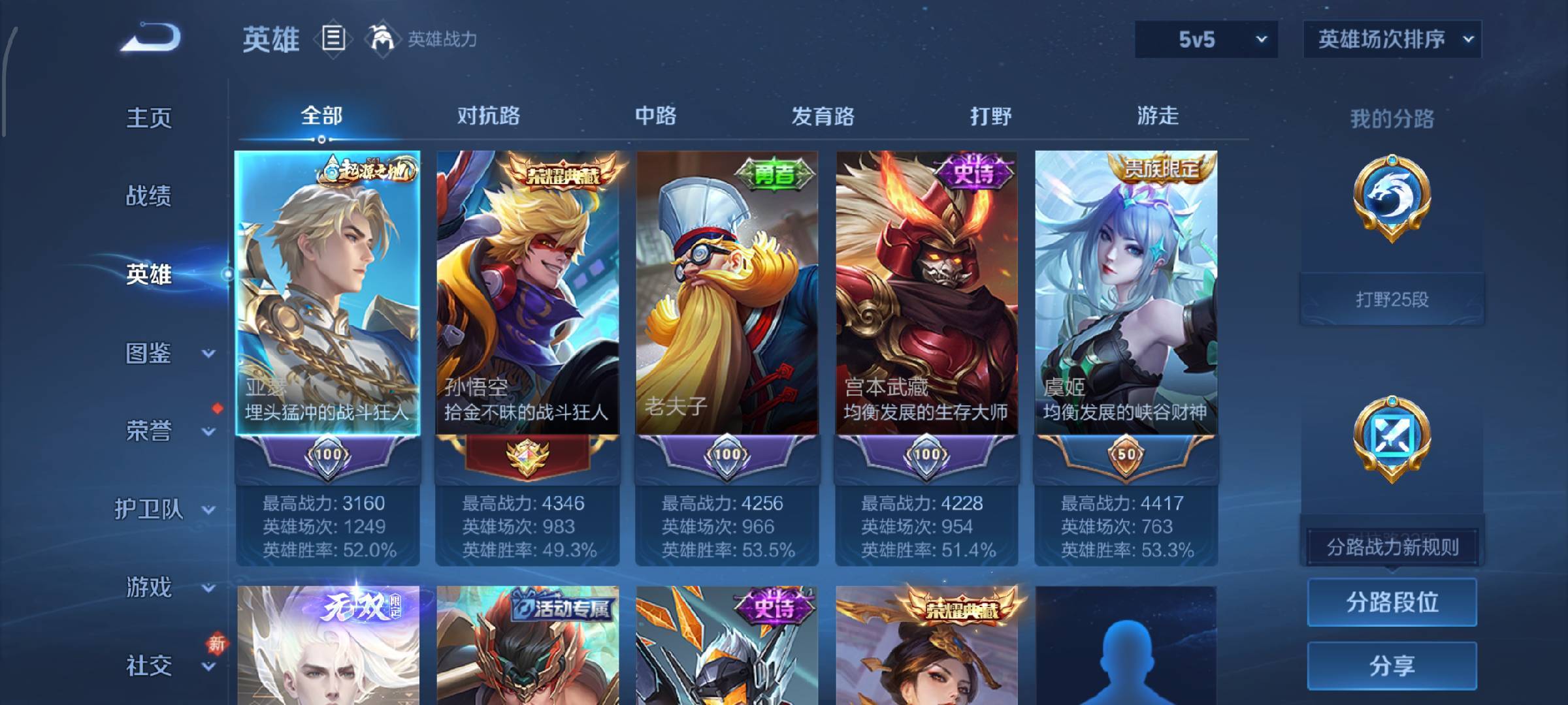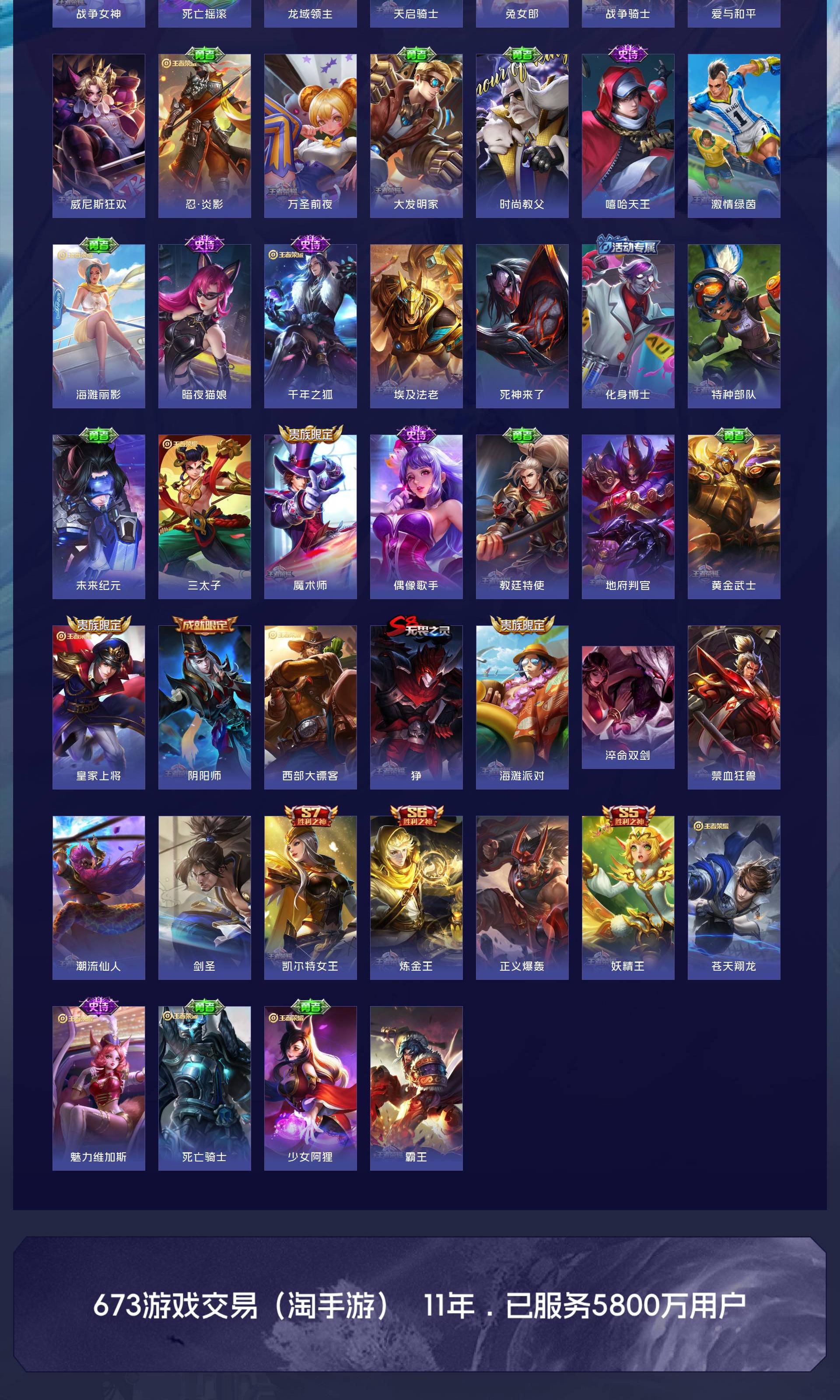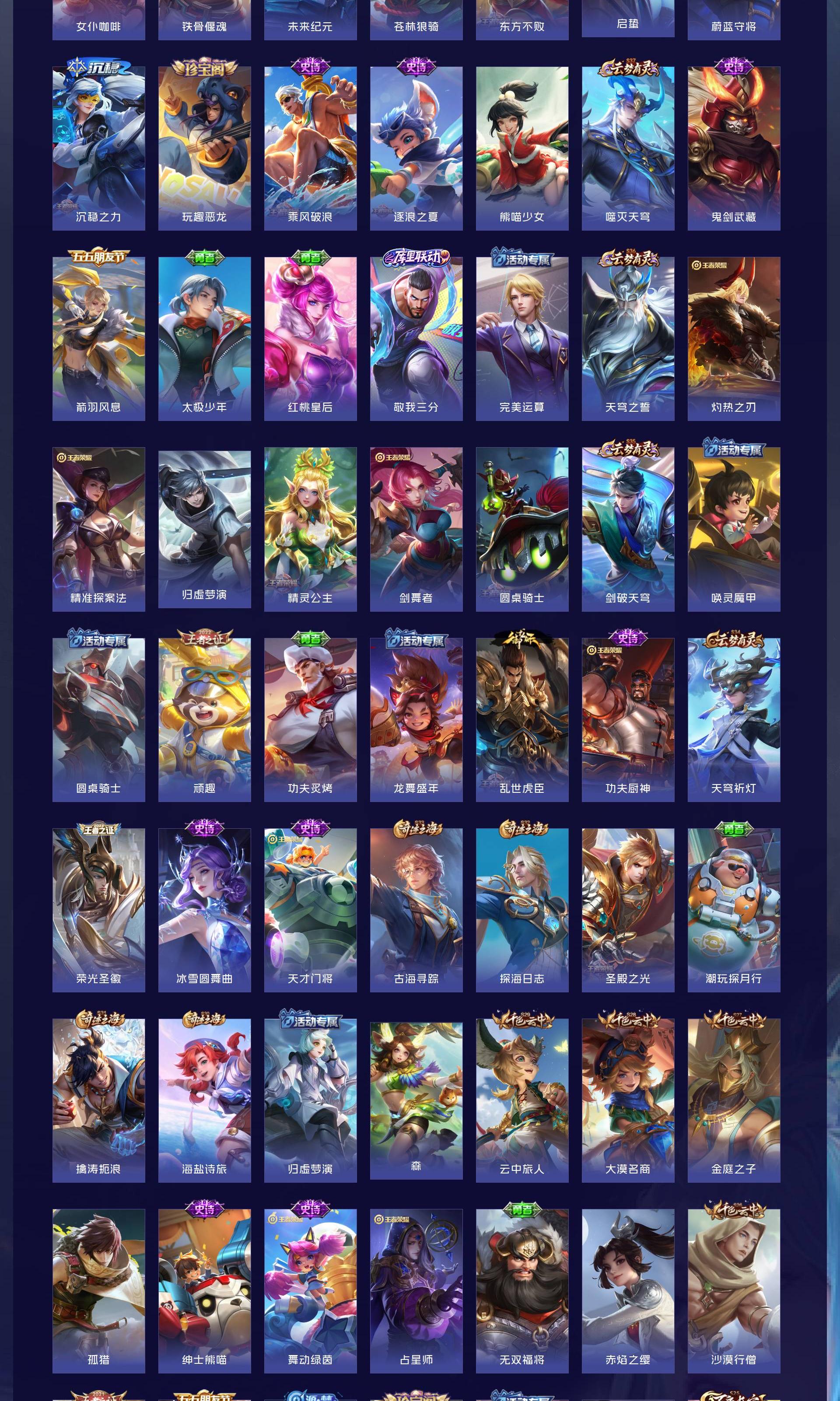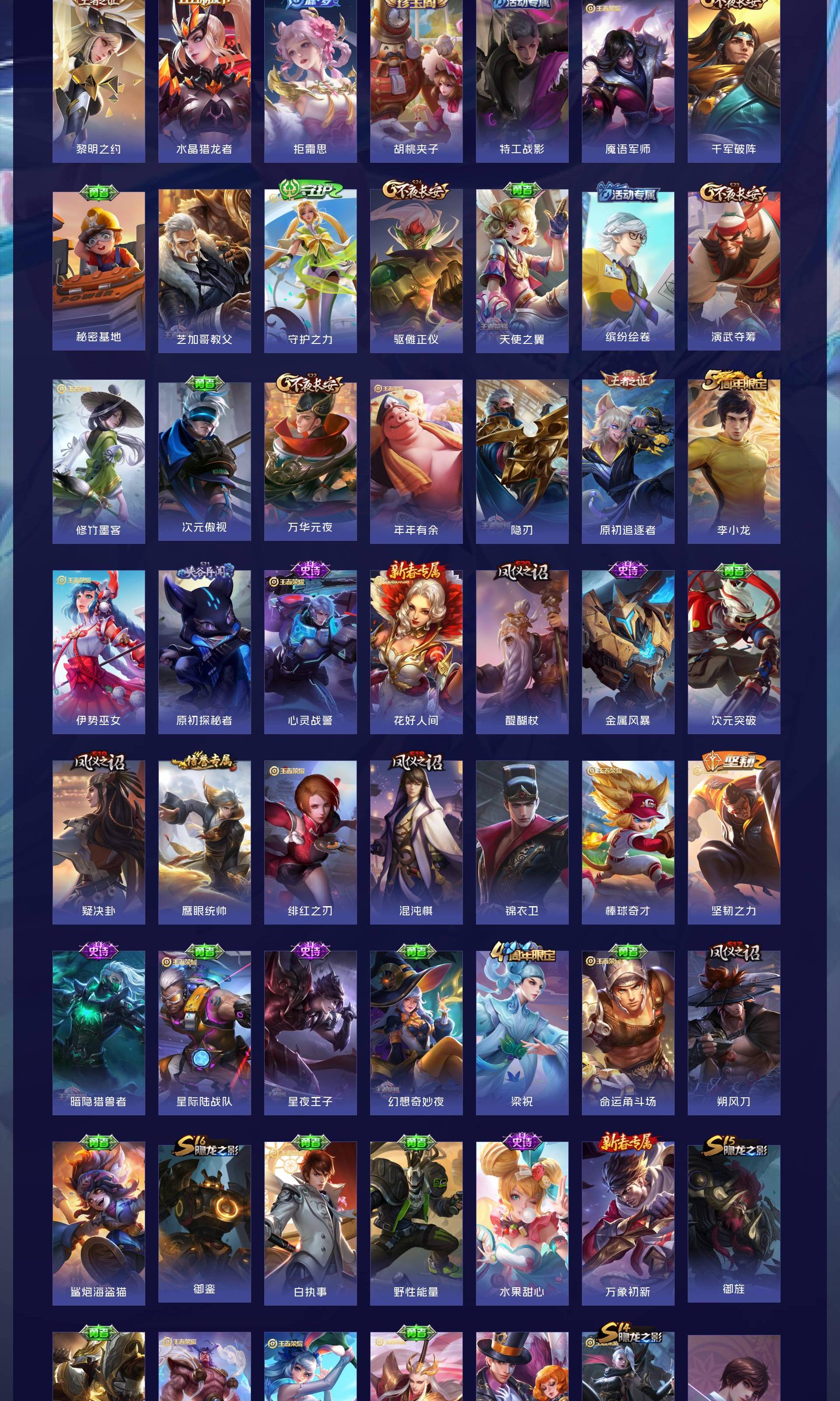 V9 皮肤260 英雄129 至尊星耀 荣耀典藏6 无双皮肤2 传说9 其他皮肤249
