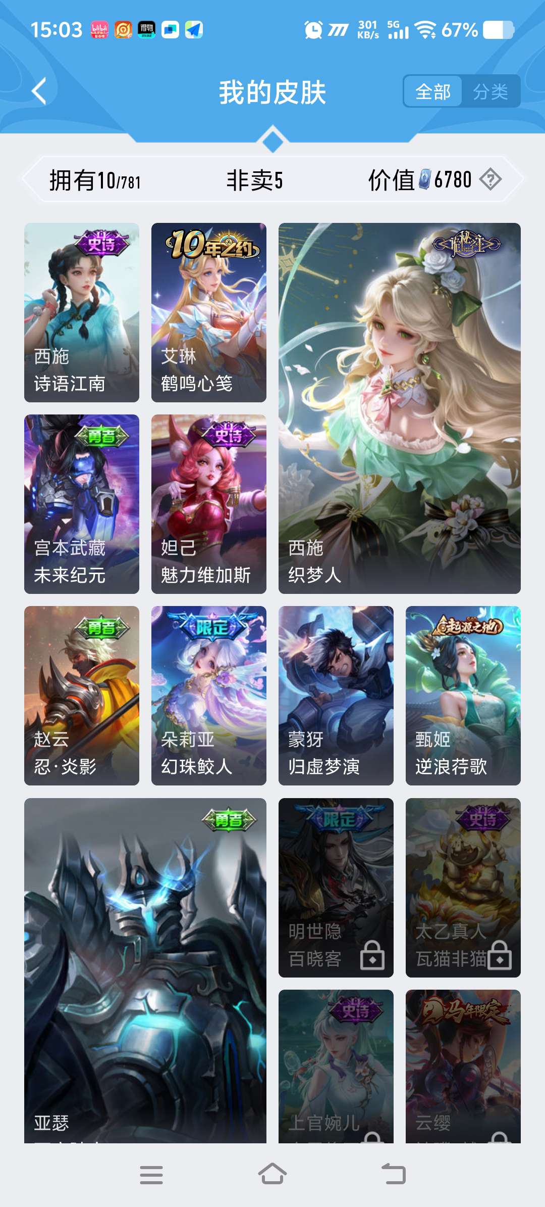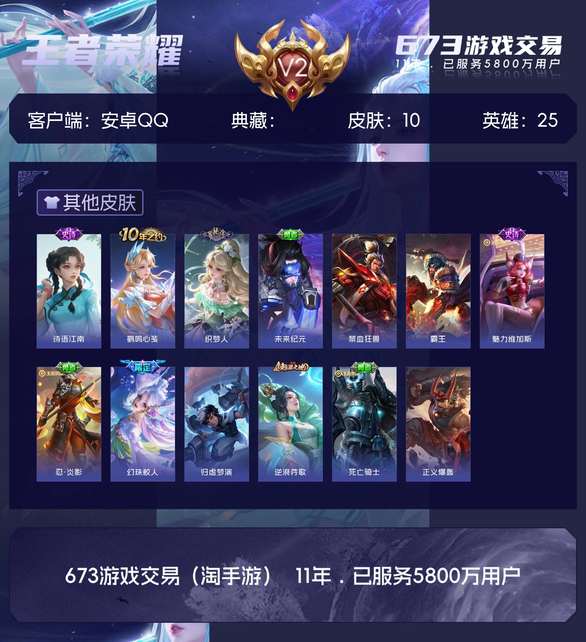 V2 皮肤10 英雄25 荣耀黄金 其他皮肤13